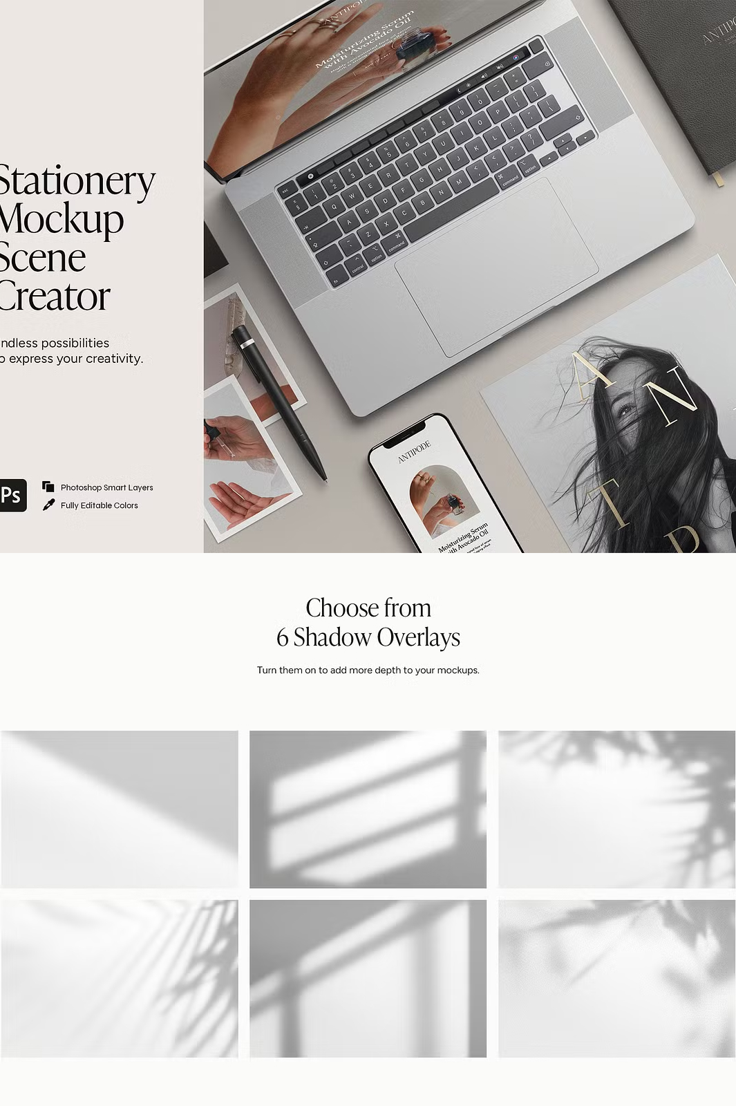 - β **6 Shadow Overlays** β Enhance your mockup with photo-based shadows.