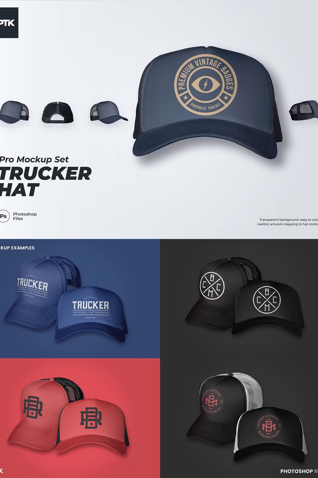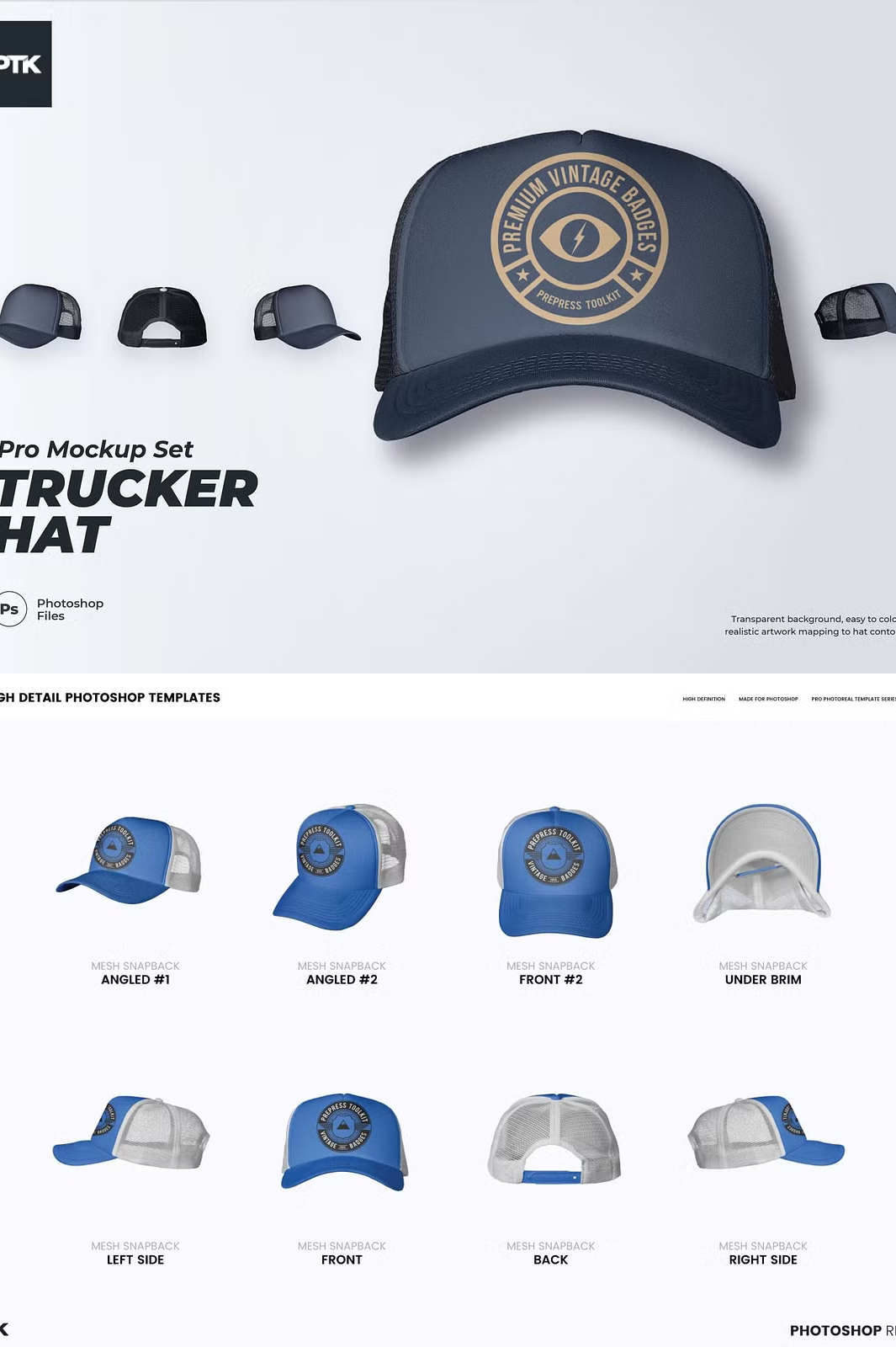 Take your eCommerce store, design prototypes, and print production projects to the next level with our Trucker Hat Mockup. Whether you’re designing your own hat, creating product previews, or showcasing branding concepts, this mockup offers a realistic and highly customizable presentation.