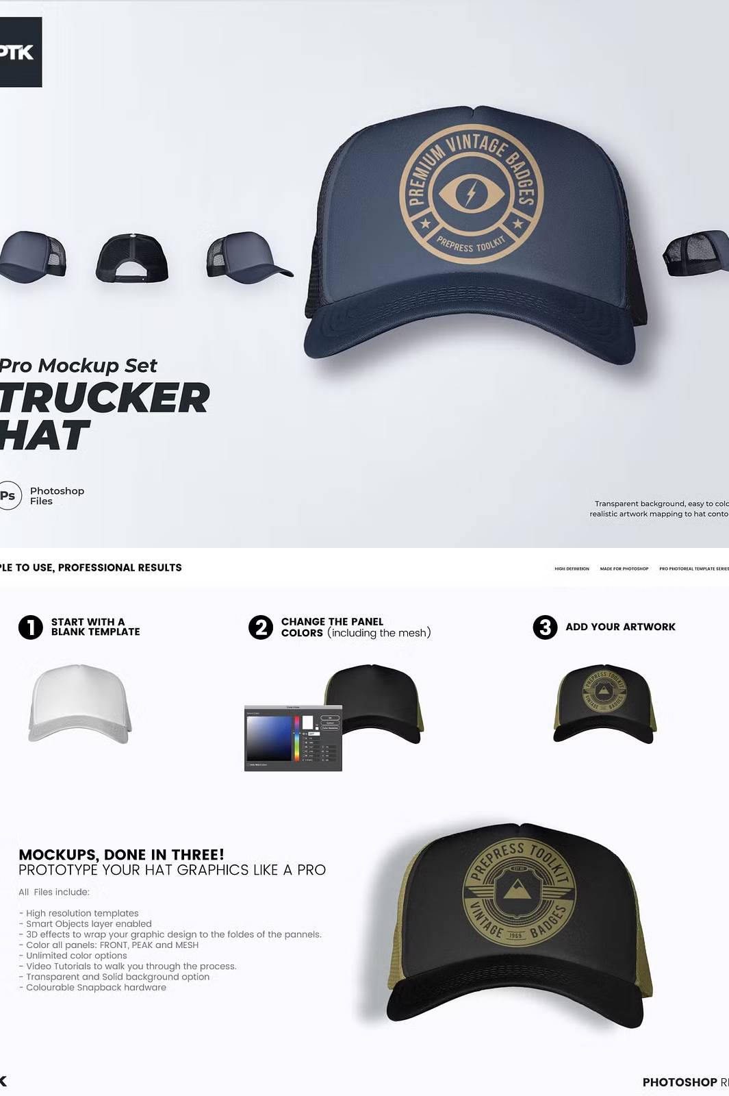 - Easy-to-Use Smart Object Layers: Just paste your artwork and instantly create a stunning hat design.