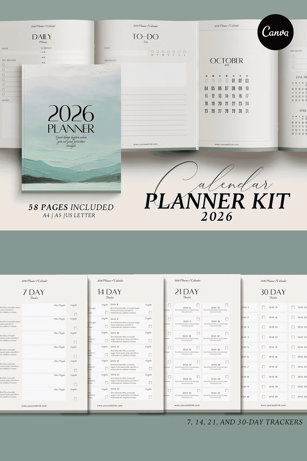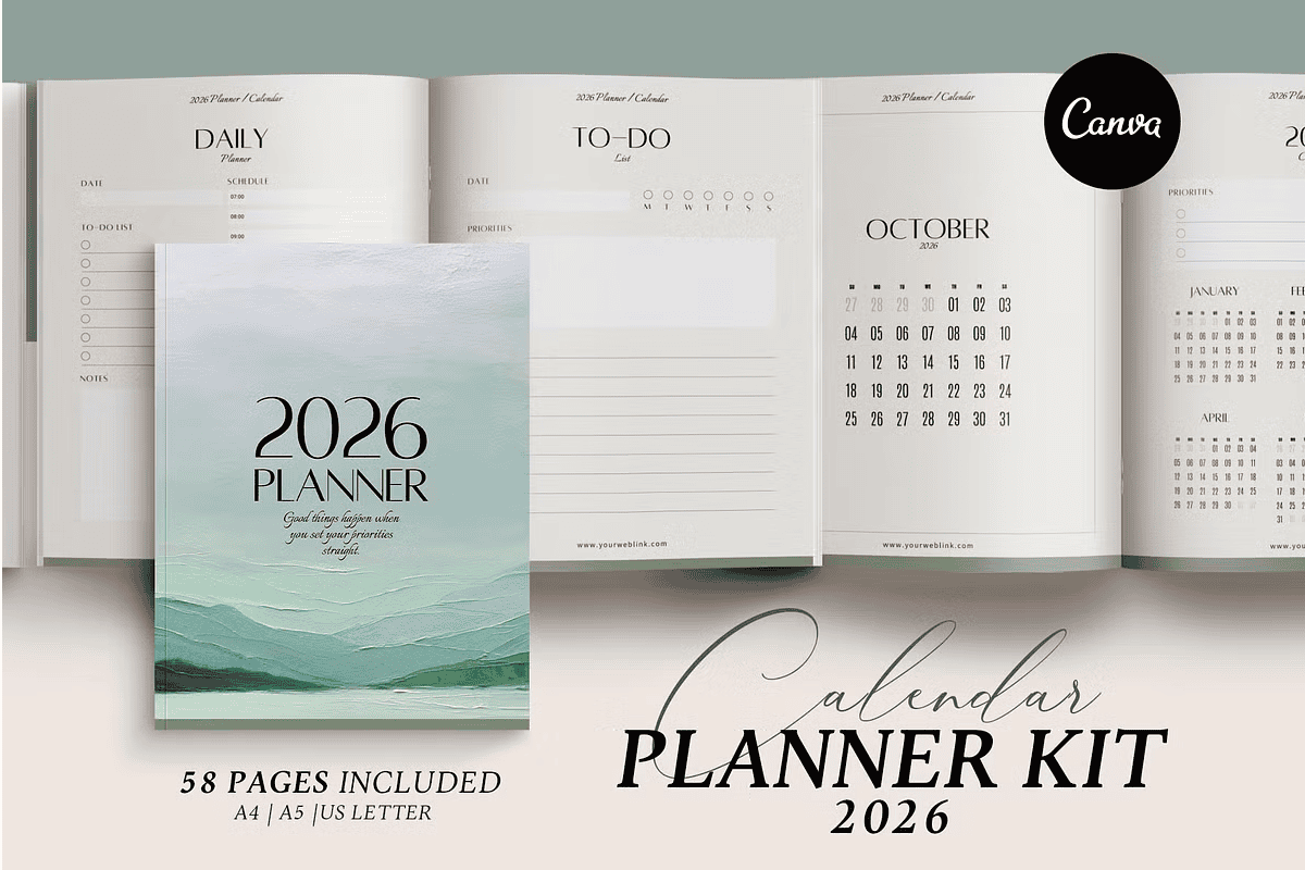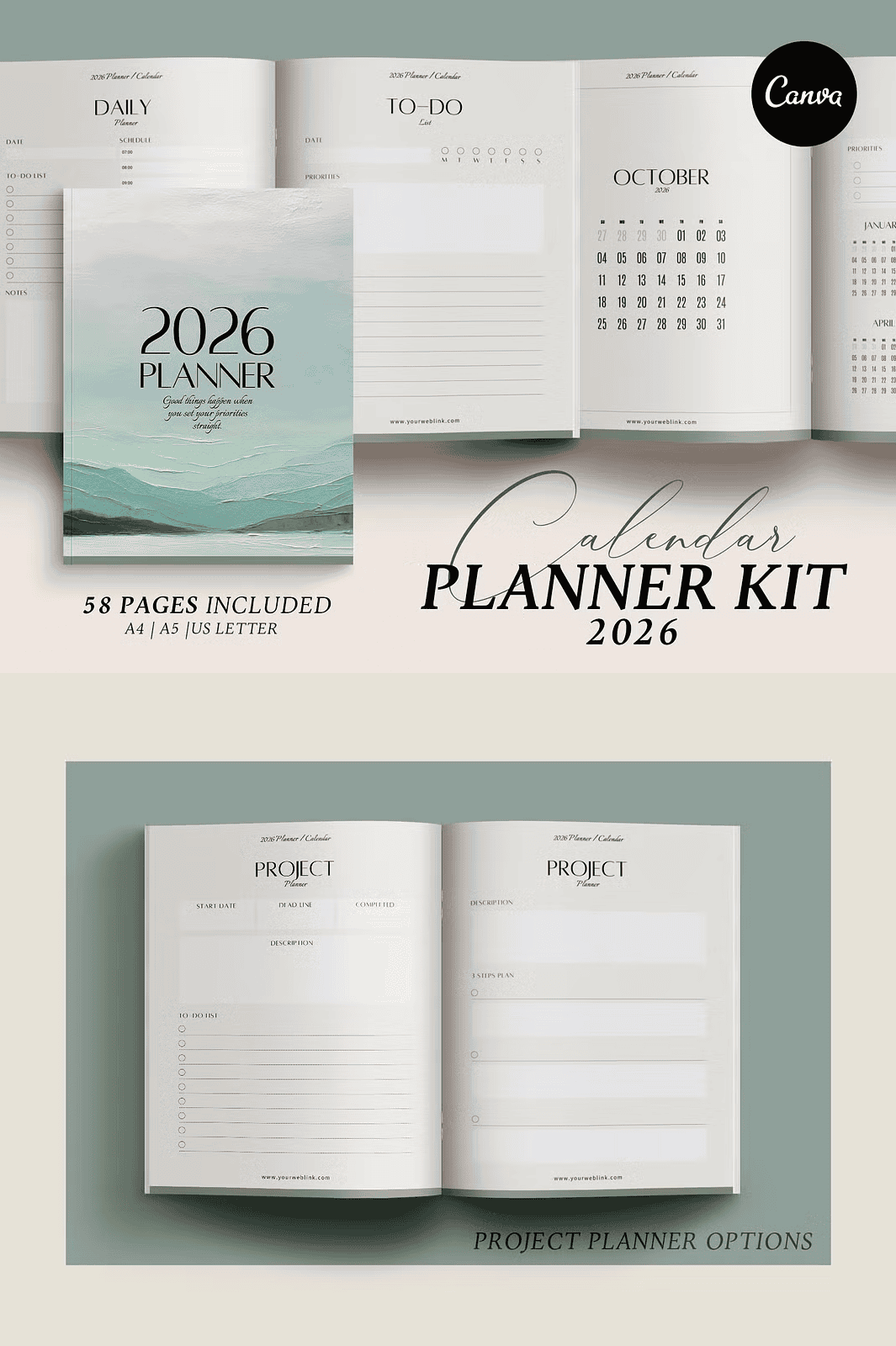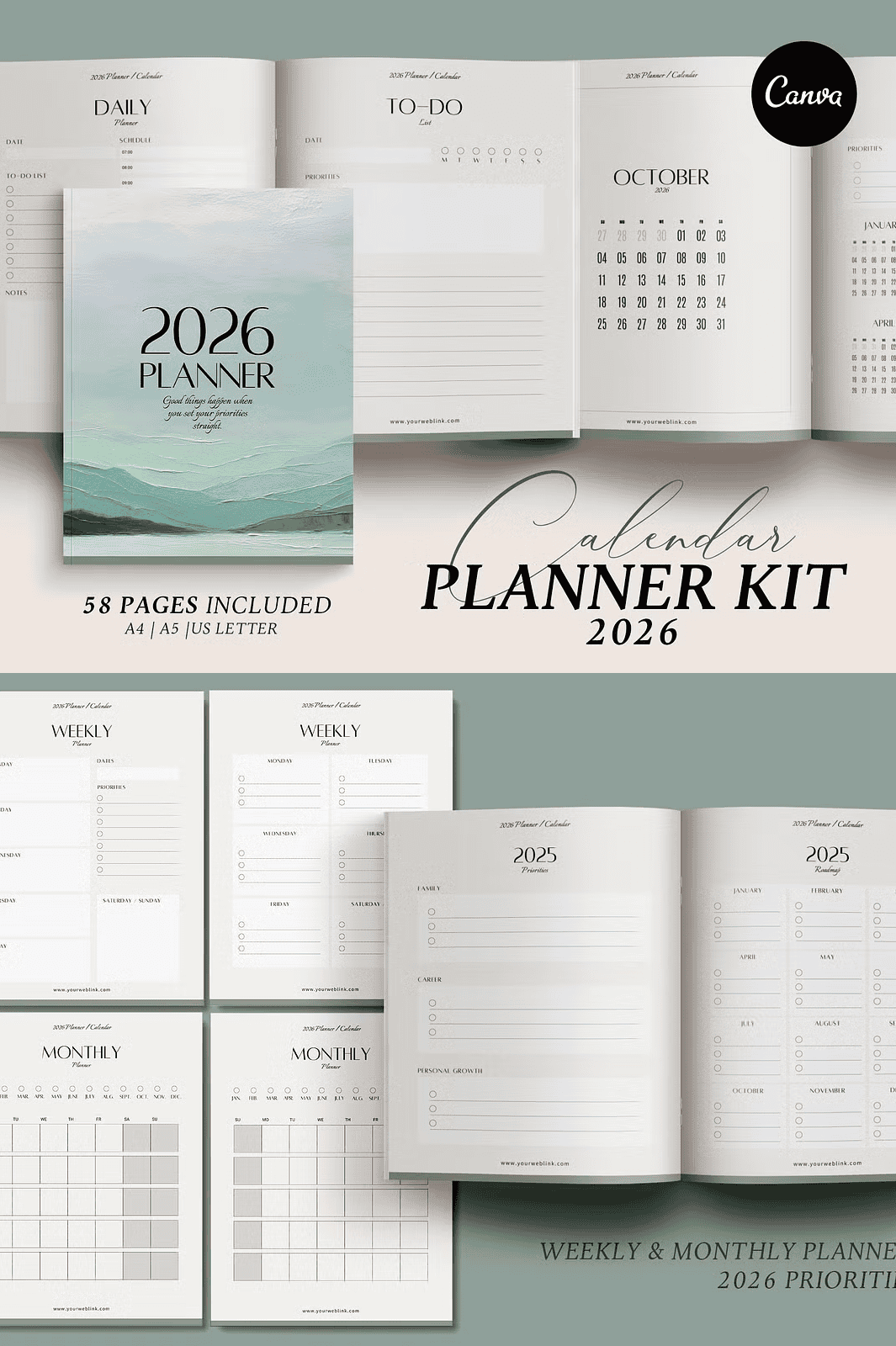 Elevate your organization and productivity with the **2026 Canva Planner & Calendar Kit**—a sleek, highly customizable solution built for both personal and professional use. Whether you’re a busy entrepreneur, a student, a coach, or someone who thrives on structure, this fully editable planner empowers you to design a schedule that reflects your unique lifestyle and goals.