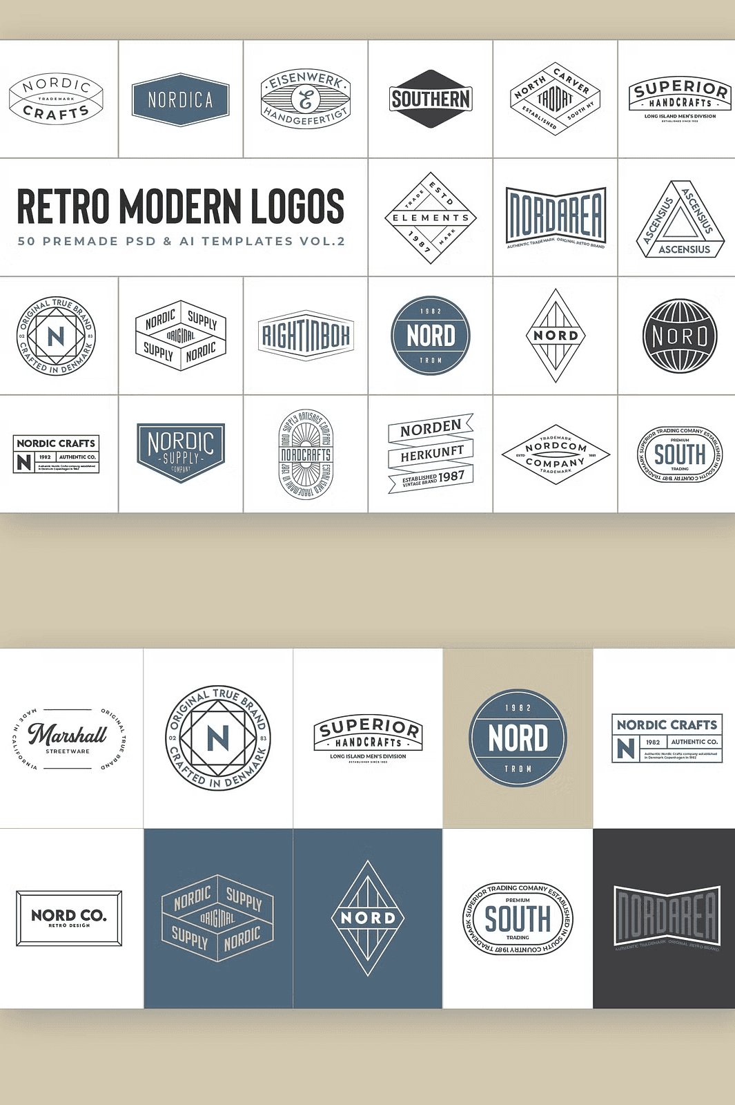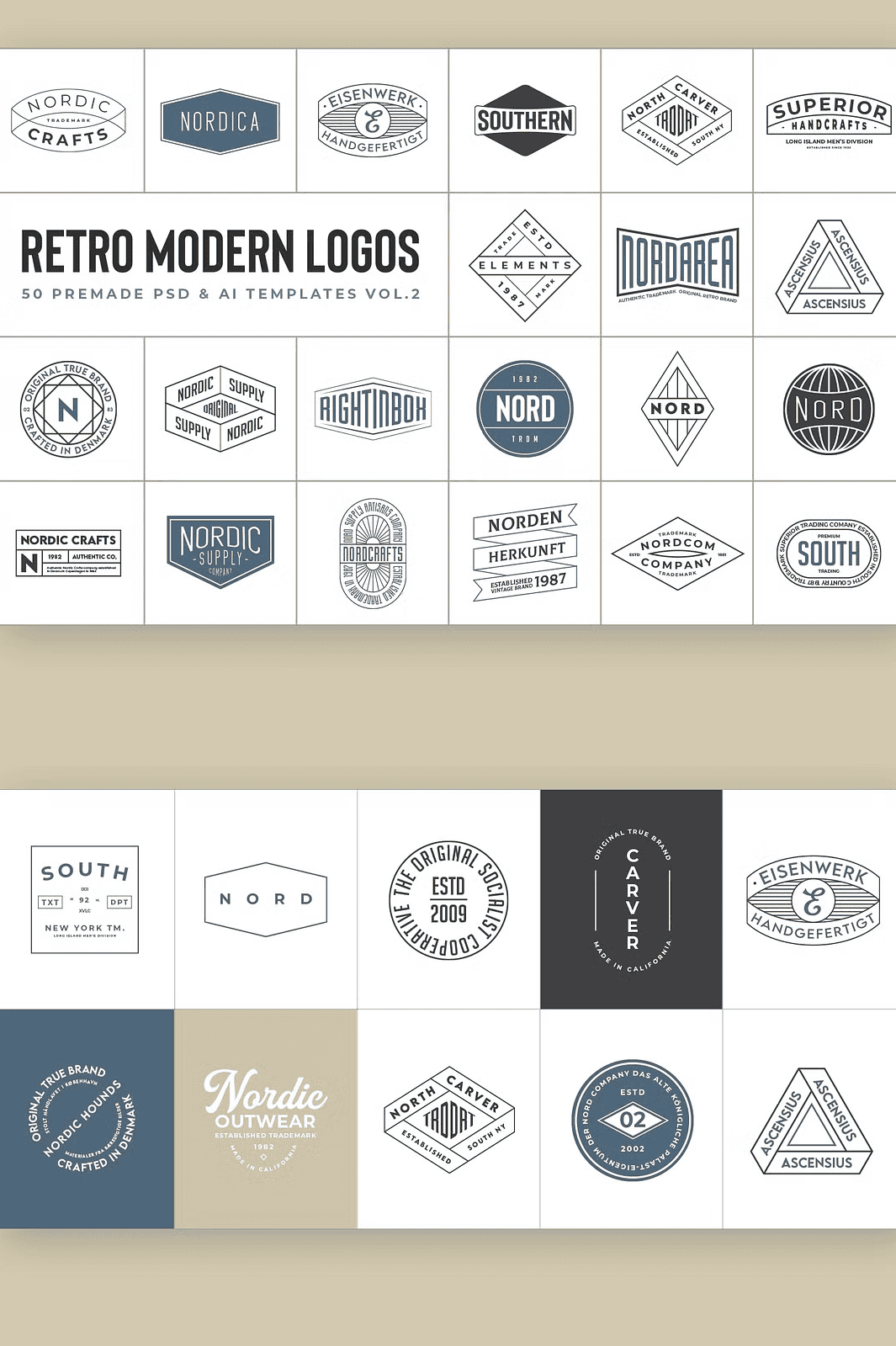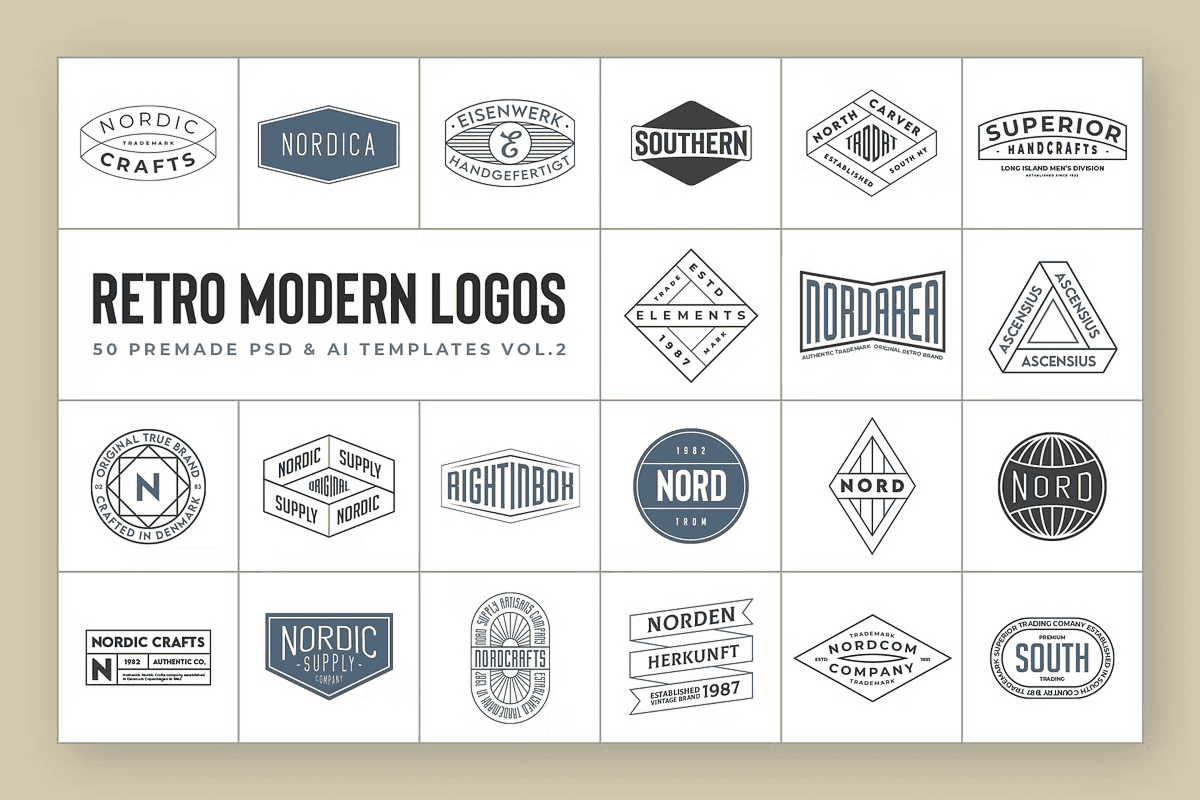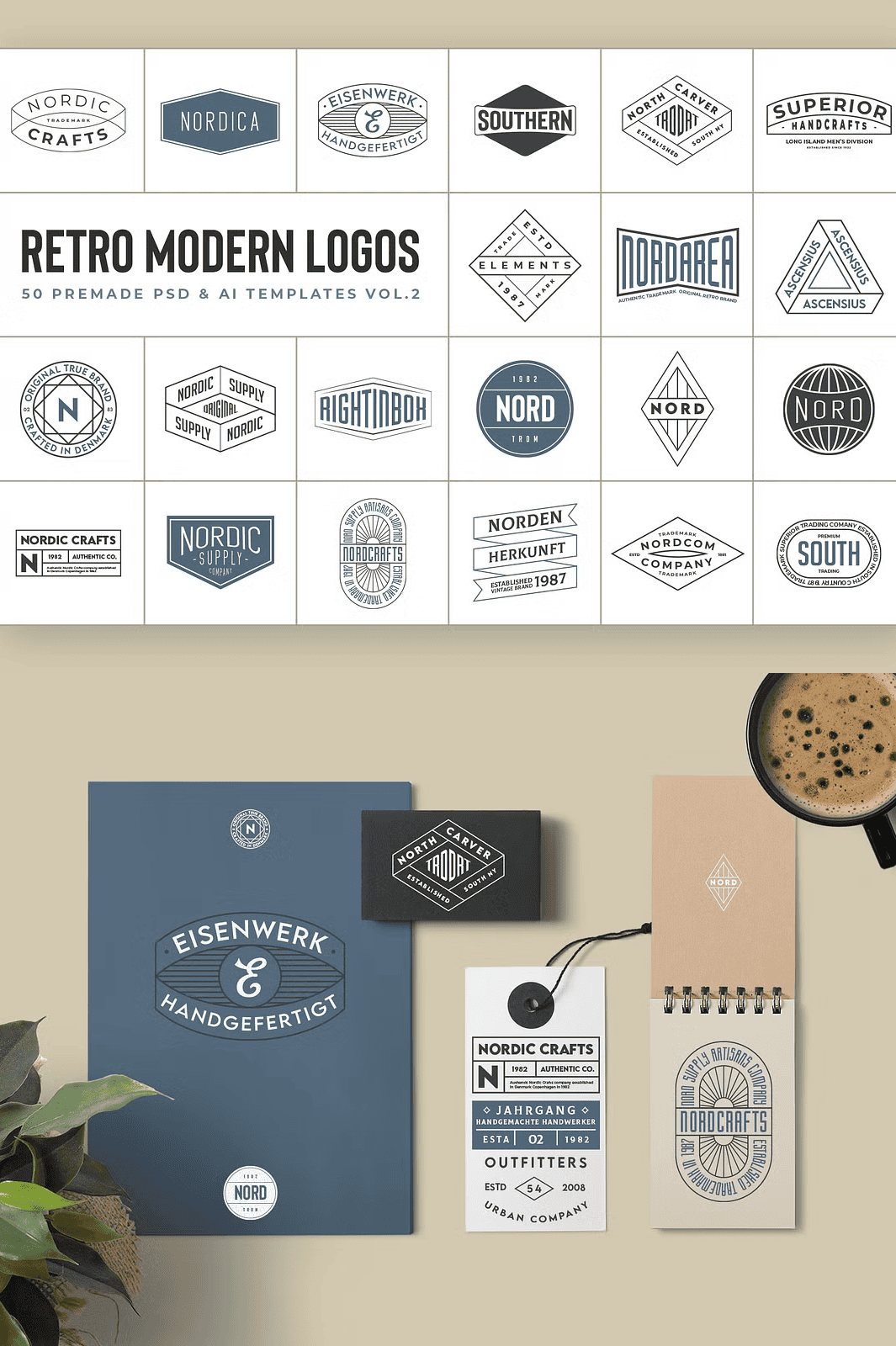 - 50 Unique, Pre-Designed Logos – Choose from a range of stylized layouts featuring geometric precision, bold outlines, and nostalgic color palettes with a fresh twist.