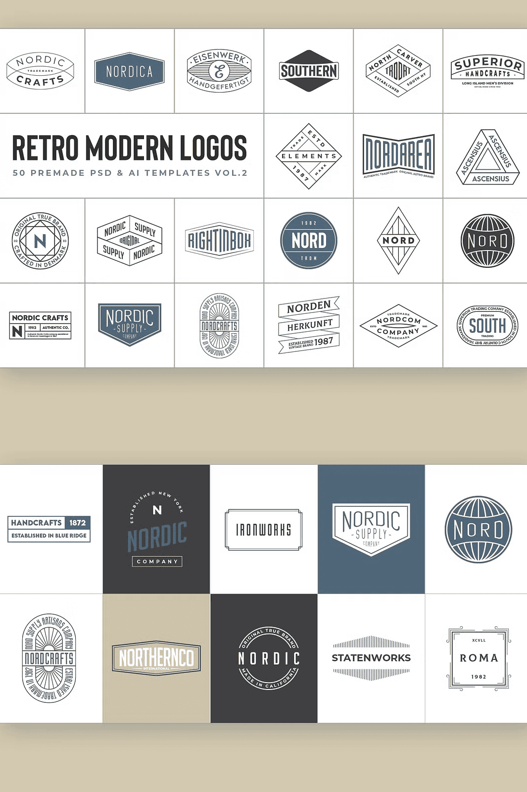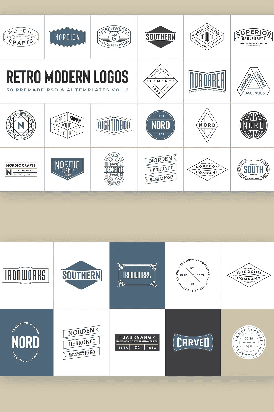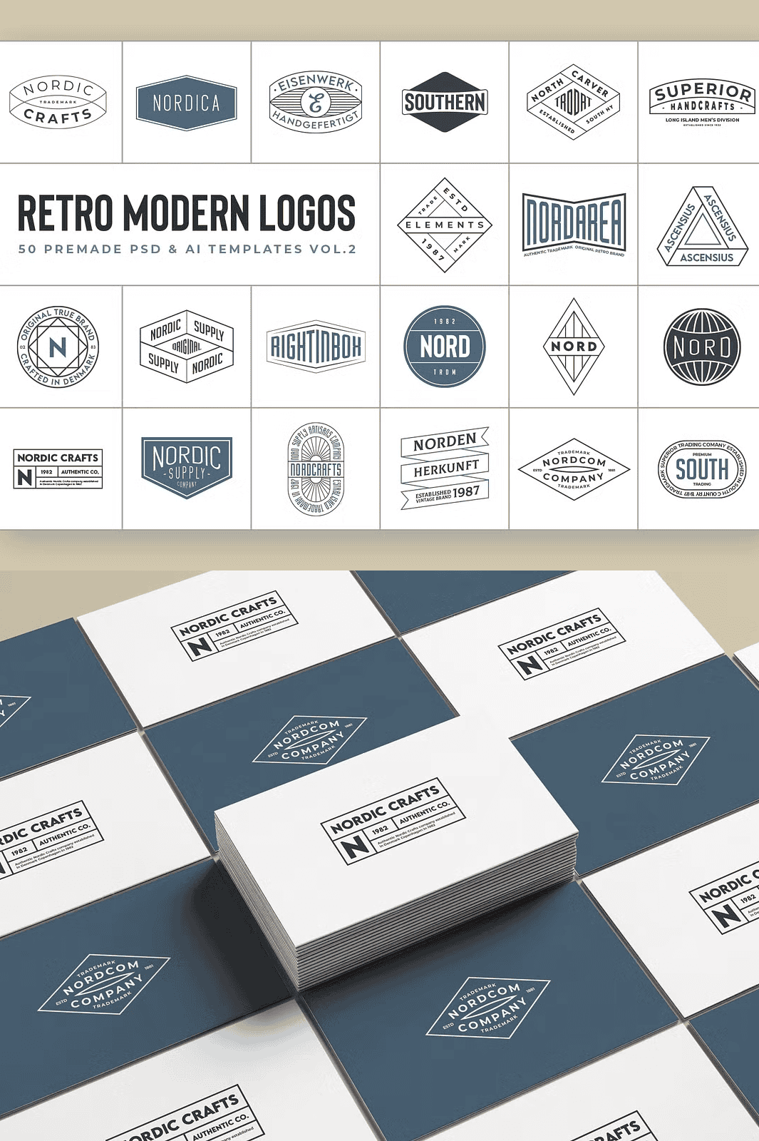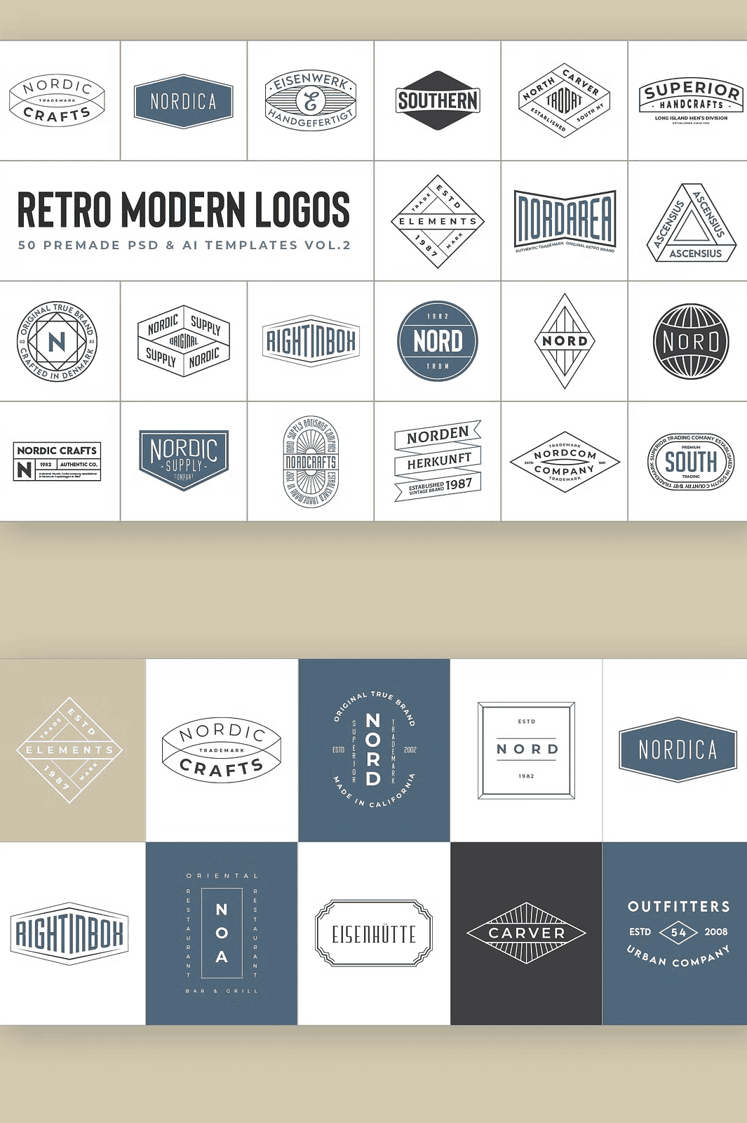 - 50 Unique, Pre-Designed Logos – Choose from a range of stylized layouts featuring geometric precision, bold outlines, and nostalgic color palettes with a fresh twist.
