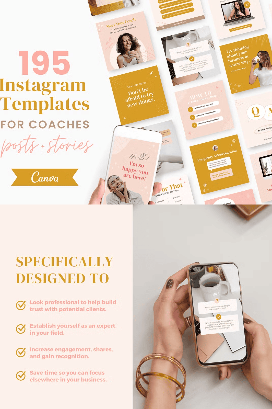 - Scale your personal brand with 195 Instagram-ready posts in square, portrait, and story formats—perfect for grids and stories.