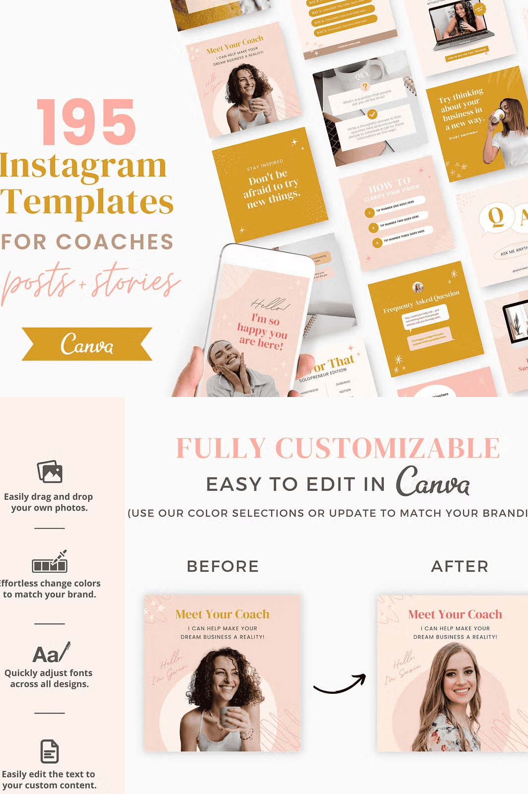 Transform Your Coaching Brand with 200 Professionally Crafted, Canva-Ready Templates