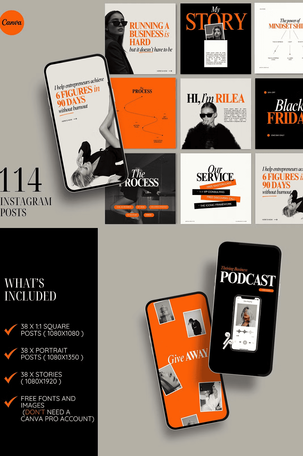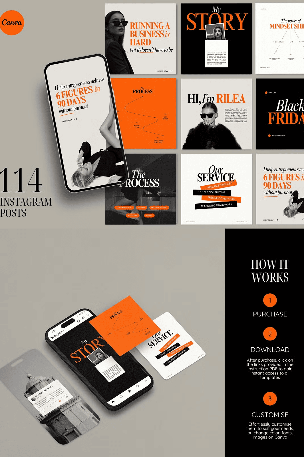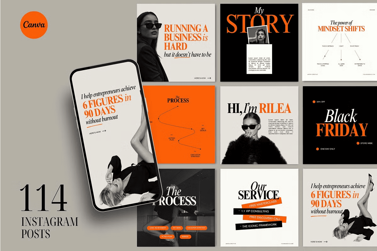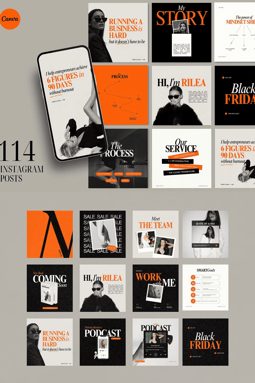 Stop wasting hours on design and start commanding attention. The **Bold Orange Instagram Template Kit** delivers 114 meticulously crafted, fully customizable templates built exclusively for Canva. Whether you’re a podcast host, business coach, life coach, consultant, course creator, or small business owner, this kit empowers you to produce high-quality, visually striking content in seconds—not hours. With bold branding and a vibrant orange palette, these templates instantly elevate your profile with professionalism and energy.