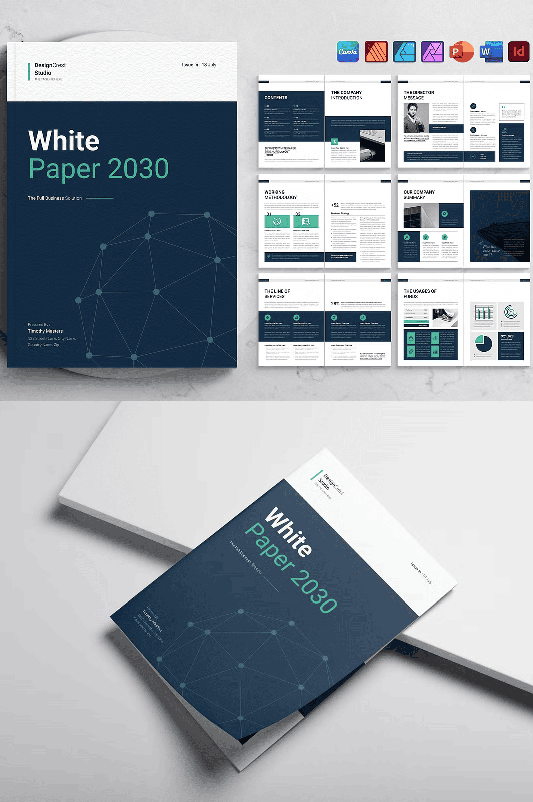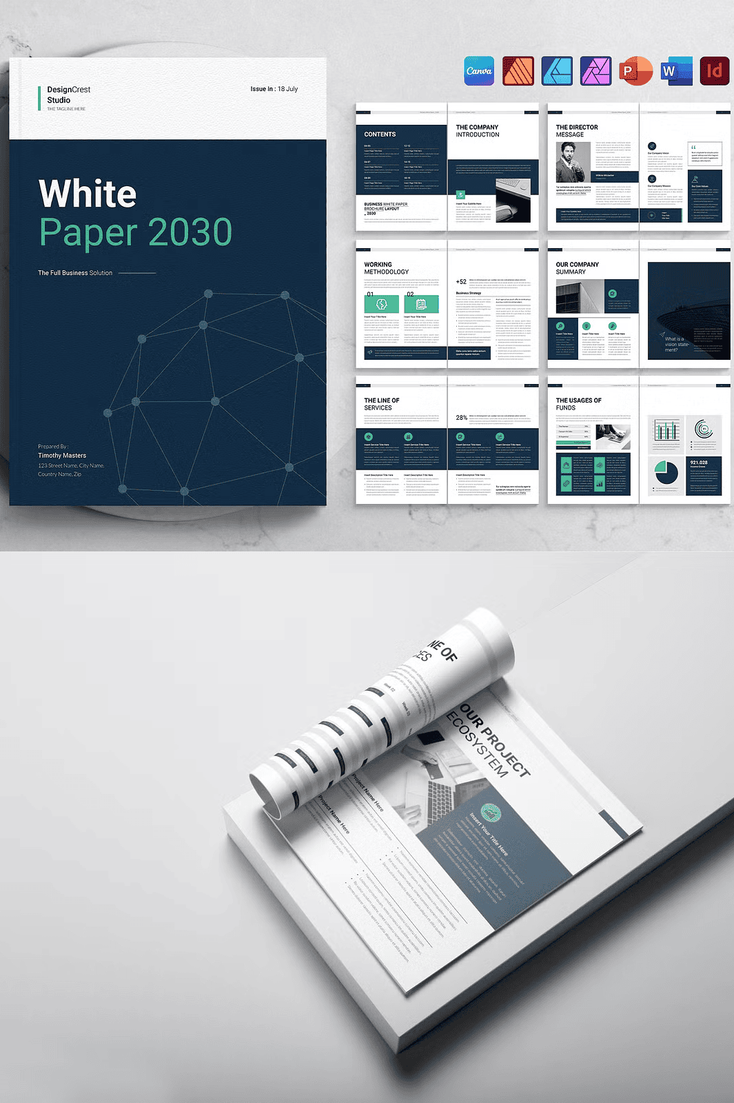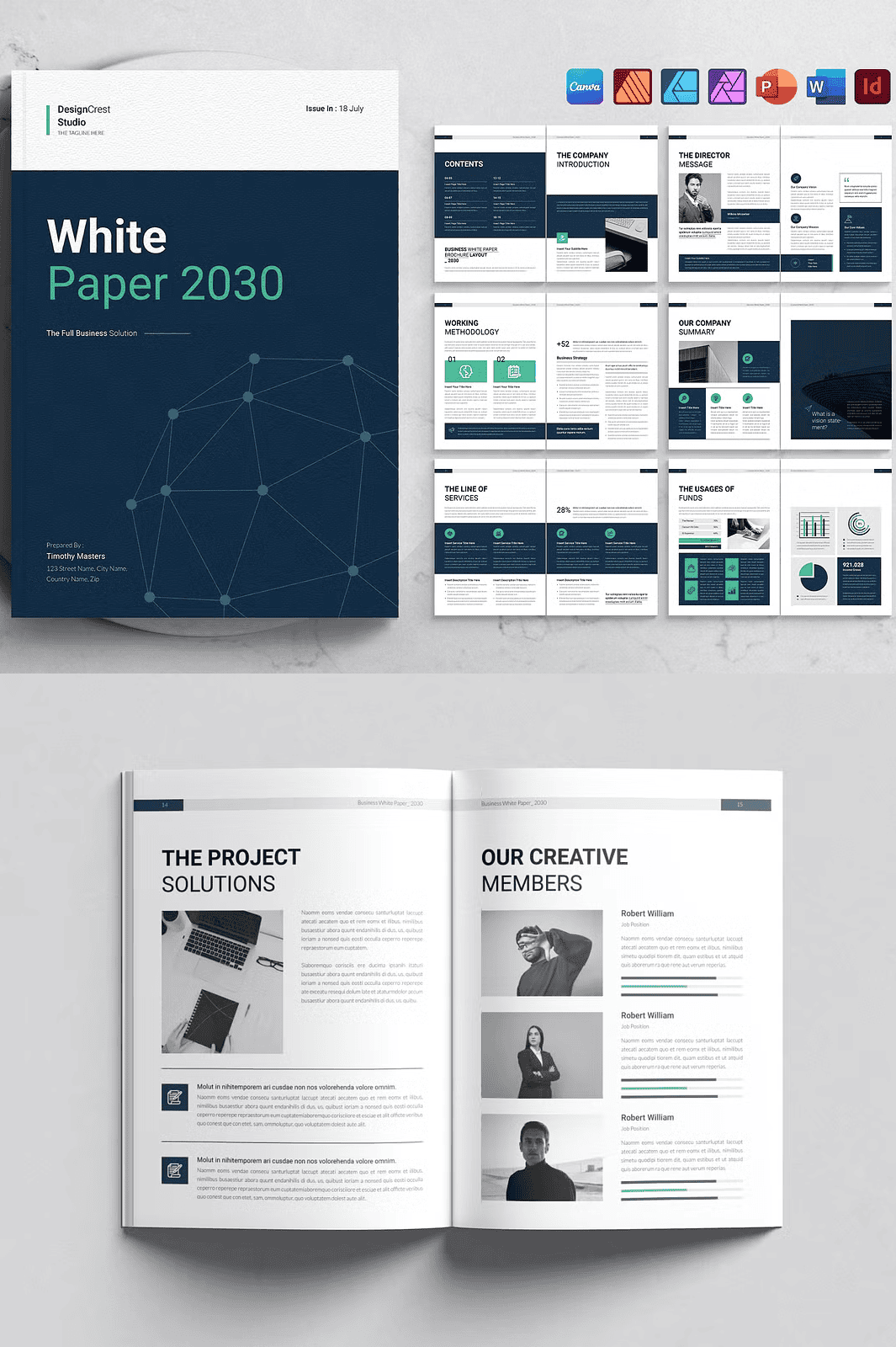 - Highly Scalable – Use the same template for white papers, business proposals, annual reports, or even eBooks. Simply adjust the content and branding.