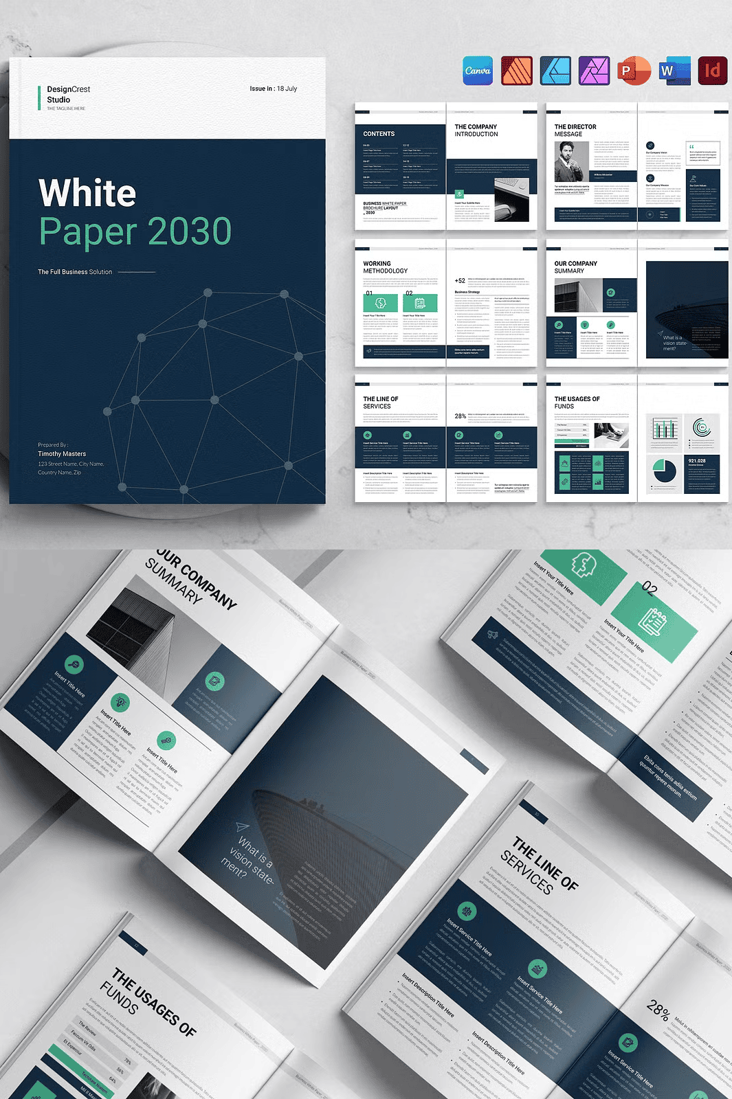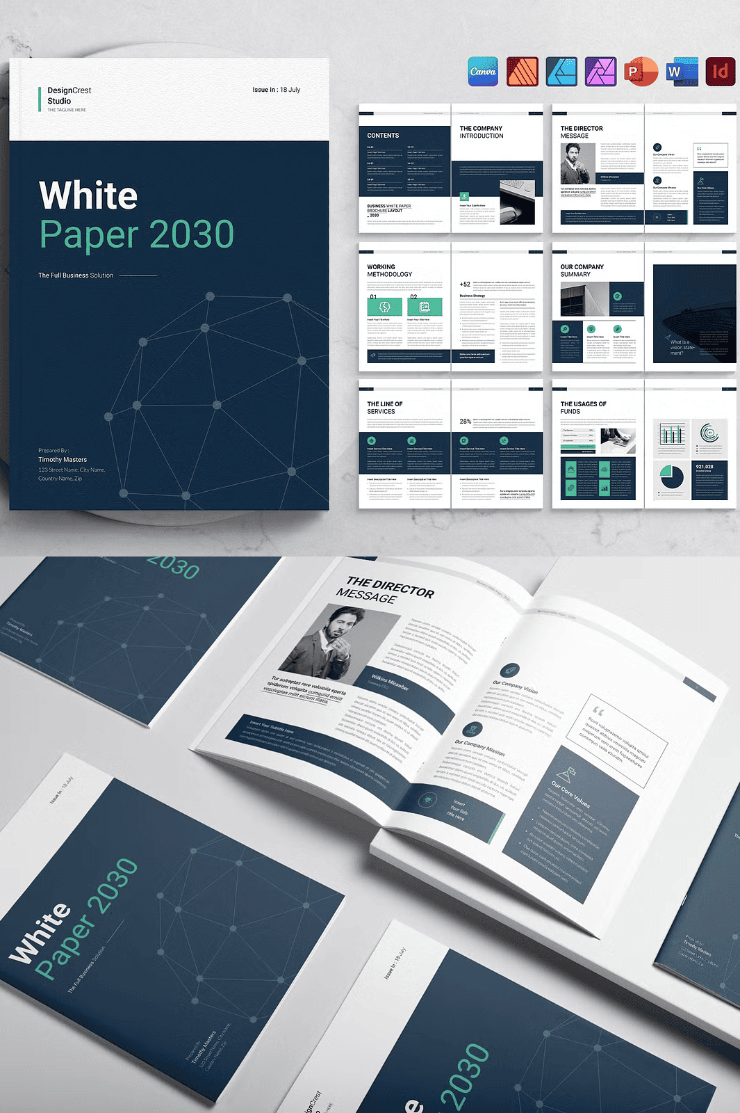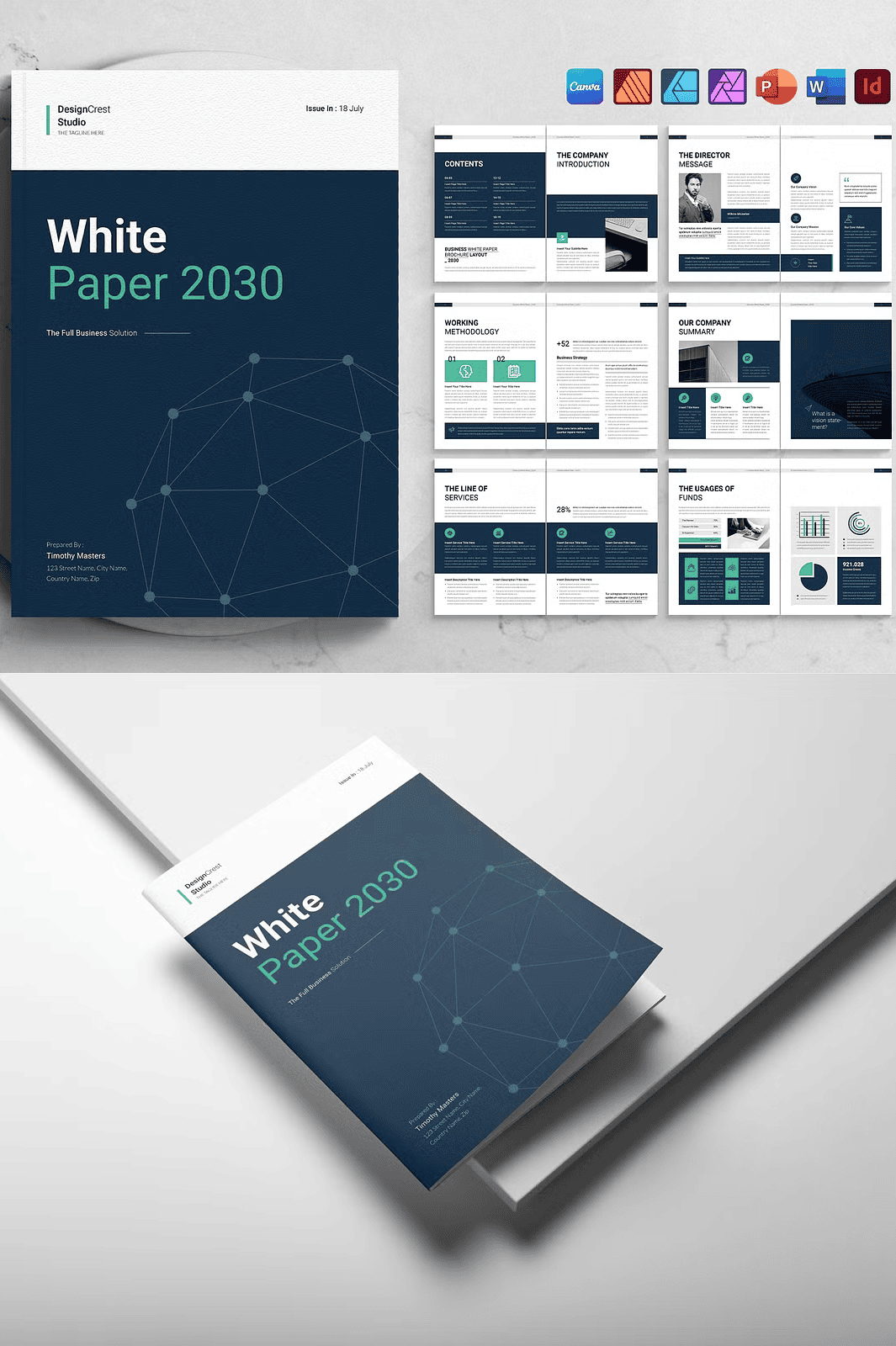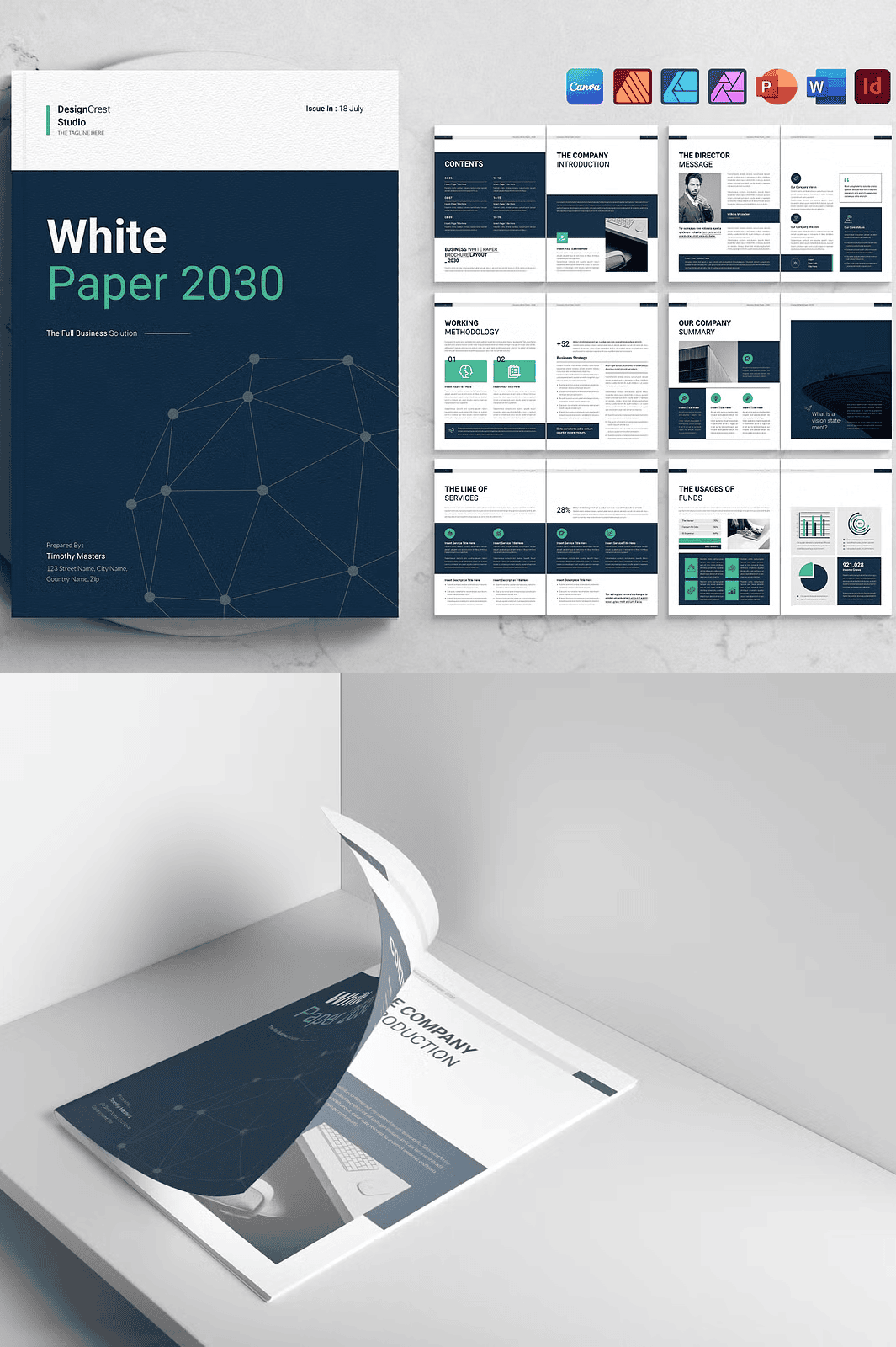 - Highly Scalable – Use the same template for white papers, business proposals, annual reports, or even eBooks. Simply adjust the content and branding.
