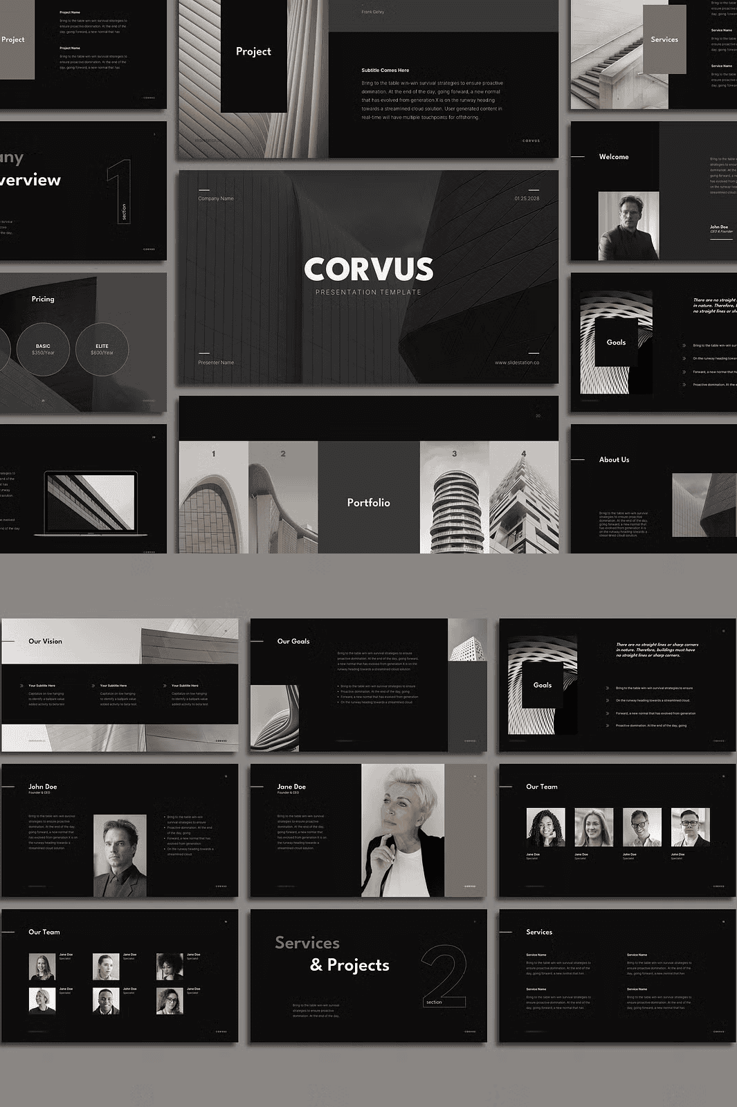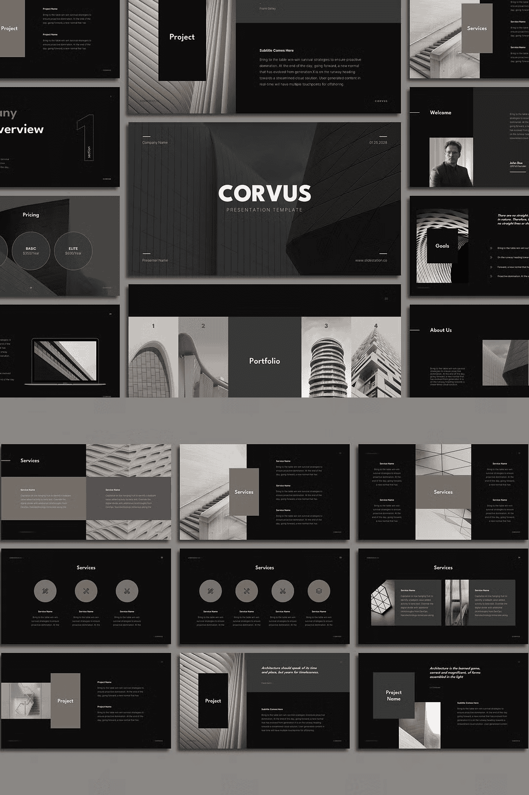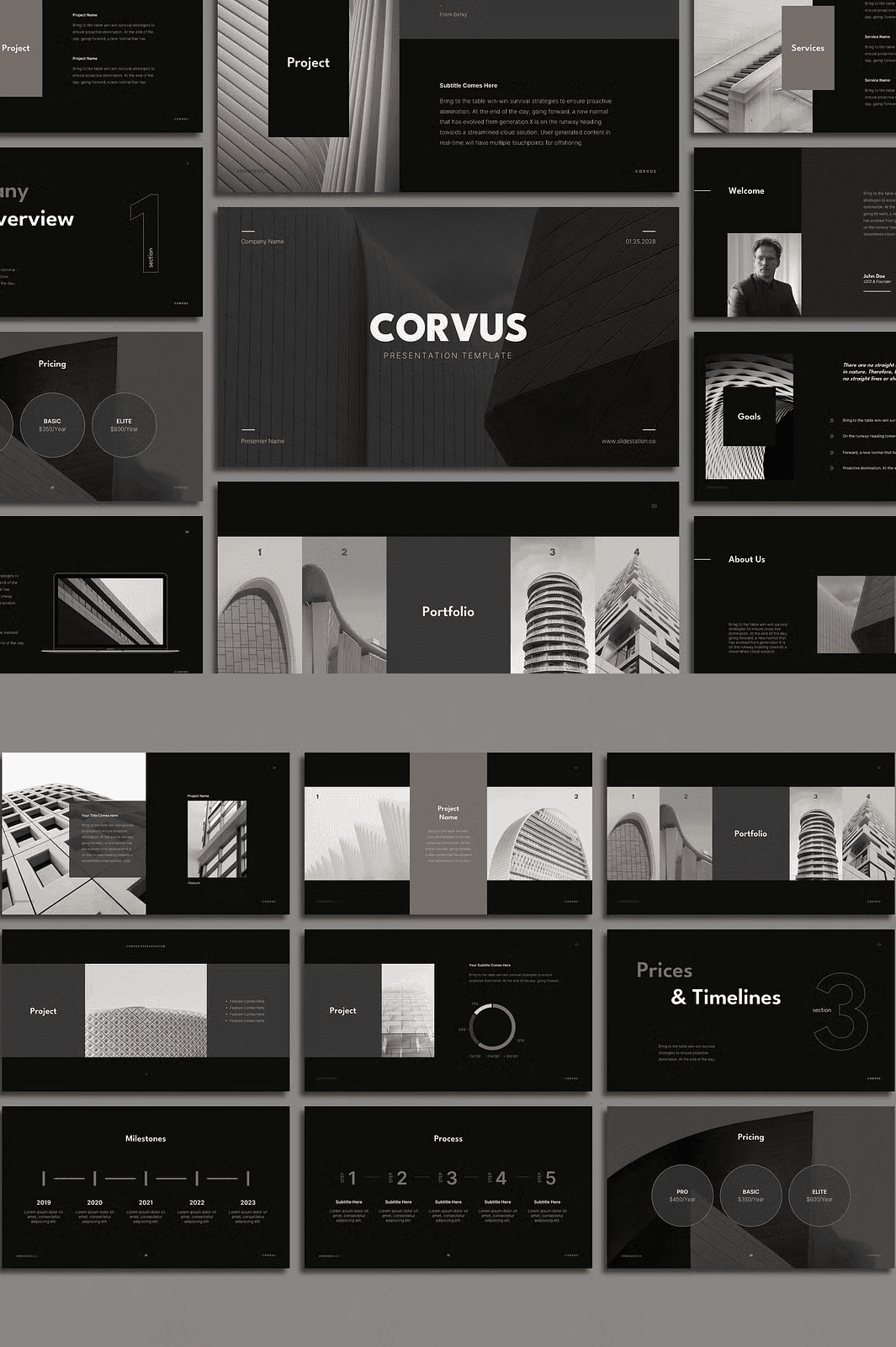 Corvus includes **70+ expertly designed slides**, each tailored to a key stage in your project journey: