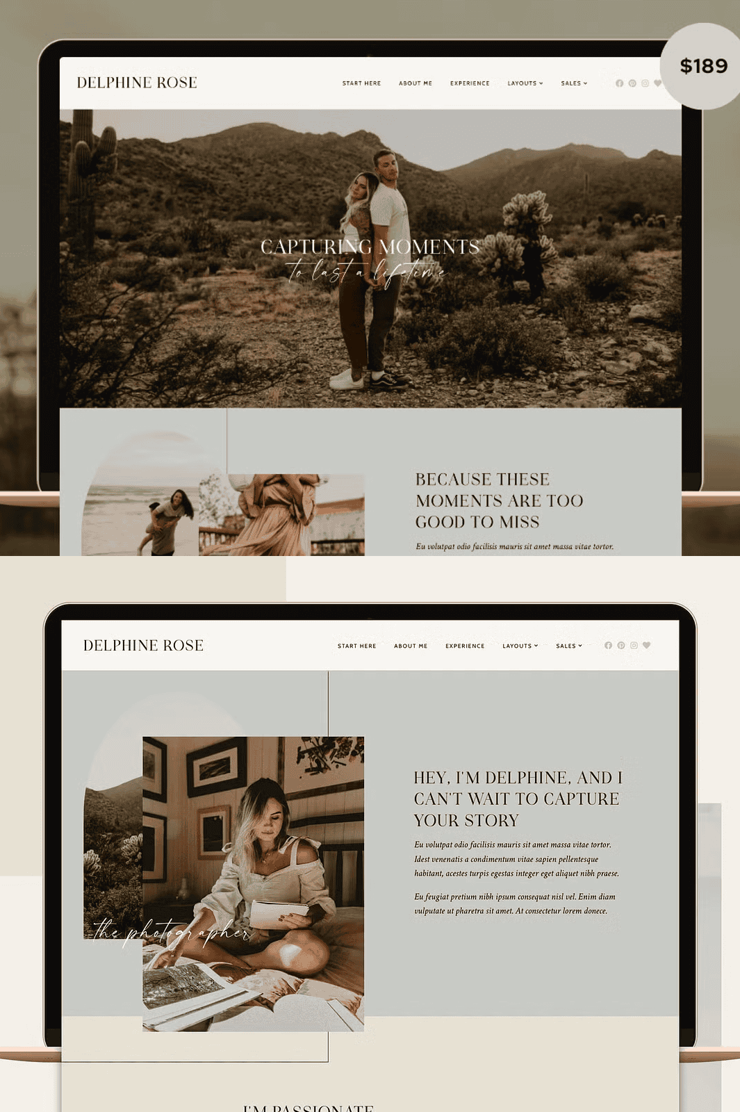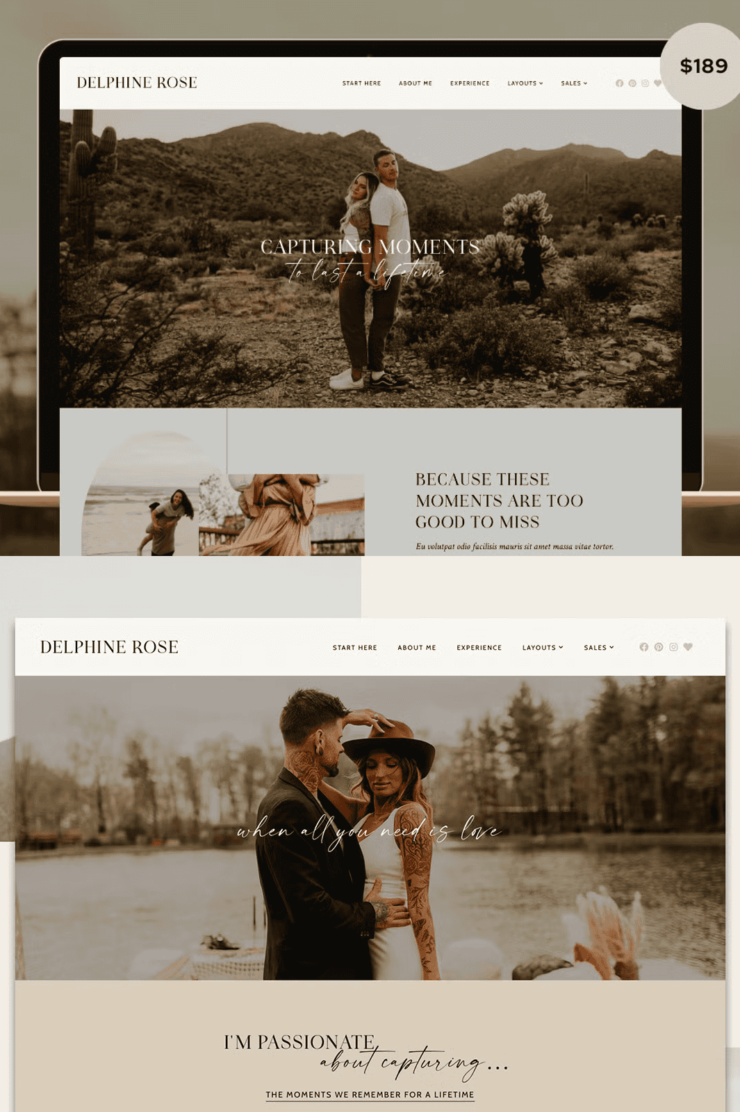 Elevate your portfolio, service business, or creative brand with the Delphine WordPress theme. Designed for photographers, wedding planners, artists, and other visual professionals, this romantic and feminine theme brings elegance and functionality to your website. With stunning visuals and a user-friendly structure, Delphine helps you showcase your work with confidence and style — no coding required.