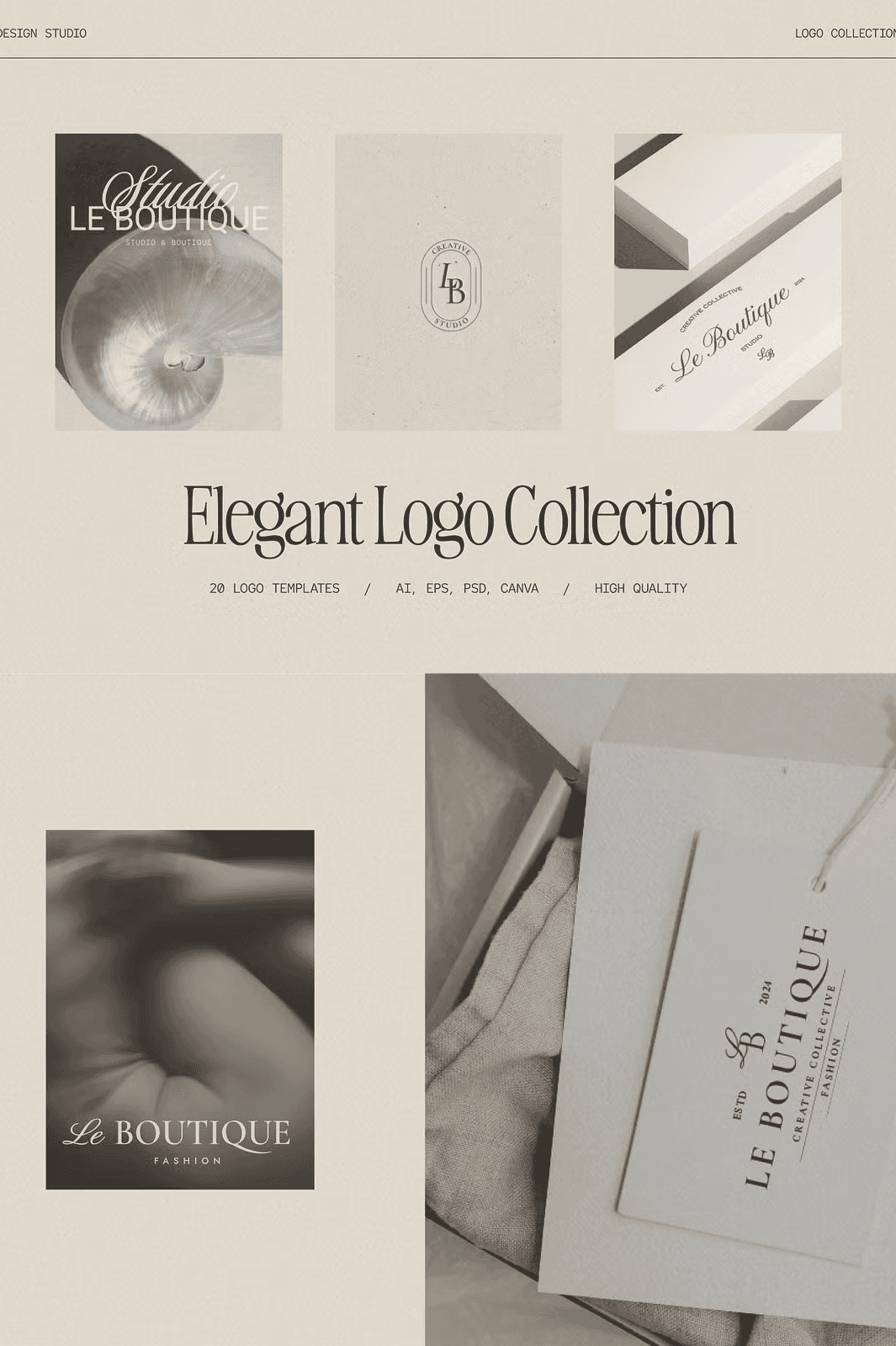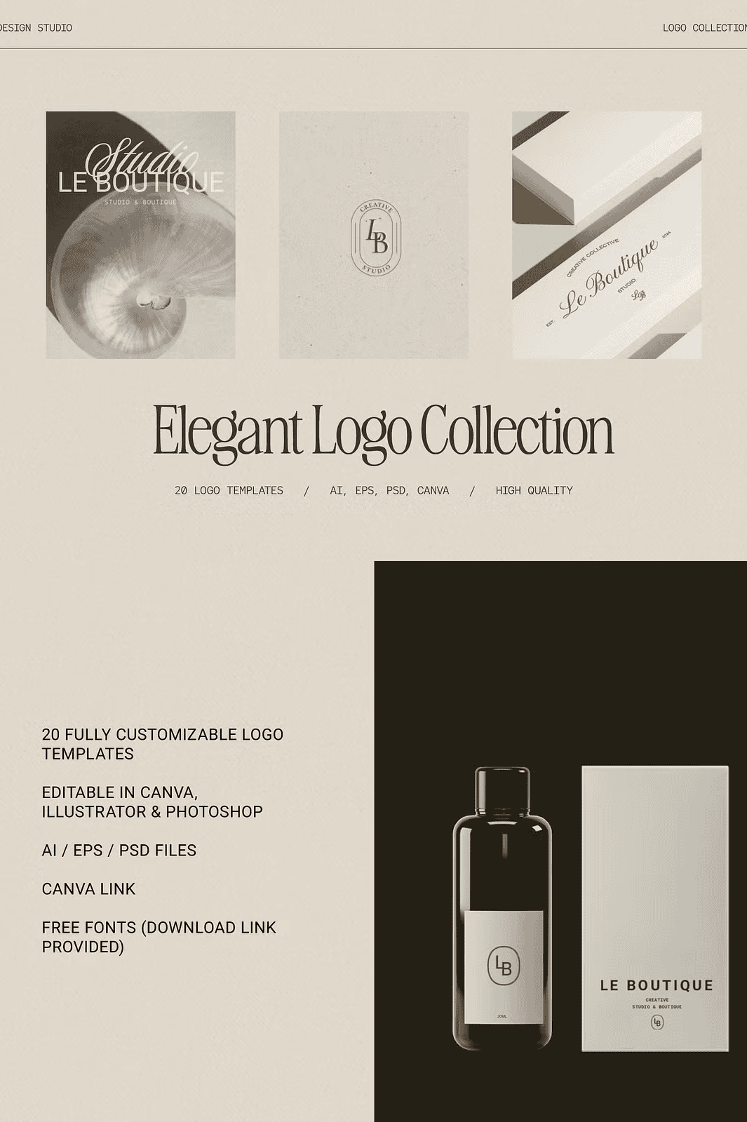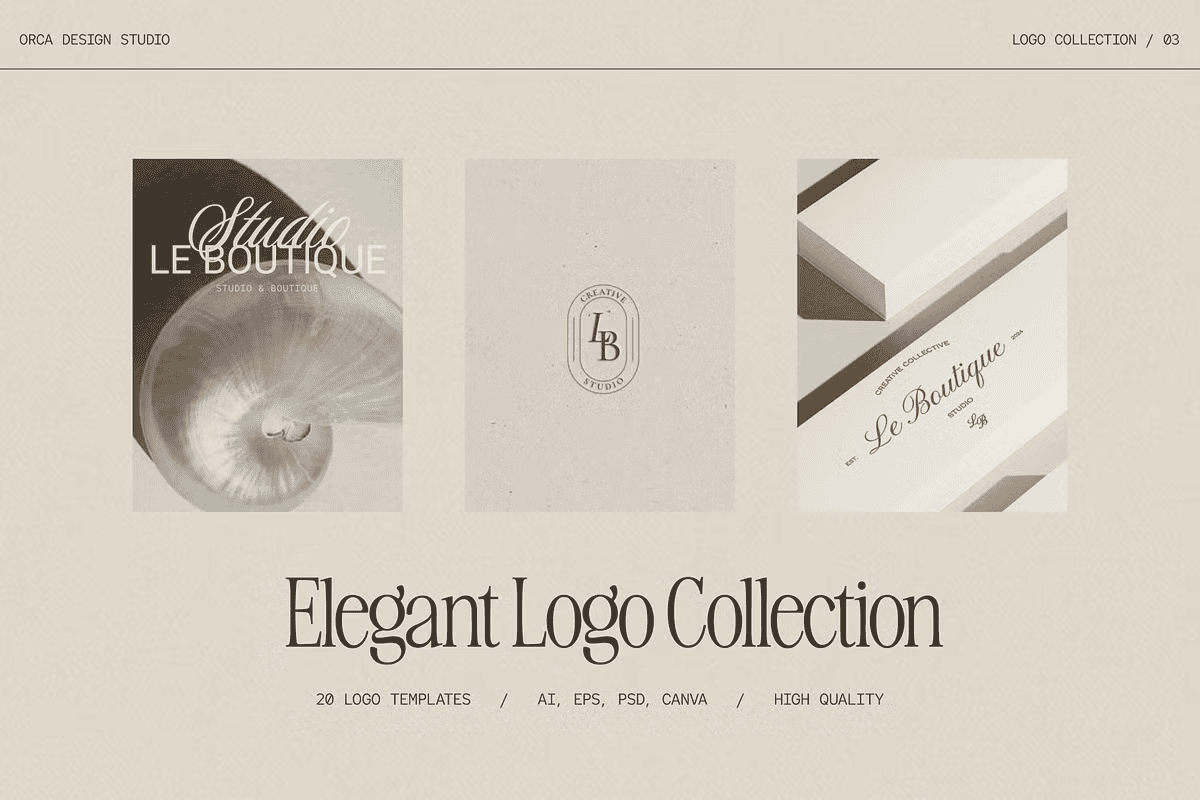 - 20 Fully Editable Templates: A diverse selection of layouts—from sleek monograms to elegant wordmarks—tailored to convey timeless style.