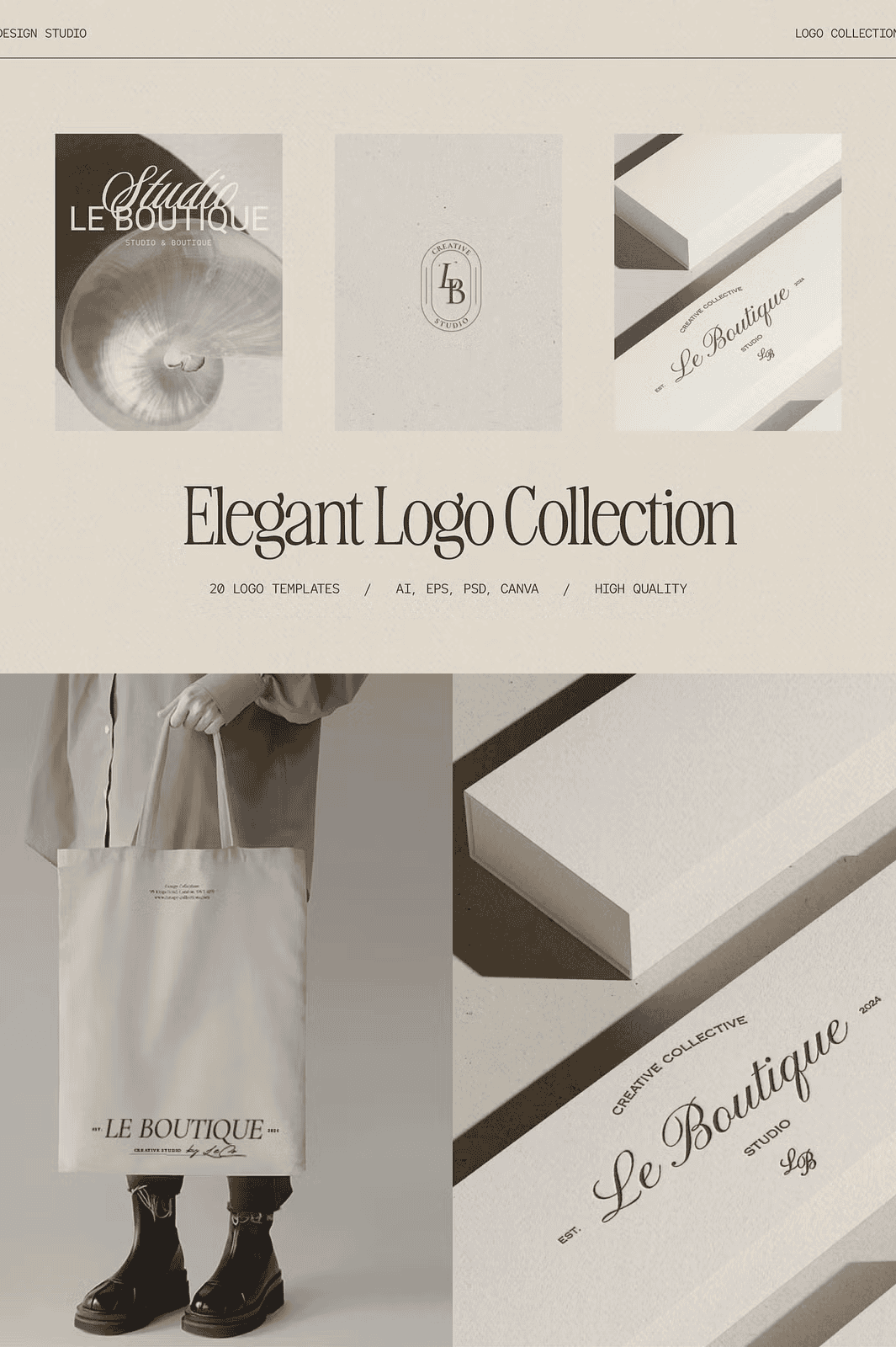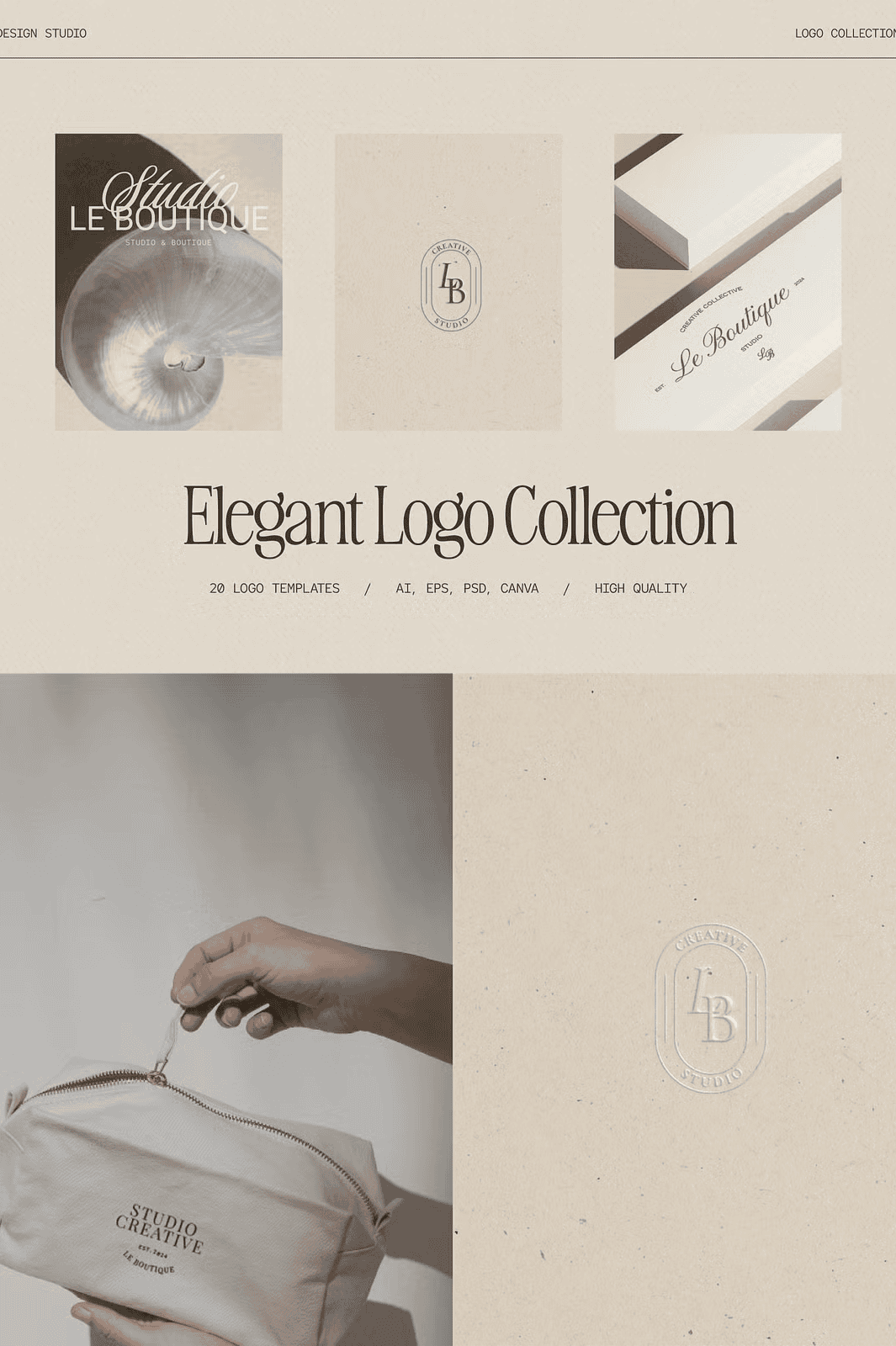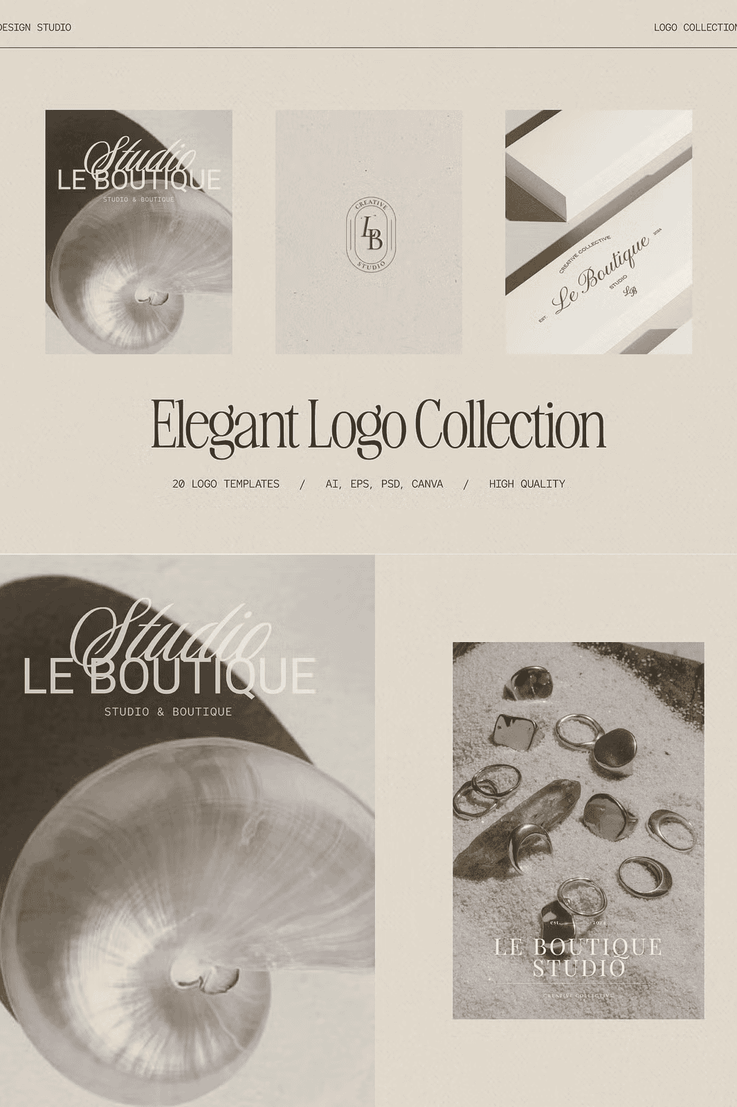 - 20 Fully Editable Templates: A diverse selection of layouts—from sleek monograms to elegant wordmarks—tailored to convey timeless style.