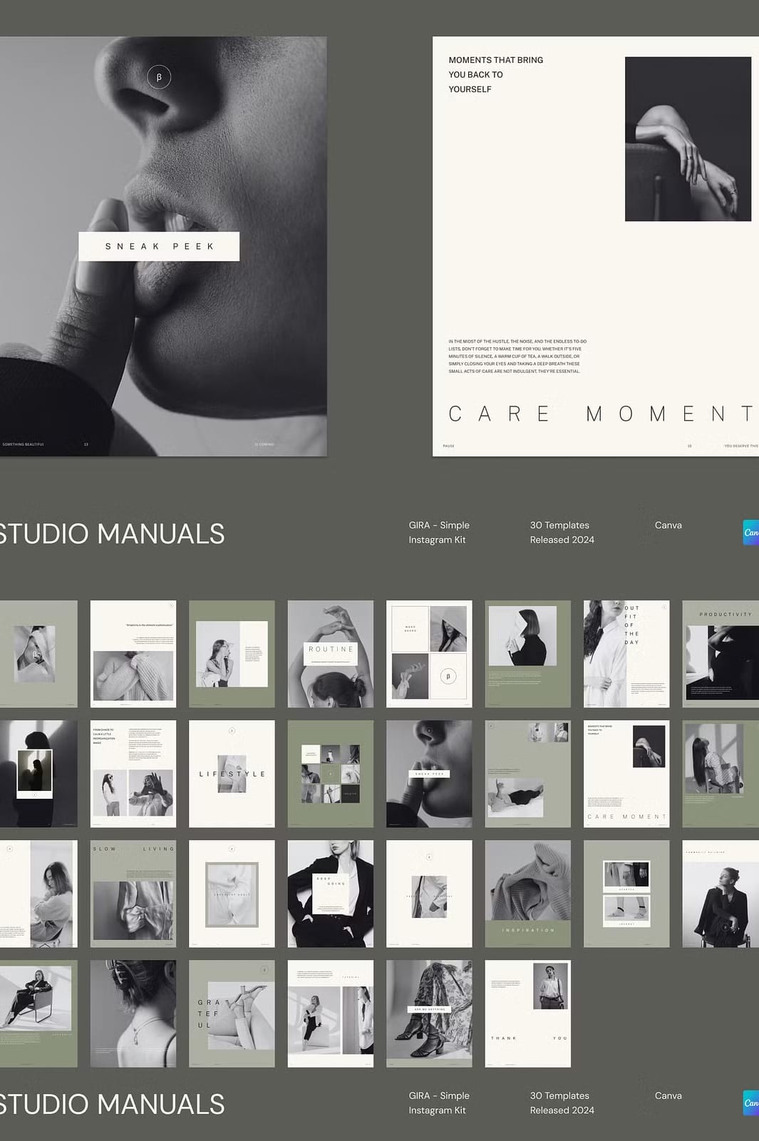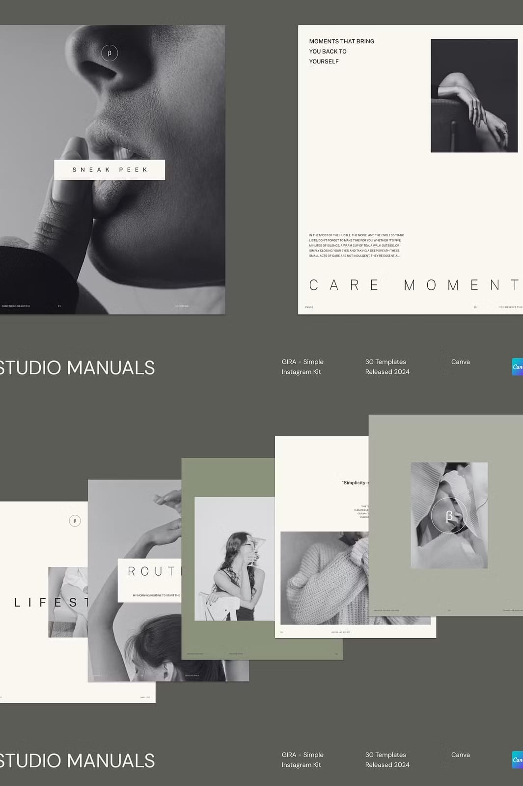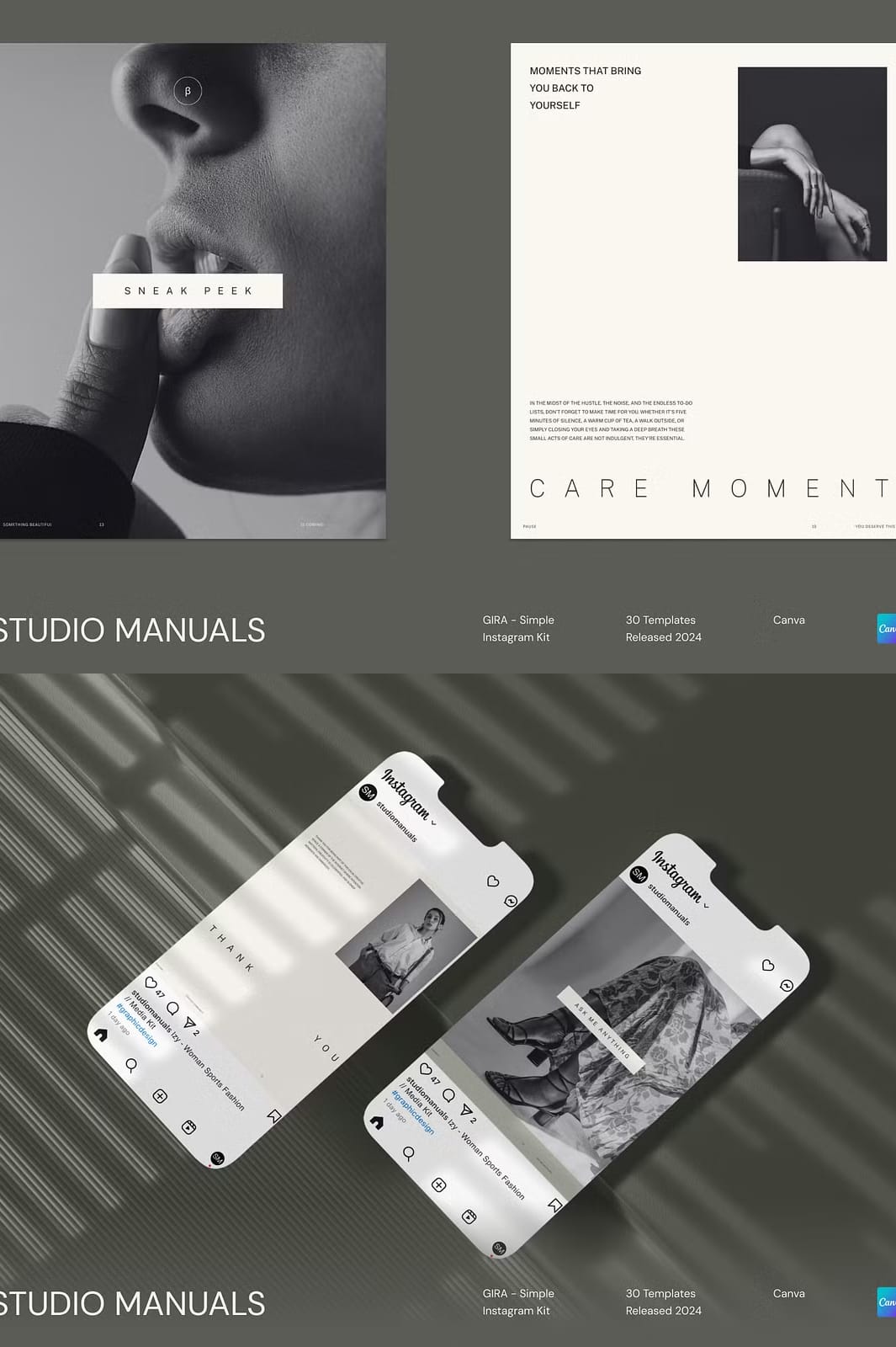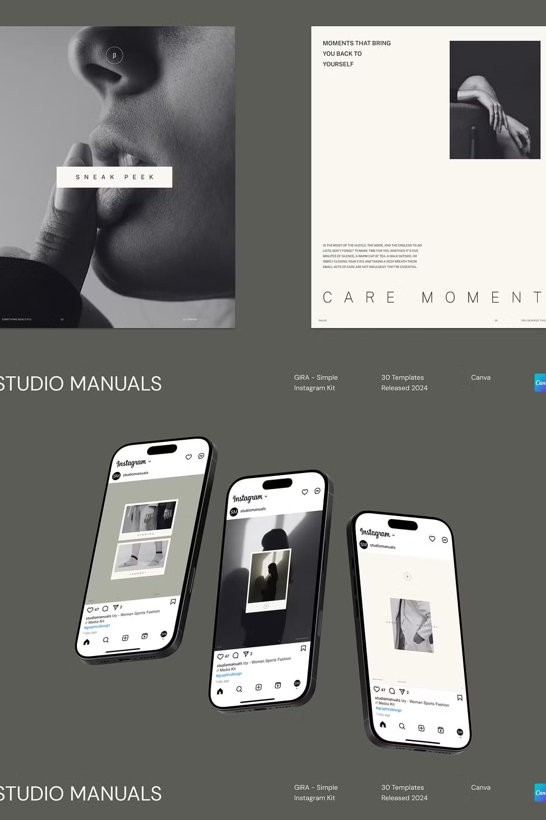 The GIRA Simple Instagram Kit is a thoughtfully designed collection of 30 fully customizable Instagram post templates, each sized at 1350px by 1080px to perfectly fit Instagram’s feed dimensions. This kit empowers business owners, influencers, and content creators to elevate their social media presence with minimal effort and maximum impact. By focusing on clean, minimalistic design, GIRA ensures your content stands out with clarity and professionalism, allowing your message to take center stage without distractions.