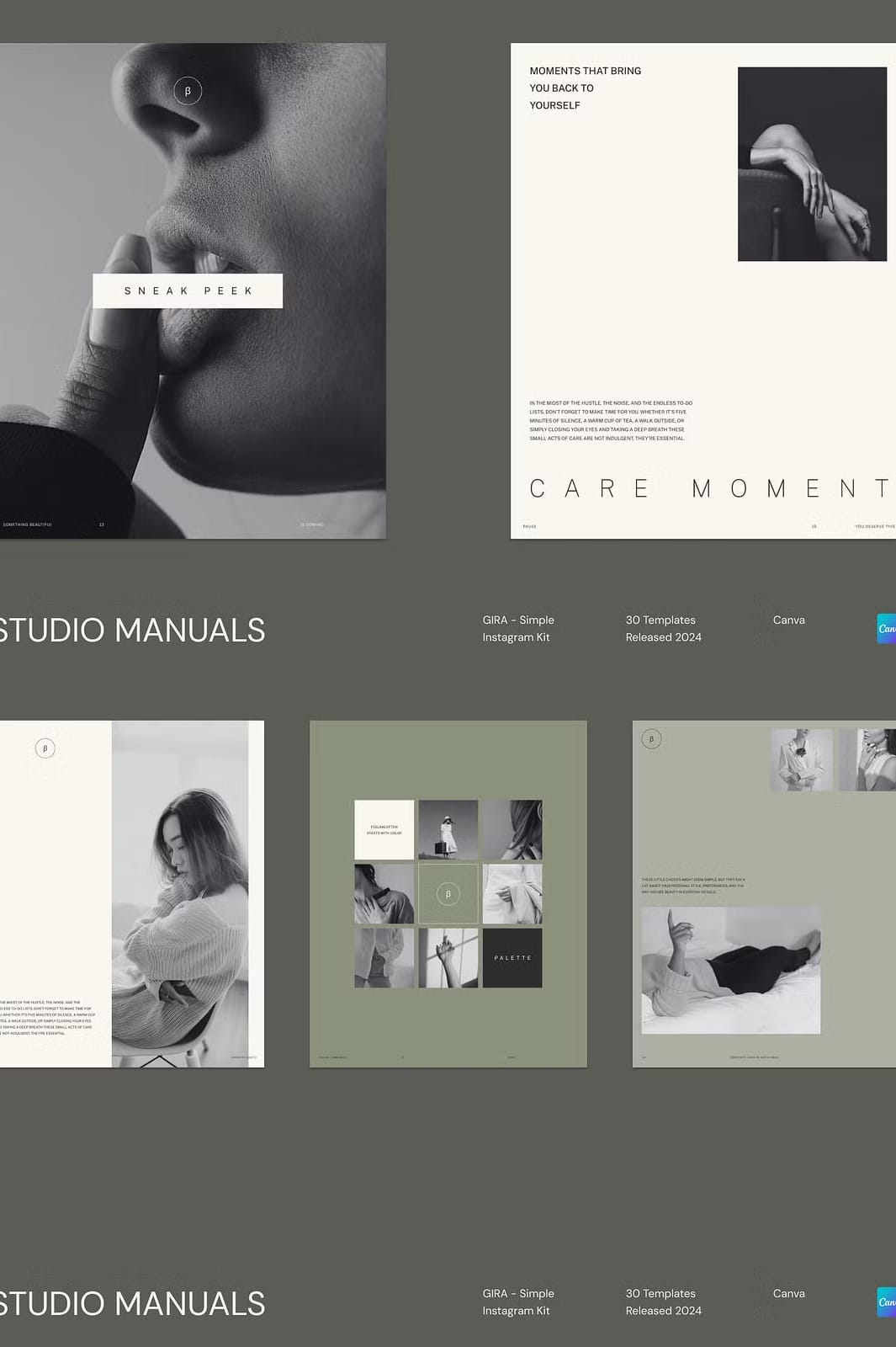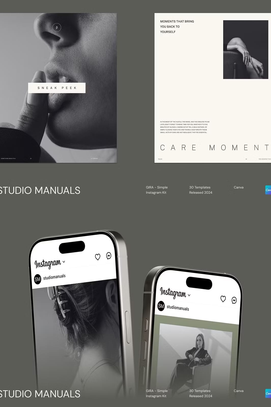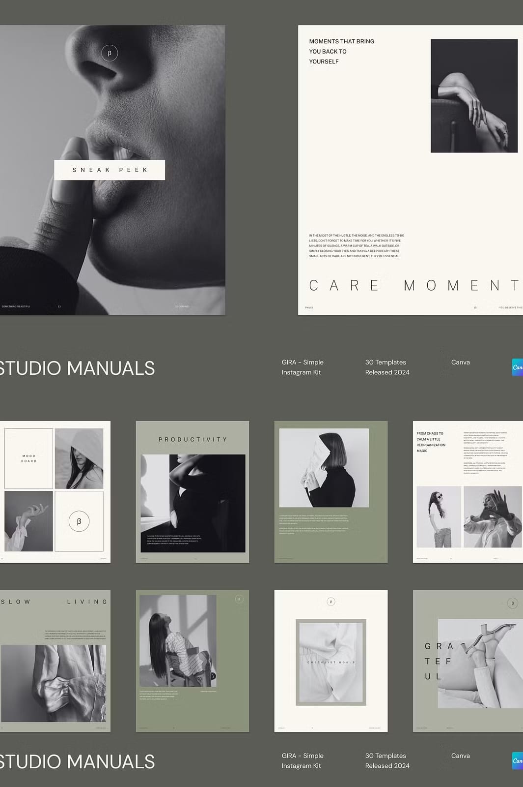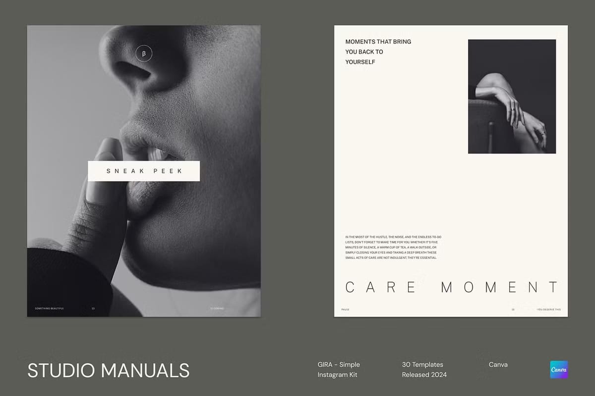 The GIRA Simple Instagram Kit is a thoughtfully designed collection of 30 fully customizable Instagram post templates, each sized at 1350px by 1080px to perfectly fit Instagram’s feed dimensions. This kit empowers business owners, influencers, and content creators to elevate their social media presence with minimal effort and maximum impact. By focusing on clean, minimalistic design, GIRA ensures your content stands out with clarity and professionalism, allowing your message to take center stage without distractions.