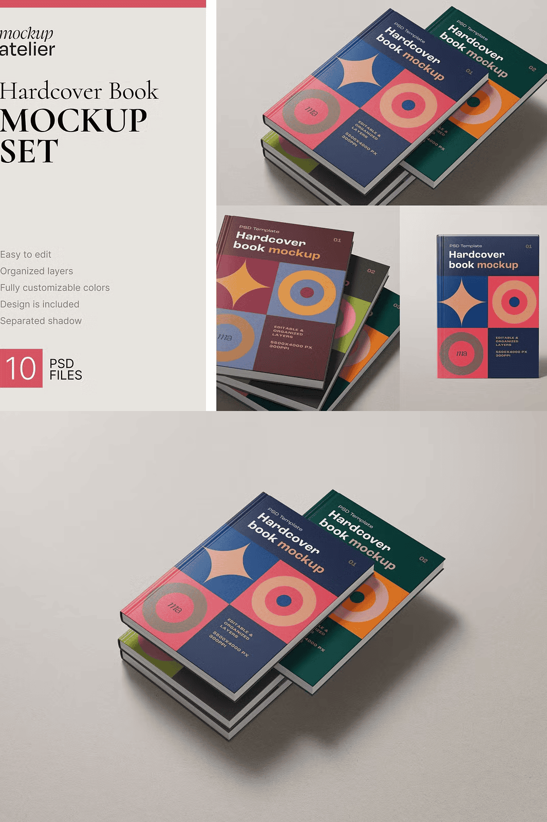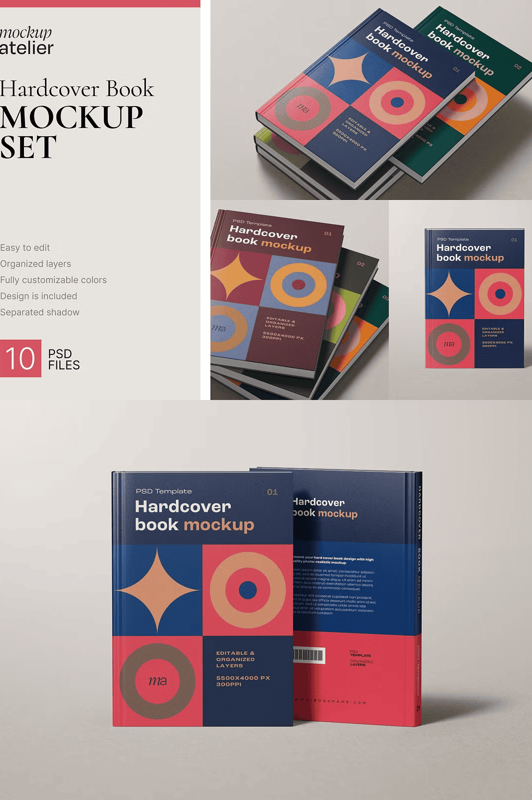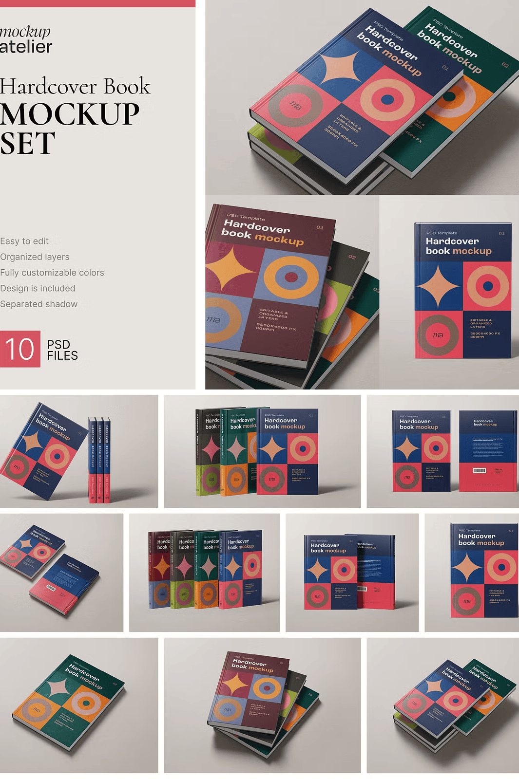 – **10 Unique Hardcover Book Designs:** From sleek minimalist covers to bold, trend-driven layouts, this set offers variety for every niche — publishing, lifestyle, education, and more.