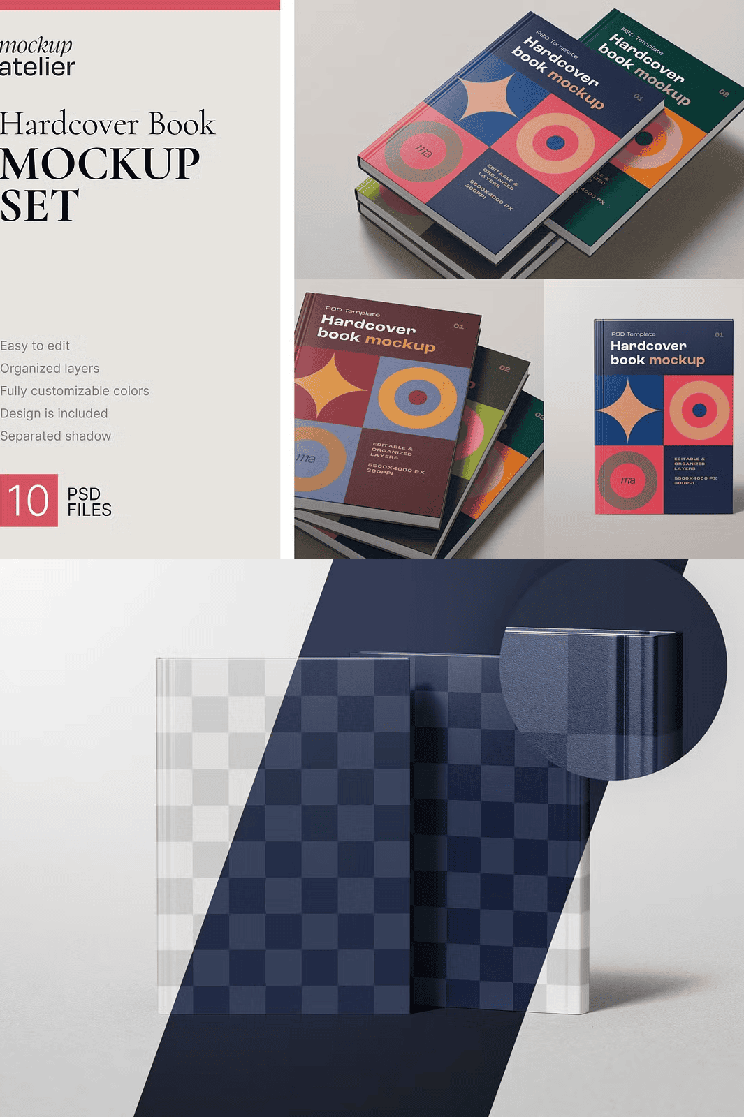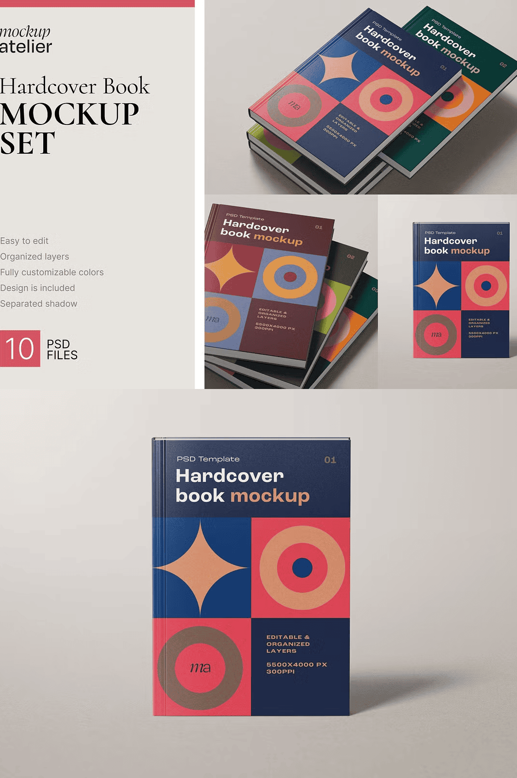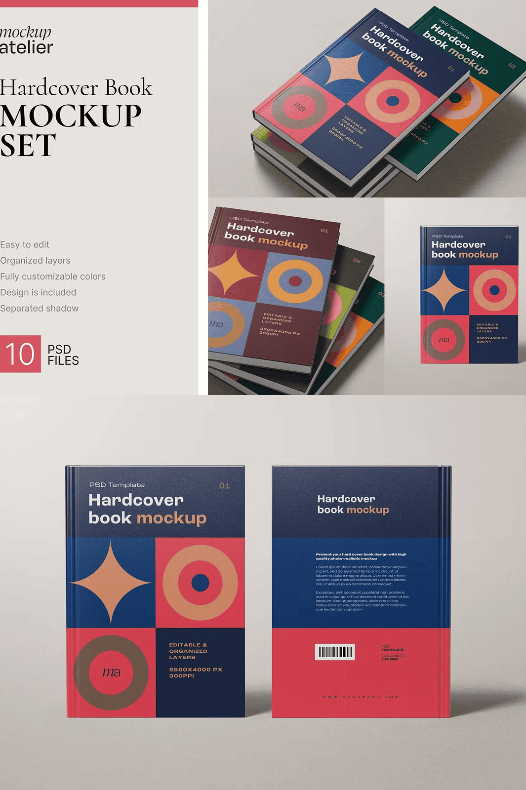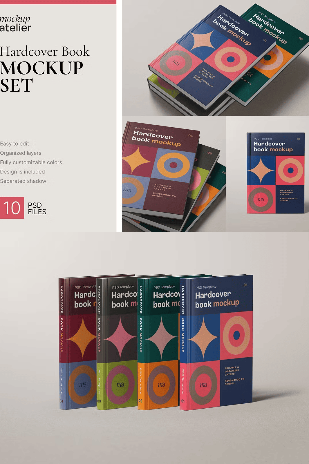 – **10 Unique Hardcover Book Designs:** From sleek minimalist covers to bold, trend-driven layouts, this set offers variety for every niche — publishing, lifestyle, education, and more.