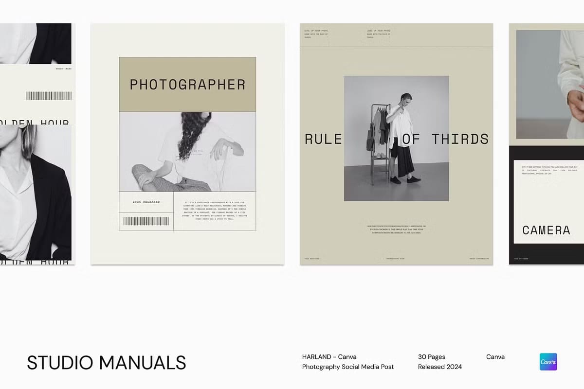 HARLAND – Canva Photography Social Media Post is a meticulously crafted collection of 30 fully customizable templates designed specifically for photographers, creatives, and visual storytellers who want to present their work with style, clarity, and professionalism. Each template is perfectly sized at 1350px by 1080px, optimized for Instagram’s feed but also adaptable to other social media platforms. Whether you are promoting a new photoshoot, sharing behind-the-scenes moments, or building a cohesive brand identity, HARLAND empowers you to create visually compelling posts that captivate your audience and elevate your online presence.