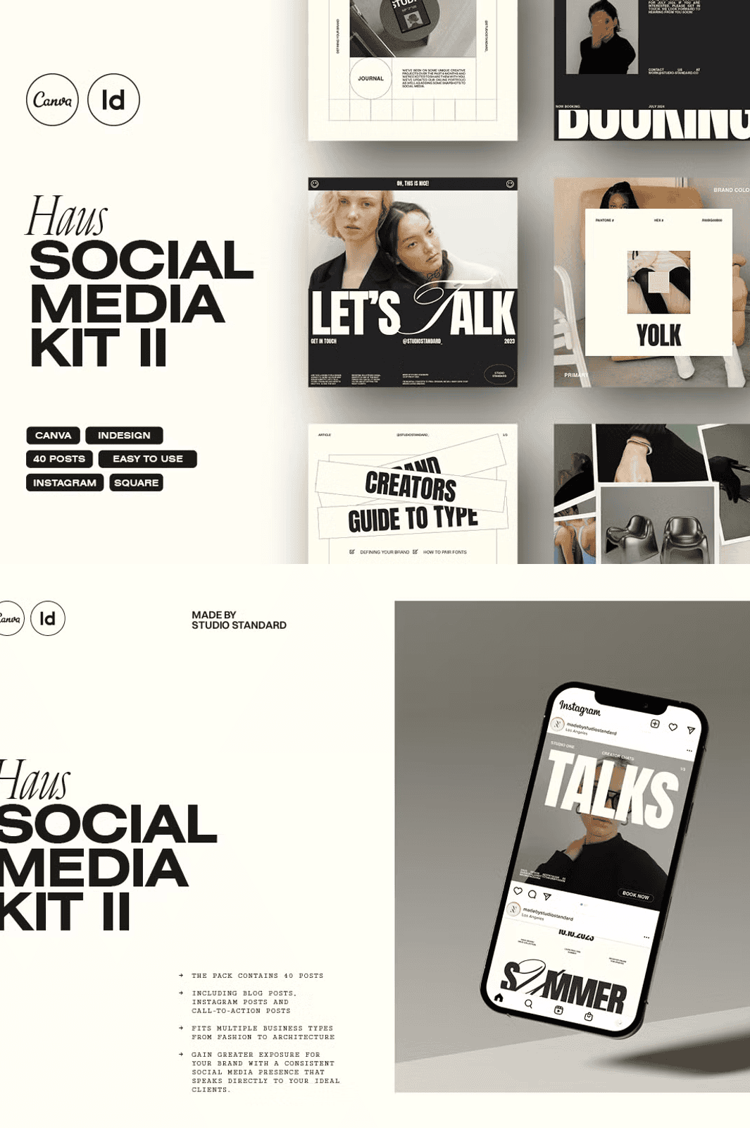 Elevate your brand’s visual storytelling with the **Haus Social Media Kit Part 2**, the ultimate collection of 40+ premium, ready-to-use templates crafted for fashion brands, influencers, design studios, and creative marketers. Whether you’re launching a new product, promoting a campaign, or sharing behind-the-scenes content, this kit gives you the tools to create stunning, on-brand posts that captivate your audience and drive engagement—fast.