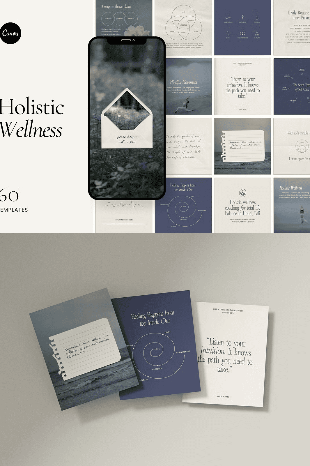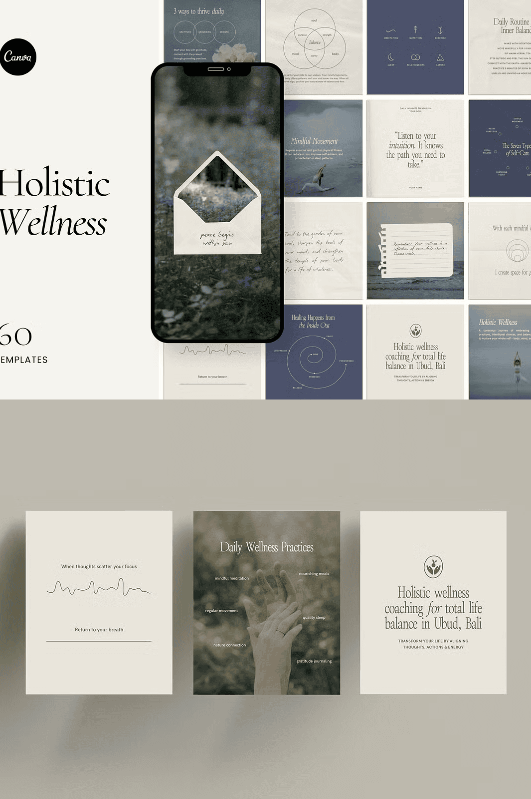 – ✅ **60 High-Quality Templates** – A comprehensive set covering every content need for holistic wellness brands.