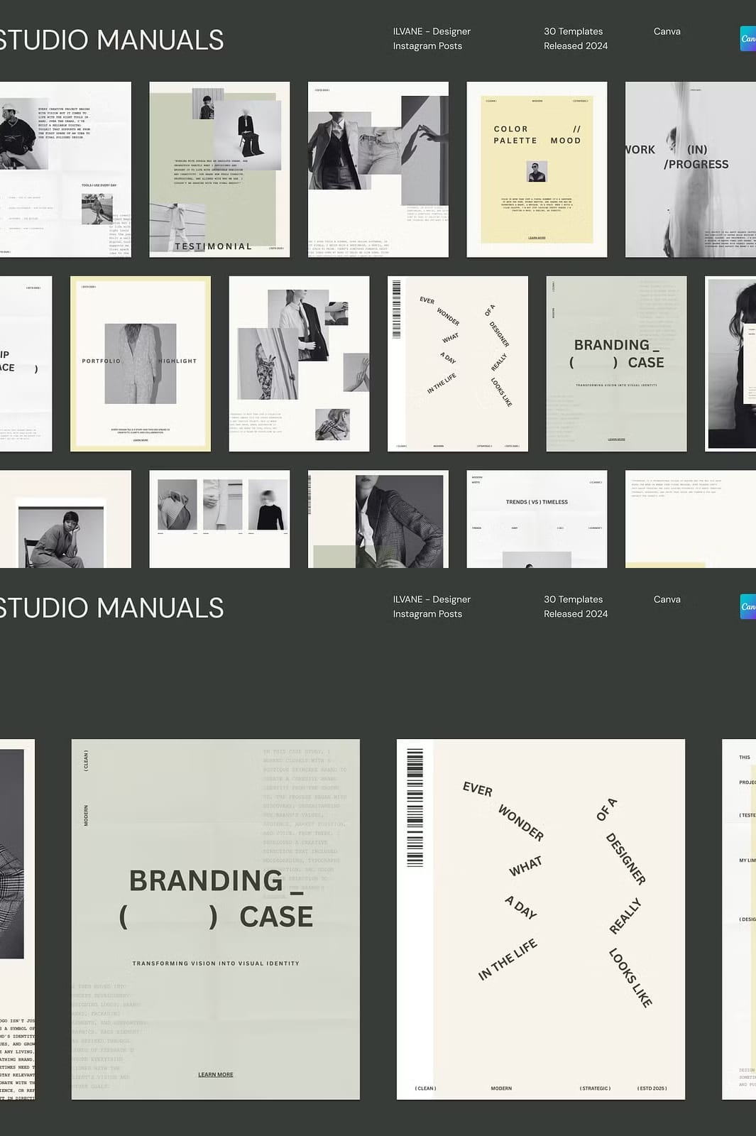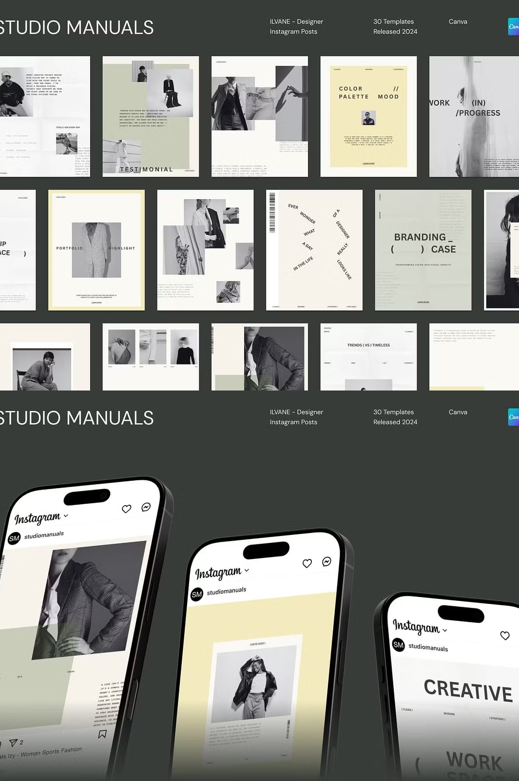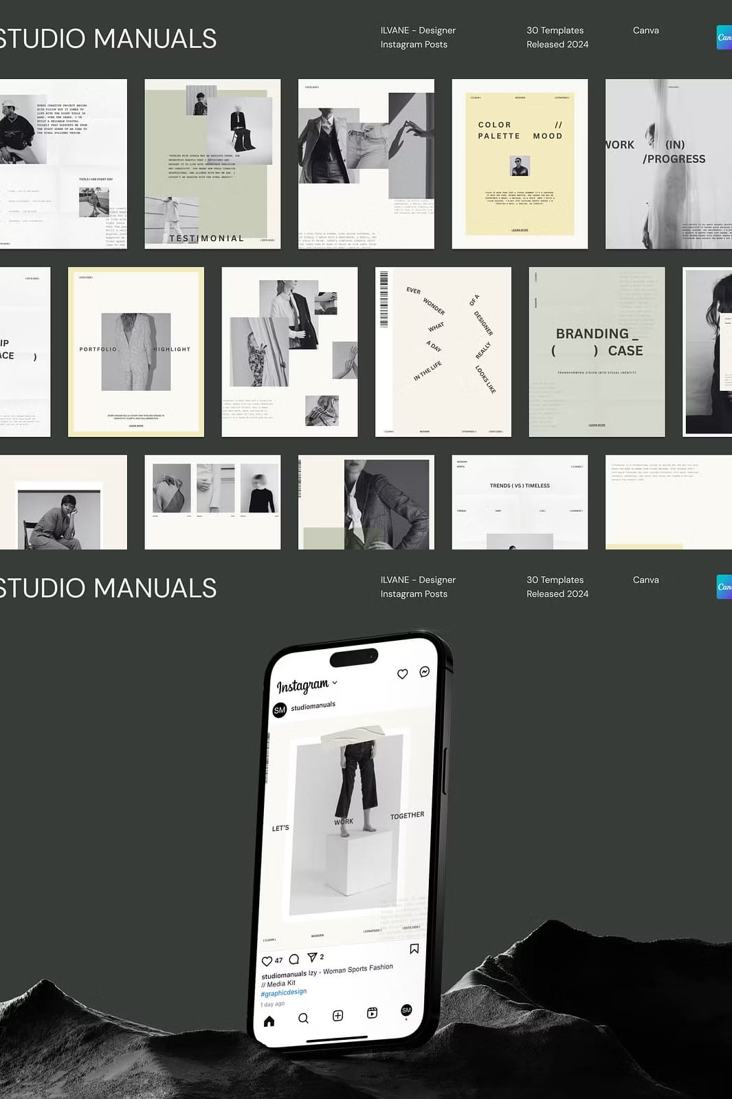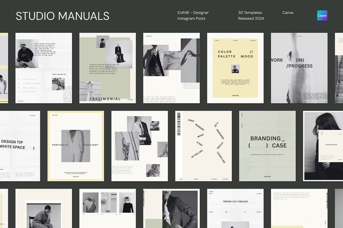 ILVANE – Designer Instagram Posts is a carefully curated collection of 30 fully customizable social media templates tailored specifically for designers, creatives, and brands aiming to make a bold and memorable statement online. Each template is precisely sized at 1350px by 1080px, optimized for Instagram’s feed and adaptable to other social media platforms. Whether you want to showcase your portfolio, announce new projects, or share creative insights, ILVANE empowers you to communicate your message with clarity, confidence, and style.