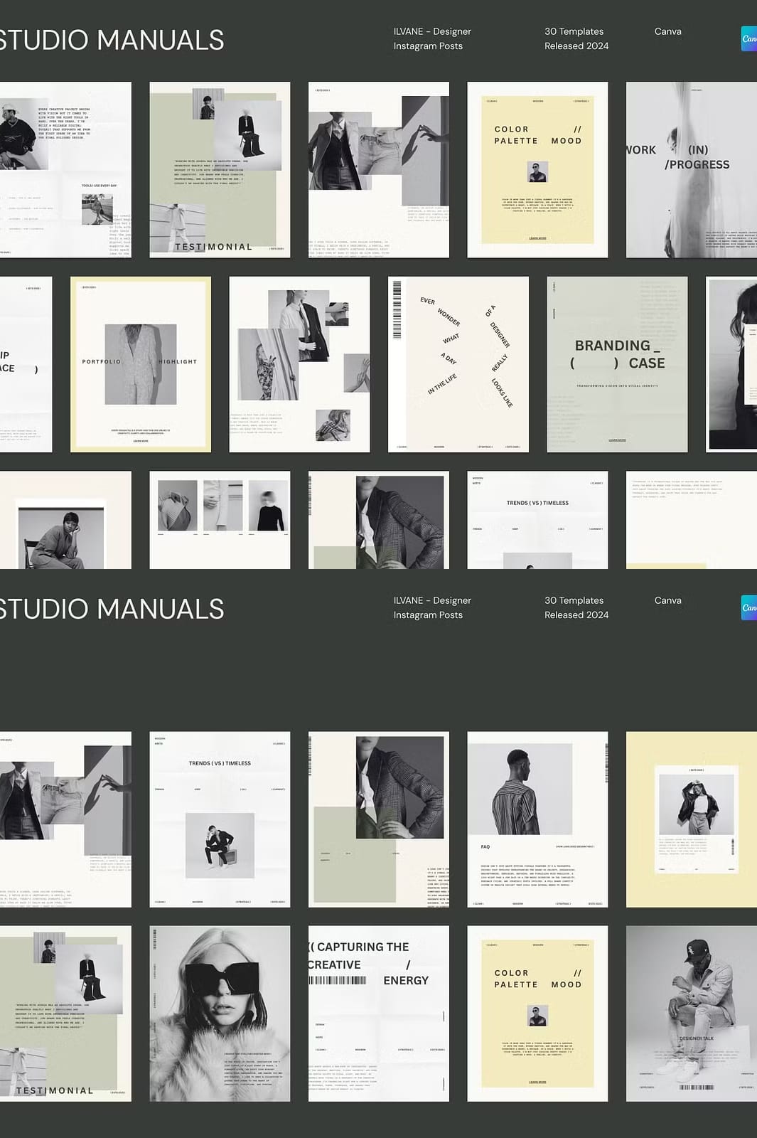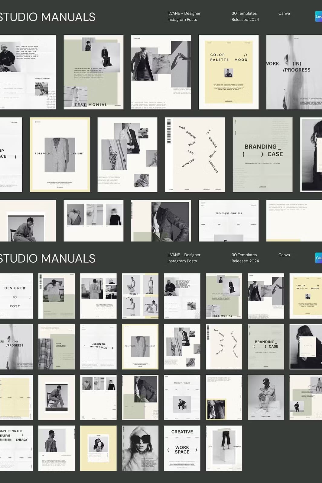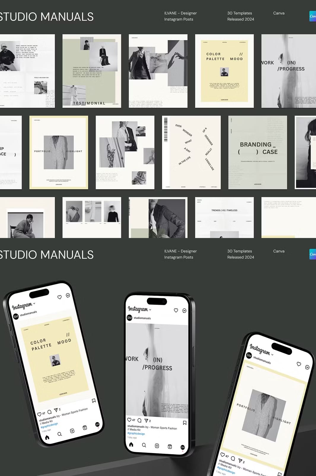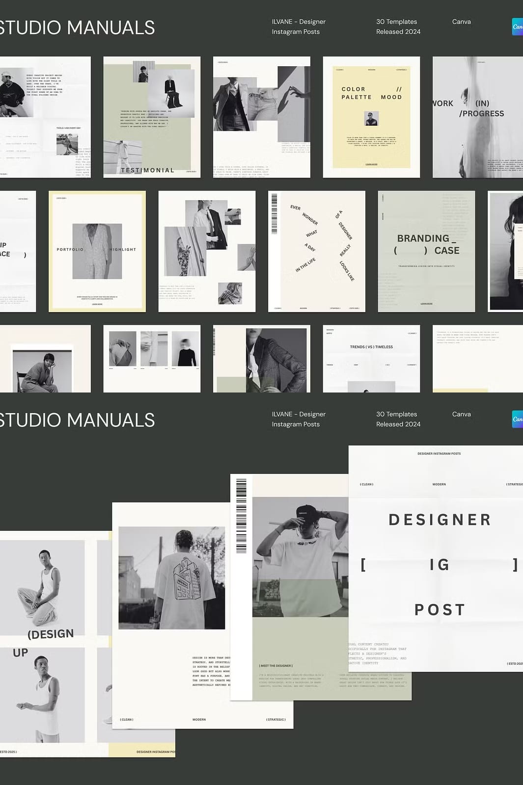 ILVANE – Designer Instagram Posts is a carefully curated collection of 30 fully customizable social media templates tailored specifically for designers, creatives, and brands aiming to make a bold and memorable statement online. Each template is precisely sized at 1350px by 1080px, optimized for Instagram’s feed and adaptable to other social media platforms. Whether you want to showcase your portfolio, announce new projects, or share creative insights, ILVANE empowers you to communicate your message with clarity, confidence, and style.
