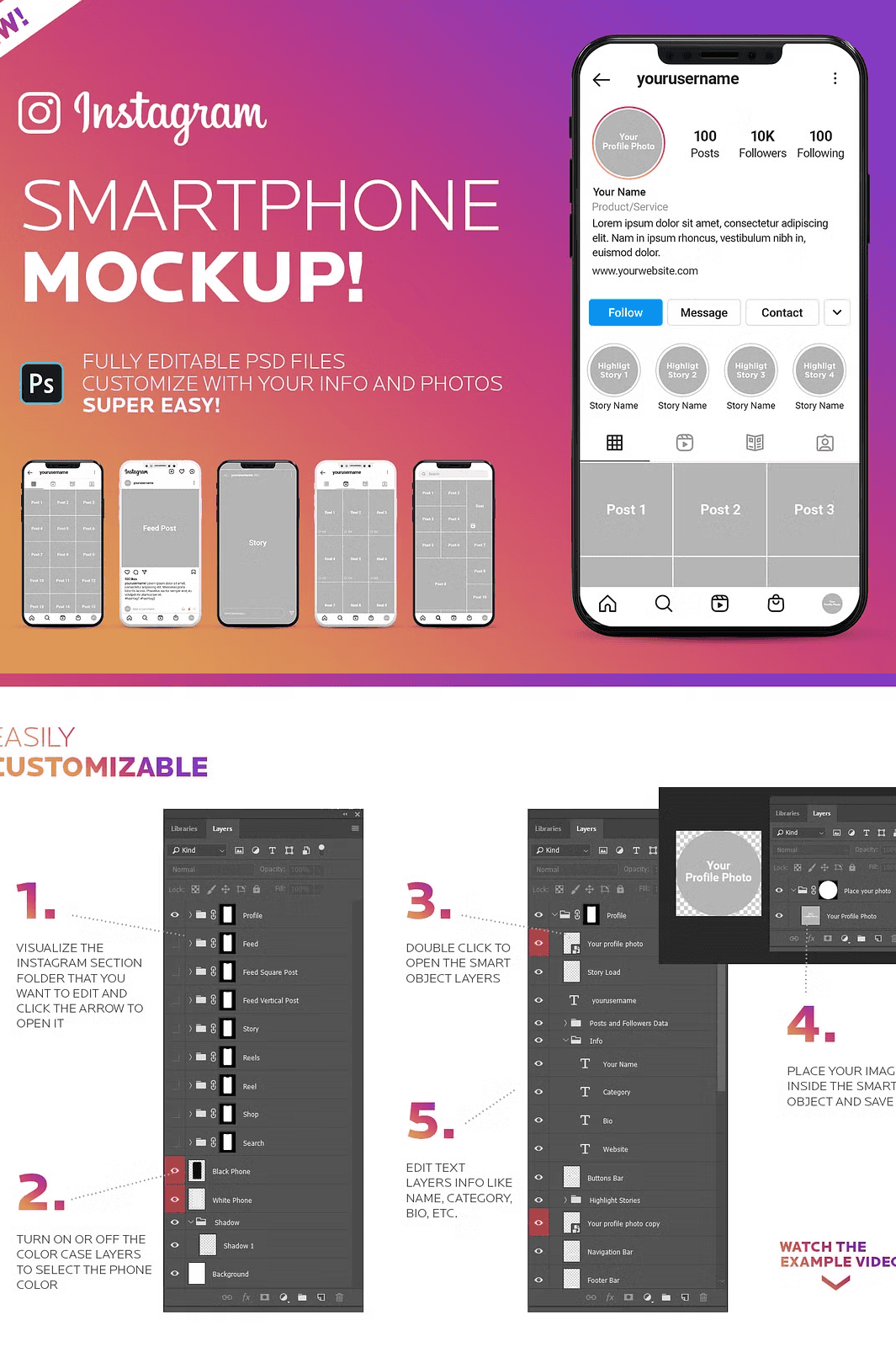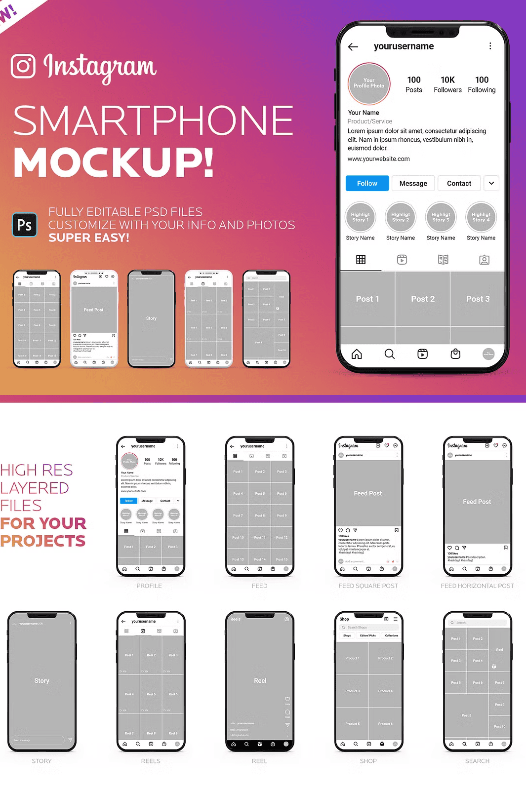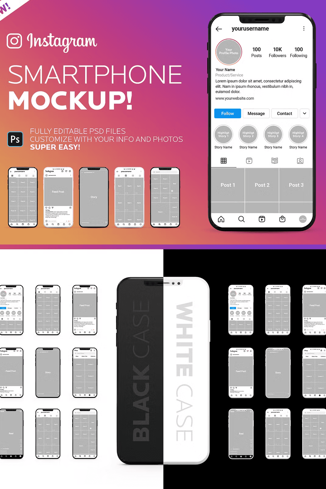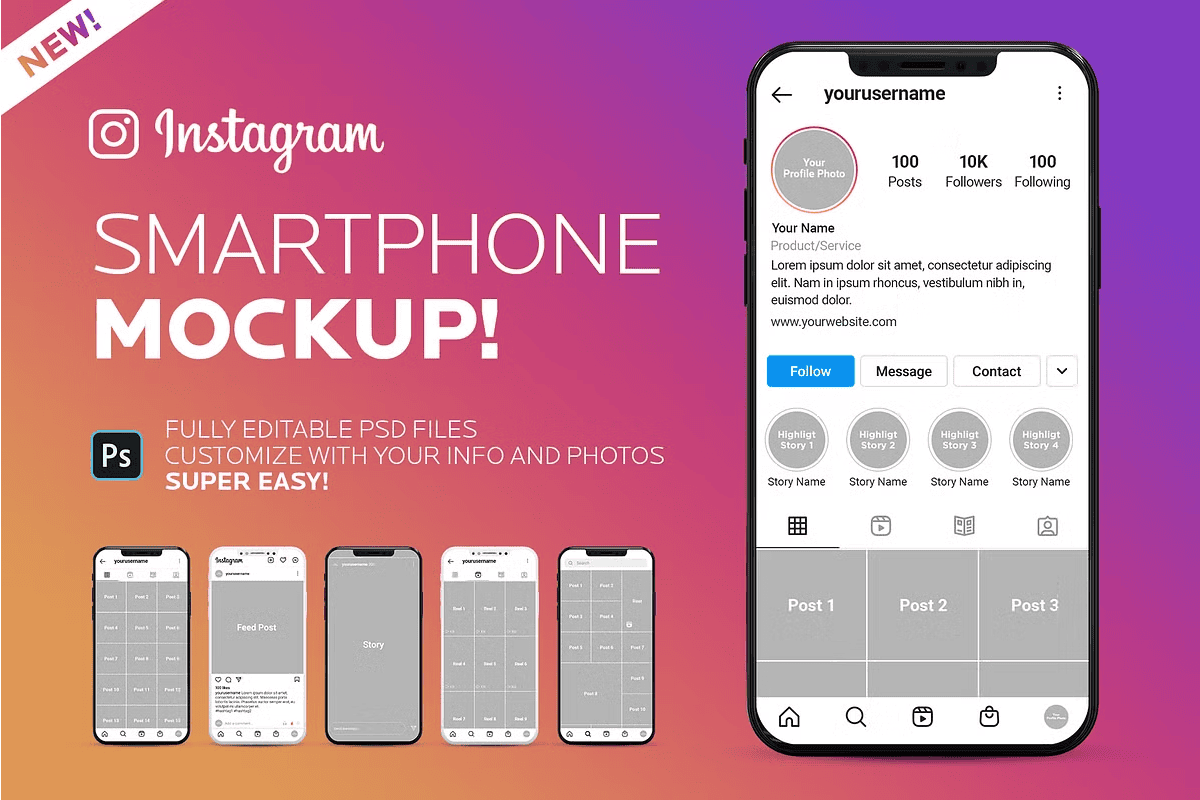 Stop using generic, low-quality mockups that undermine your credibility. With this fully editable, high-resolution Instagram Smartphone Mockup PSD template, you’ll create persuasive, visually striking presentations that inspire trust and stand out in any room — digital or physical.