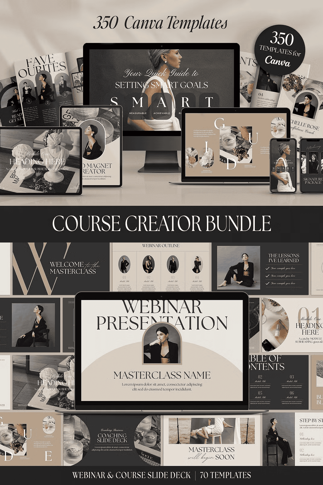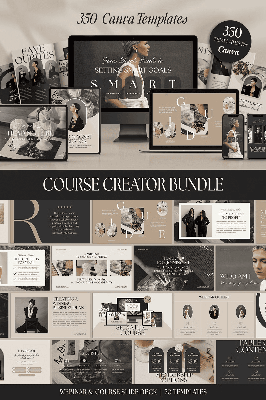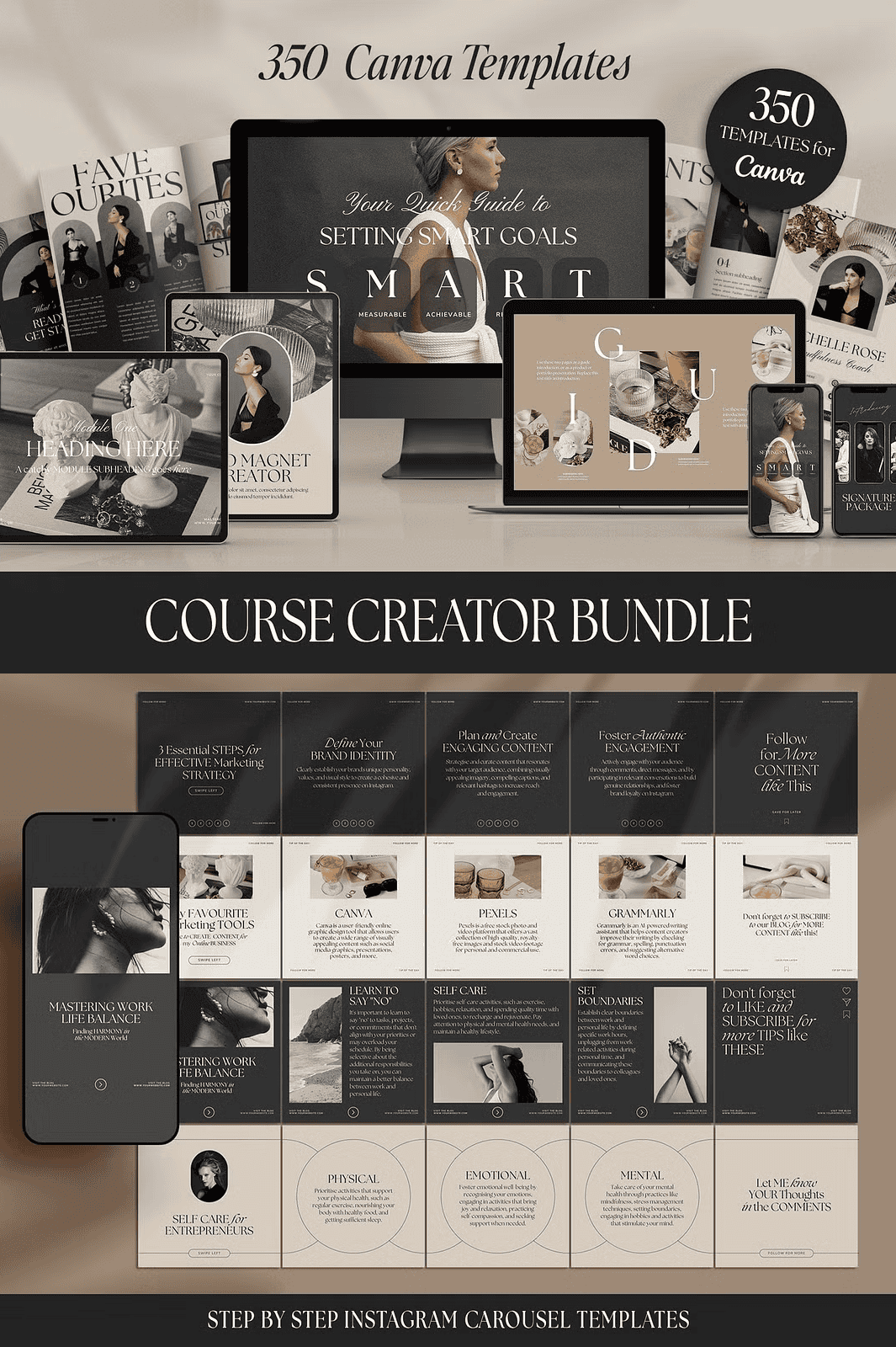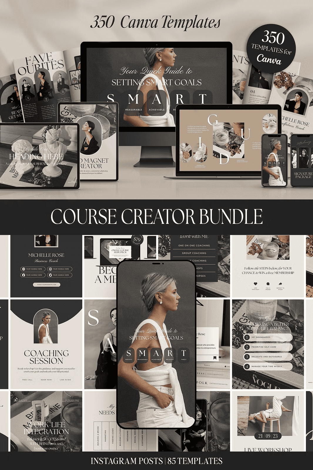 This all-in-one solution comes packed with 350+ professionally designed templates, meticulously structured for seamless editing within Canva. Whether you’re preparing your first course launch or scaling an established coaching brand, every piece is designed to elevate your authority and aesthetic.