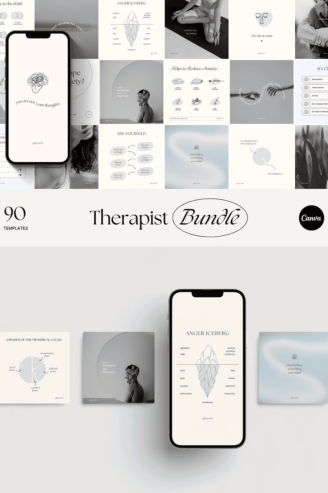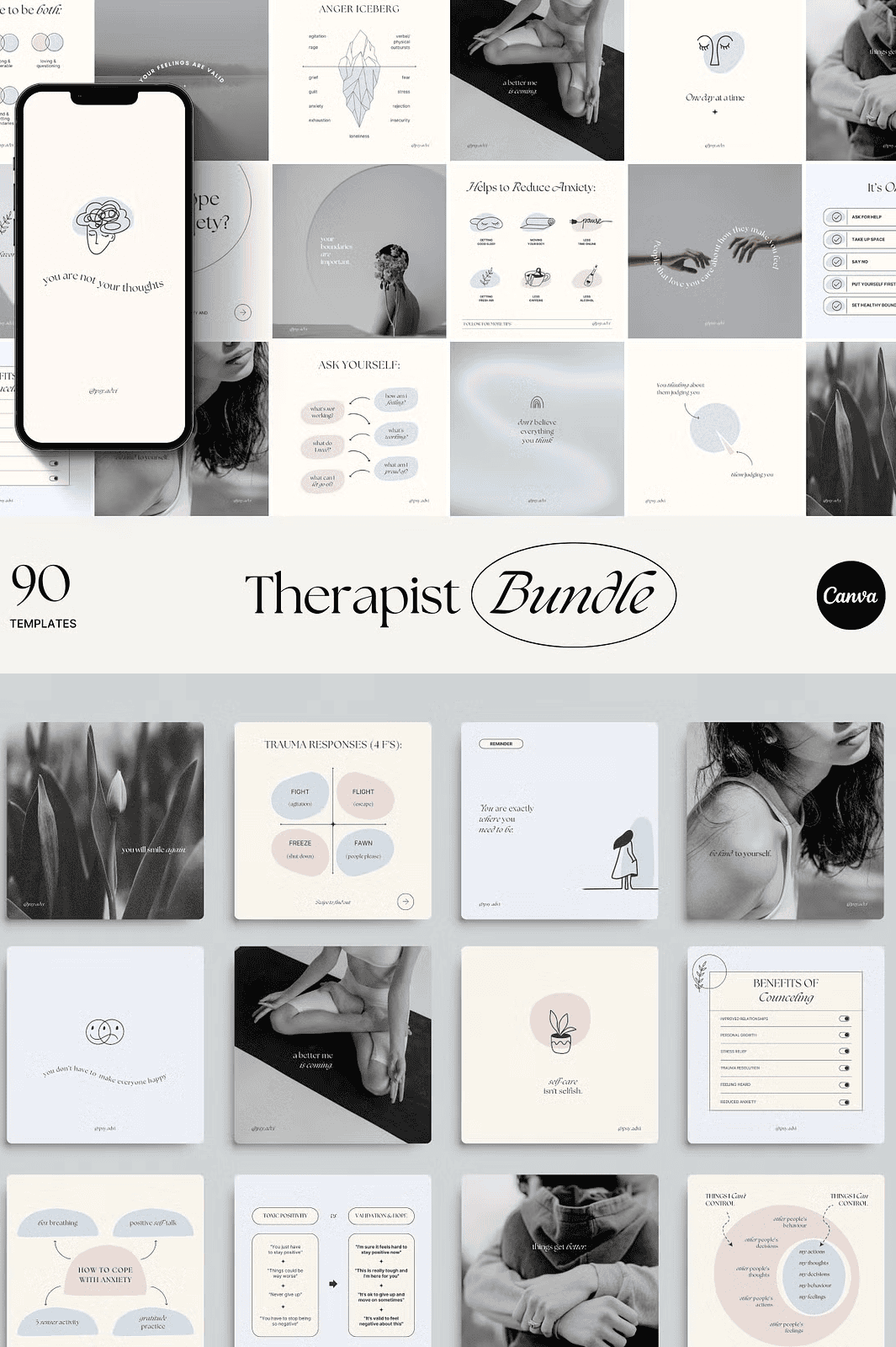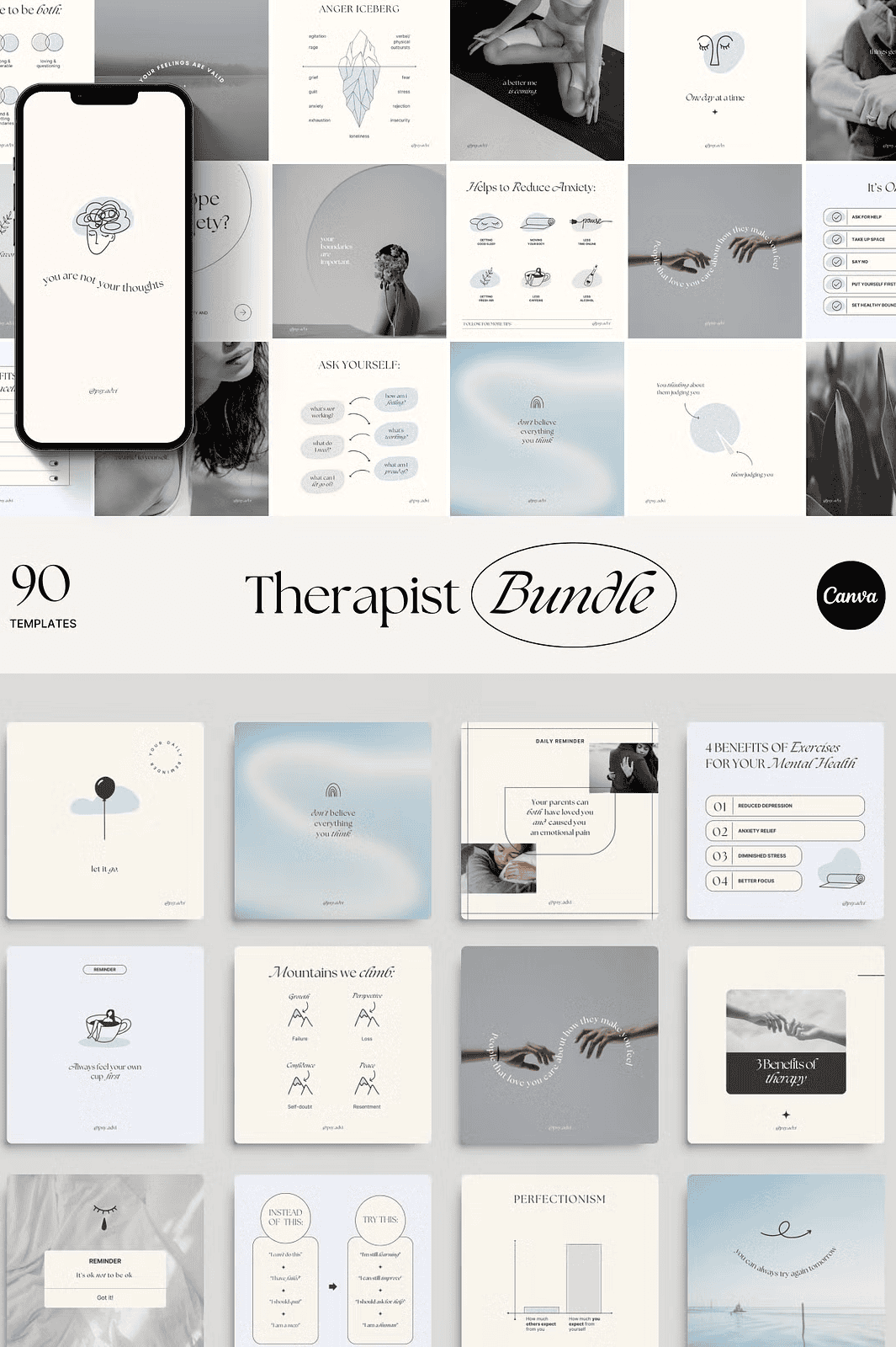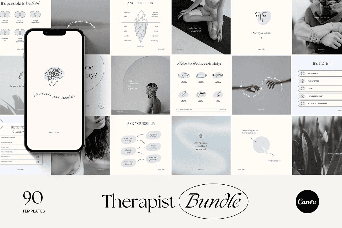 Elevate your mental health practice’s Instagram presence with the Mental Health Templates Canva Bundle — a powerful, customizable toolkit designed exclusively for therapists, counselors, psychologists, life coaches, and mental health advocates. Stop blending in with generic, overused templates. Our expertly crafted designs are hand-drawn, original, and built to reflect your authentic brand voice.