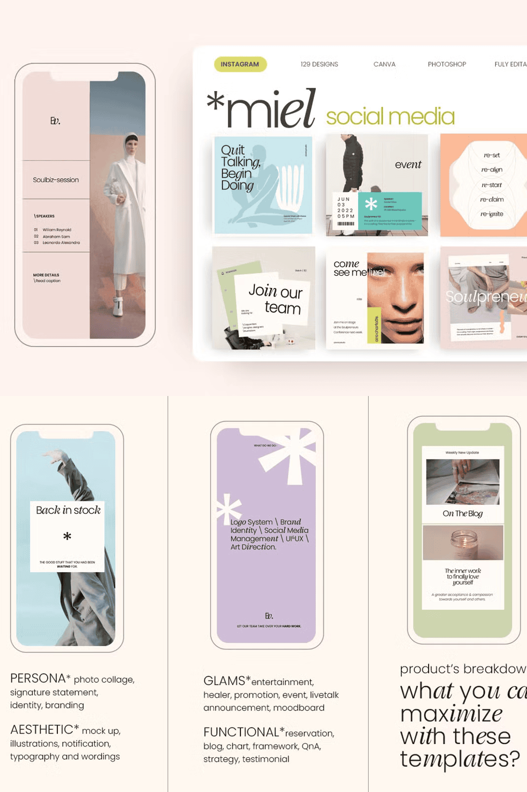 Stop posting generic content that fades into the background. MIEL Social Media Pack is engineered for creators, entrepreneurs, and brands who demand originality, consistency, and visual power. With **129 uniquely designed templates** across **three versatile sizes**, you can craft compelling posts and Stories that engage, inspire, and convert—without starting from scratch every time.