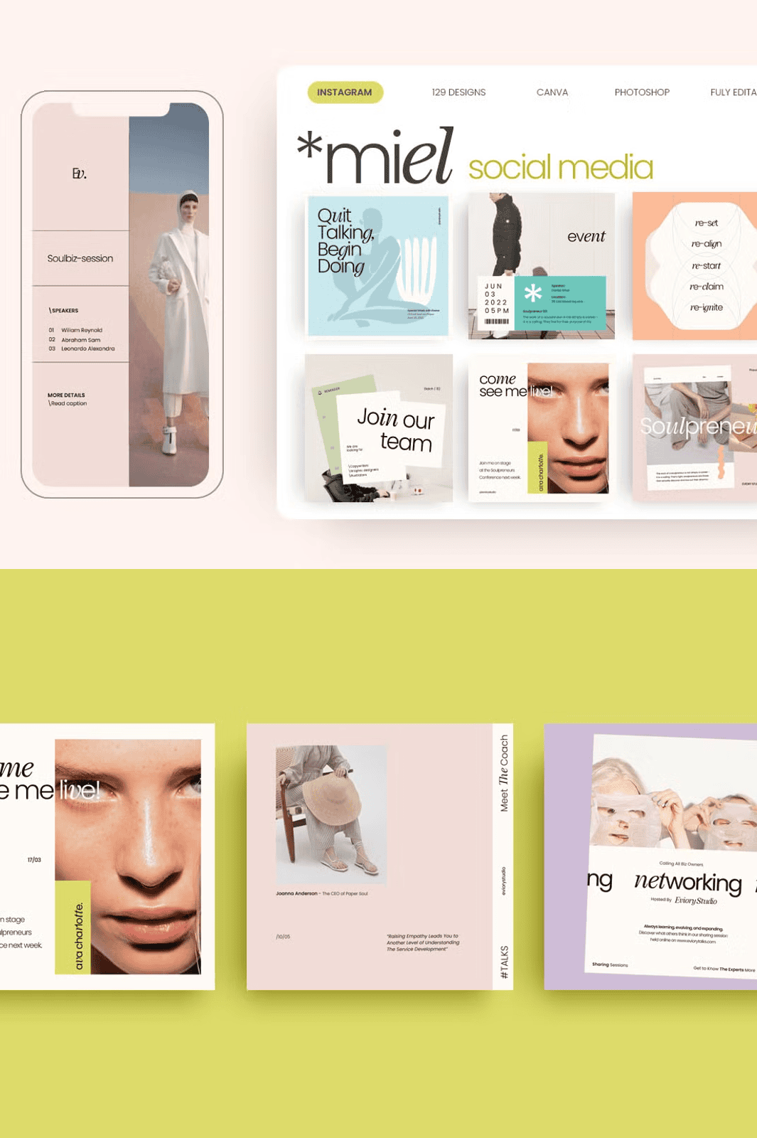– **Fully Editable in Canva & Photoshop** – Whether you’re a free Canva user or a Pro subscriber, or use Adobe Photoshop, MIEL adapts to your workflow. No design experience required.