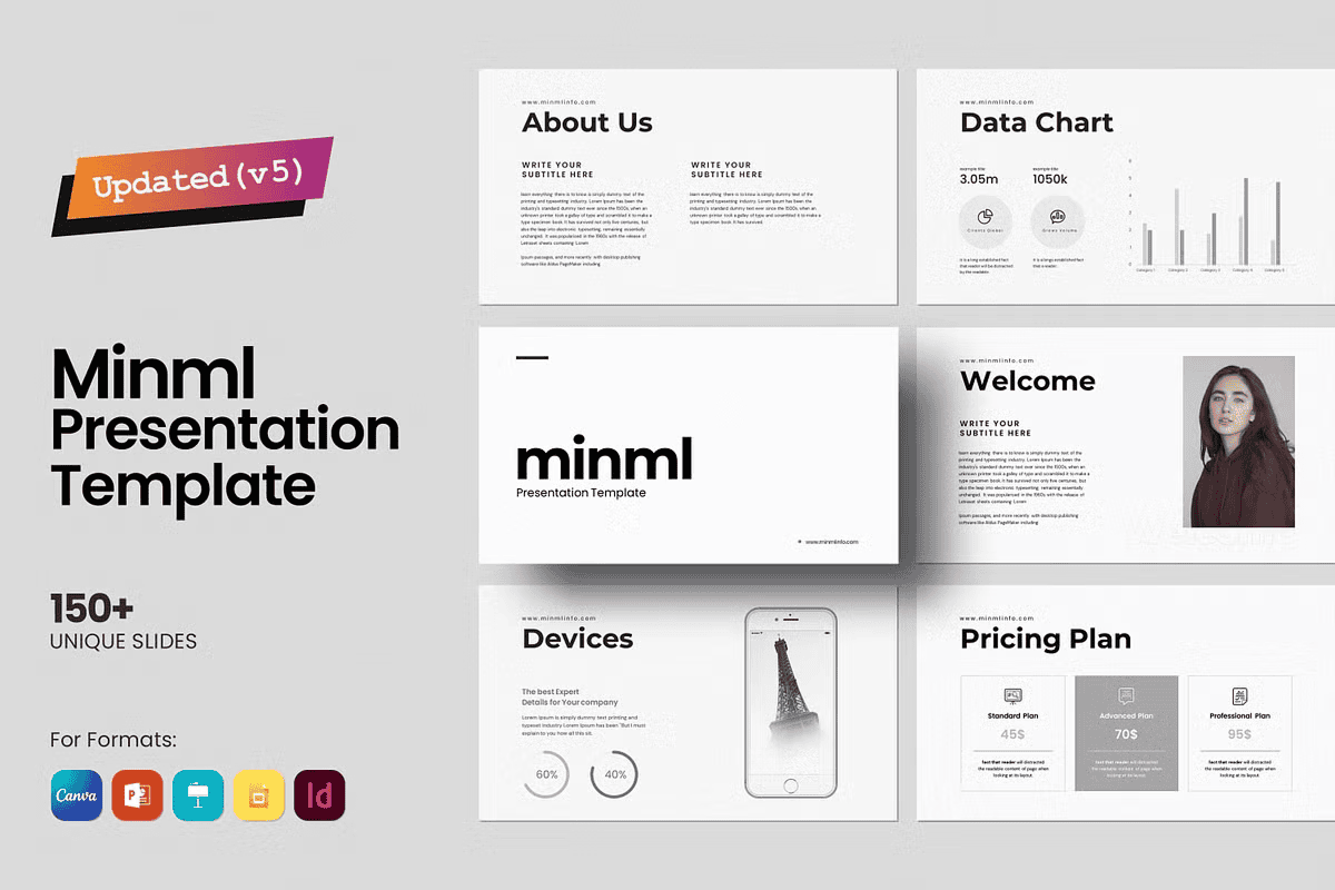 The Minml Presentation Template is ready for any professional setting: