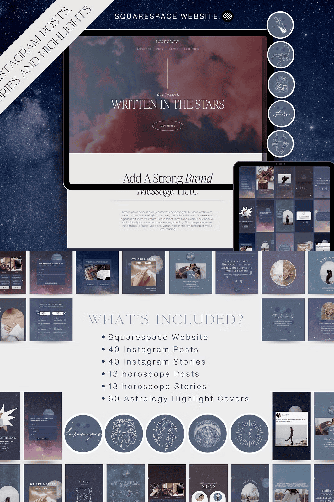 - 40 Astrology Instagram Stories: Dynamic, animated, and interactive templates to captivate your audience with horoscope drops, tips, and rituals.