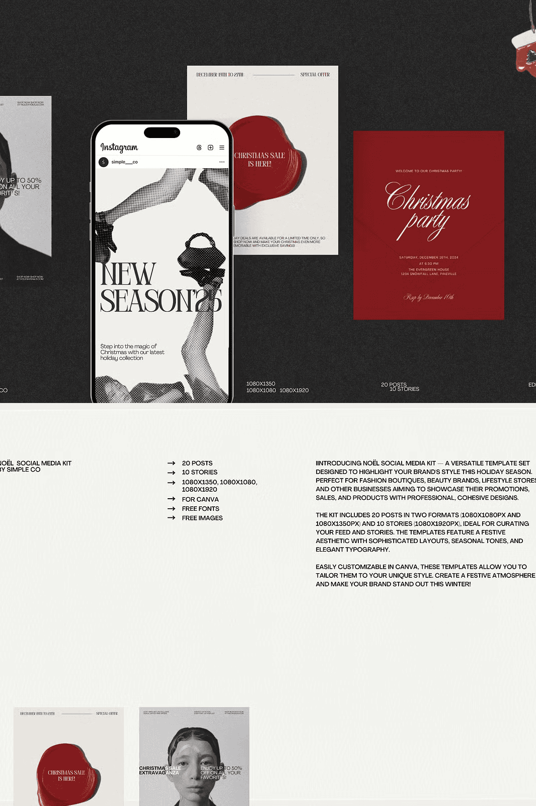 Capture the magic of the holidays with the **Noël Social Media Kit**, a professionally crafted collection of 30 high-impact social media templates designed to elevate your brand’s holiday presence. Whether you’re a fashion boutique, beauty brand, lifestyle store, or creative entrepreneur, this kit delivers polished, on-brand visuals that resonate with your audience and drive engagement during the busiest time of the year.