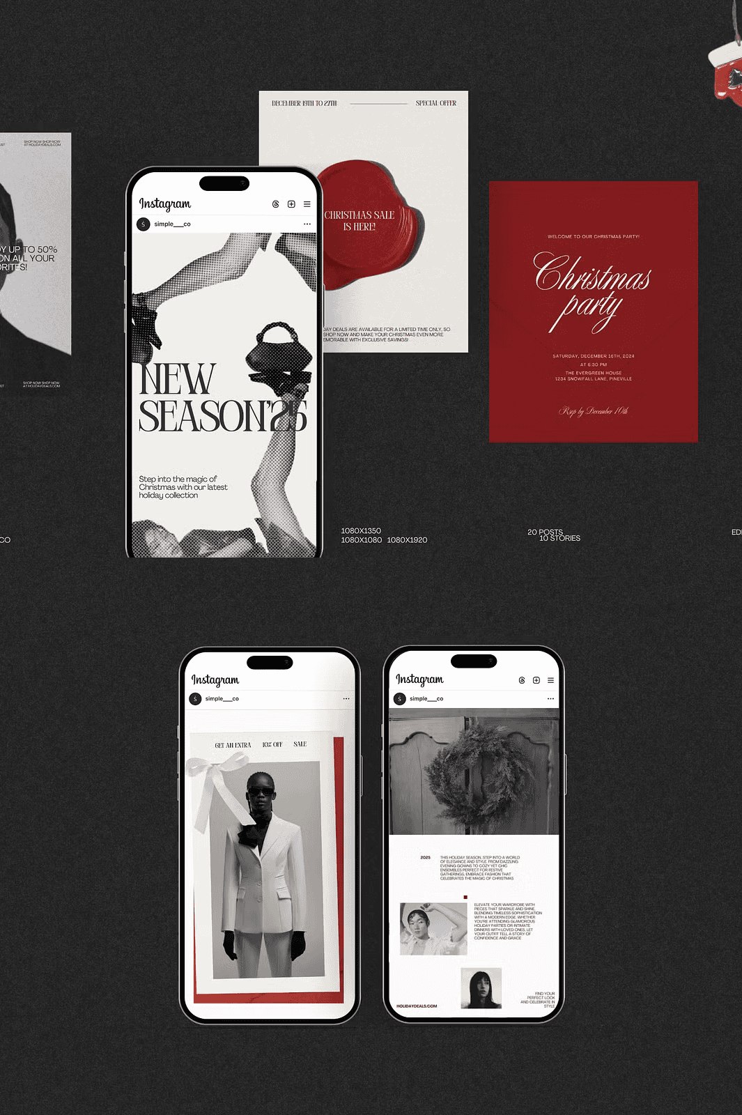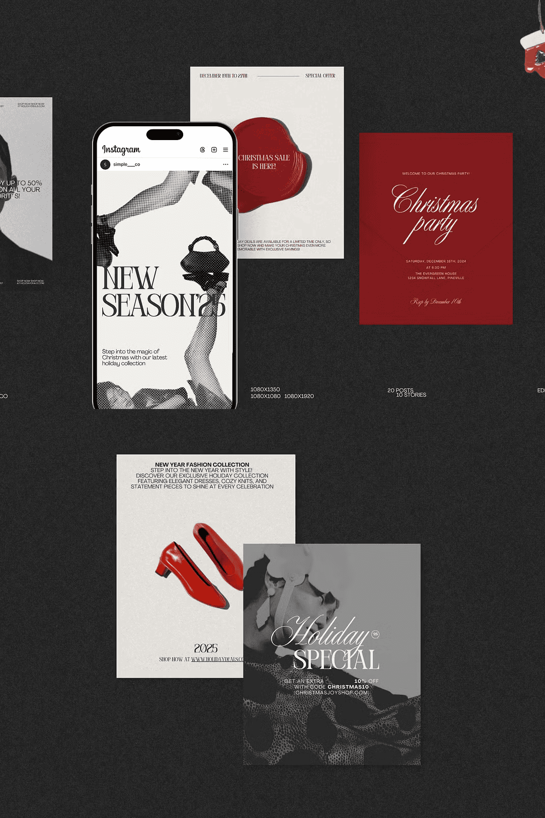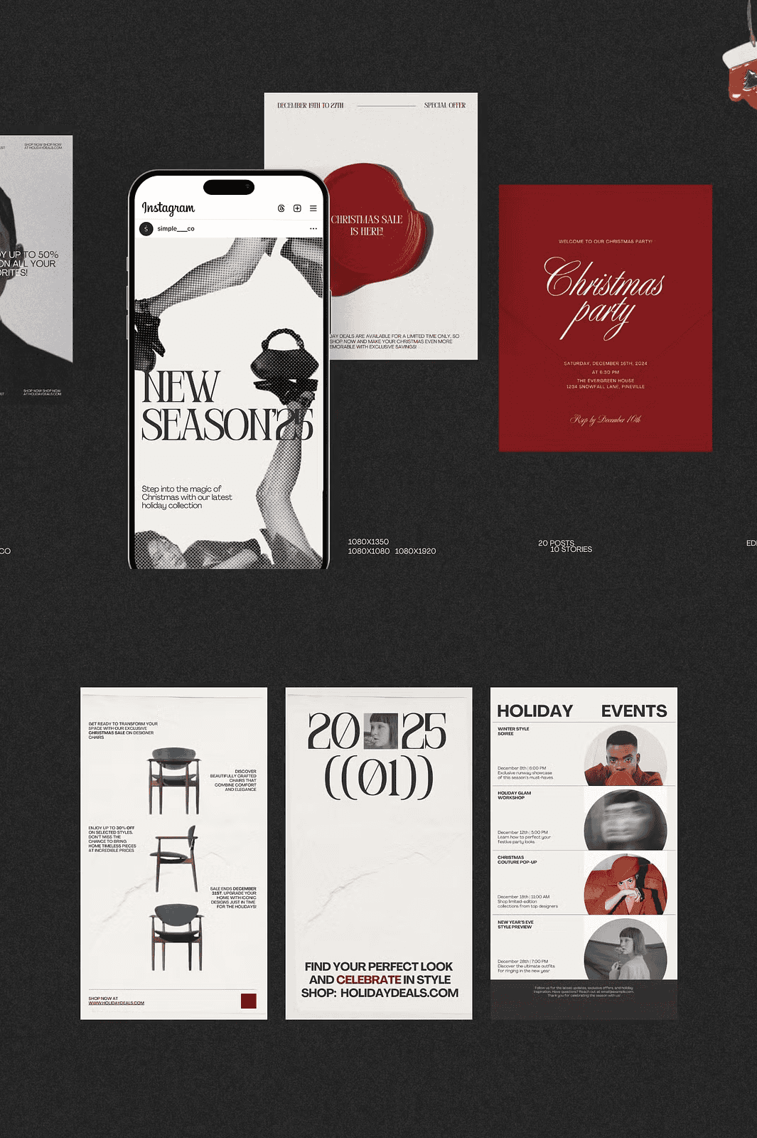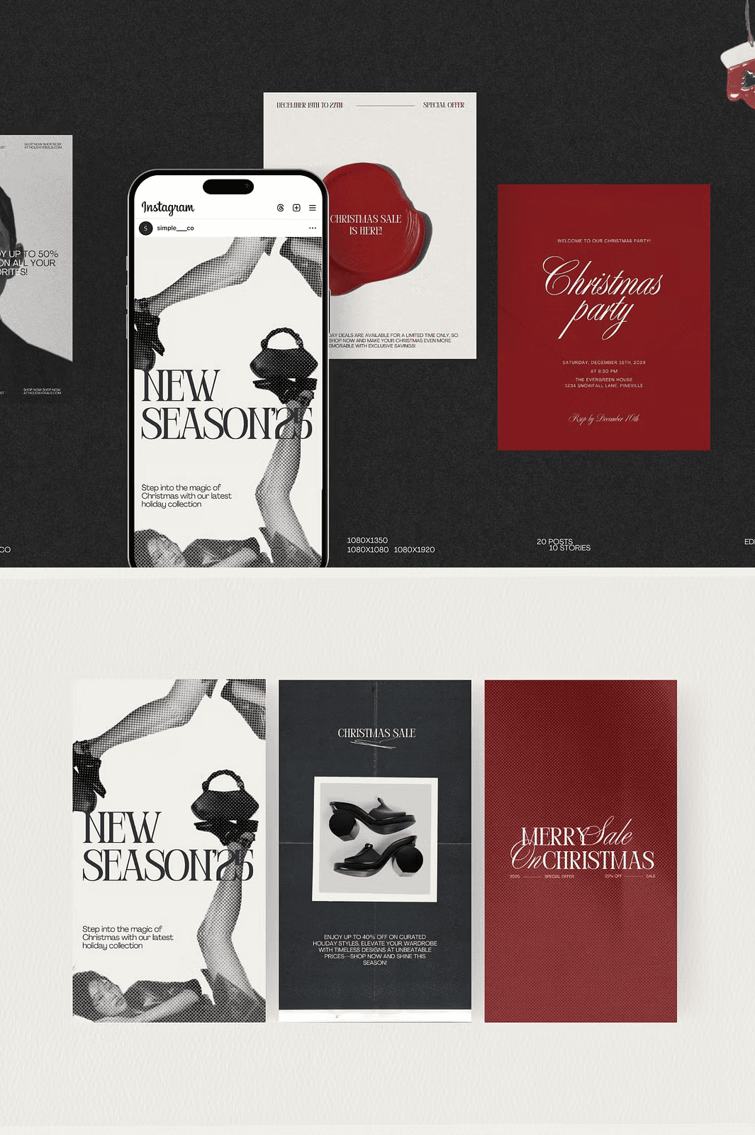 With a clean, minimal structure, the Noël kit empowers you to align your holiday content with your brand voice. Swap out seasonal graphics, insert your logo, update your promo codes, and mirror your brand’s tone—whether it’s elegant, playful, or luxurious. The templates are engineered to scale effortlessly, so your content remains professional, engaging, and on-theme.