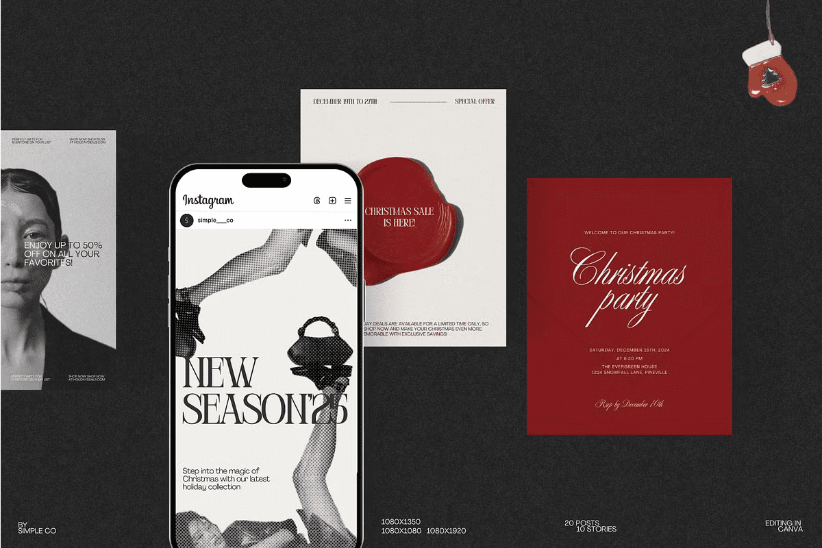 This is more than a template pack—it’s a strategic tool to establish brand cohesion, increase post frequency, and build anticipation throughout the holiday season. From gift guides to festive giveaways, every design helps you communicate value and excitement with confidence.