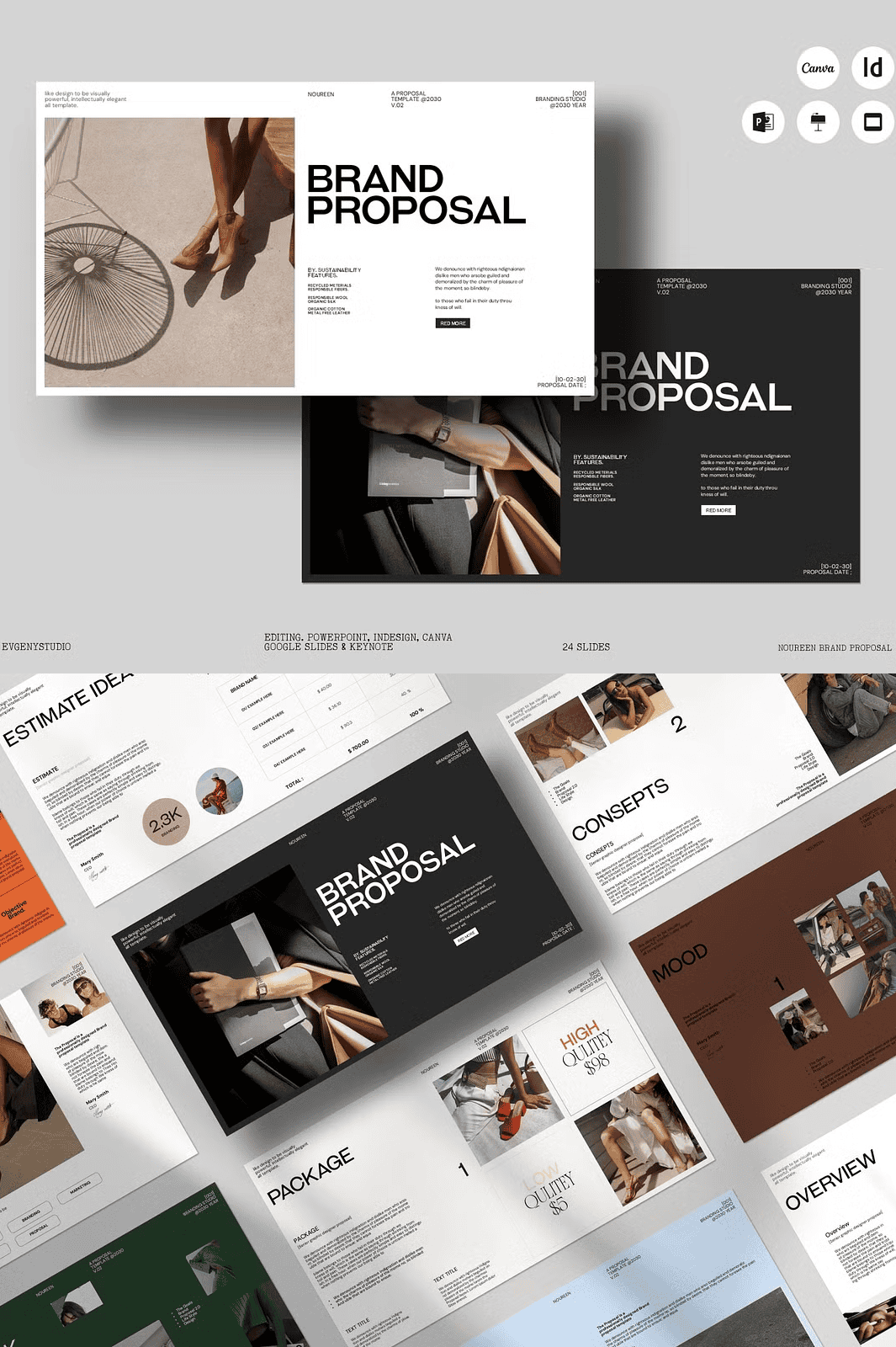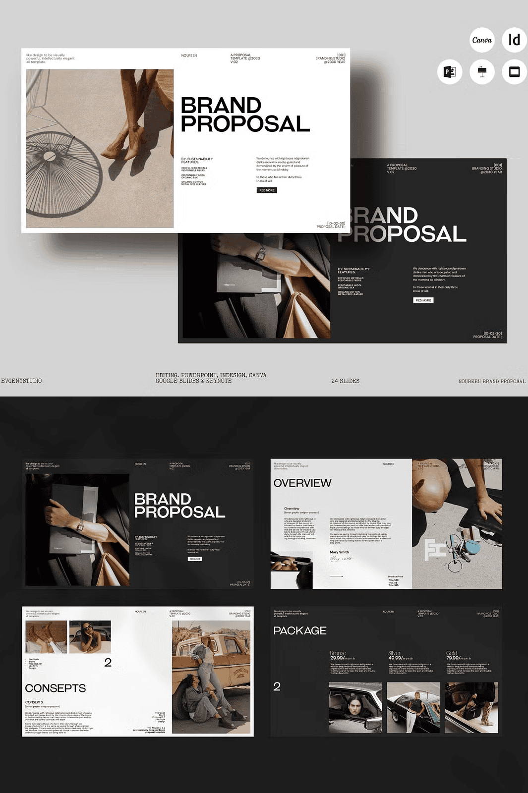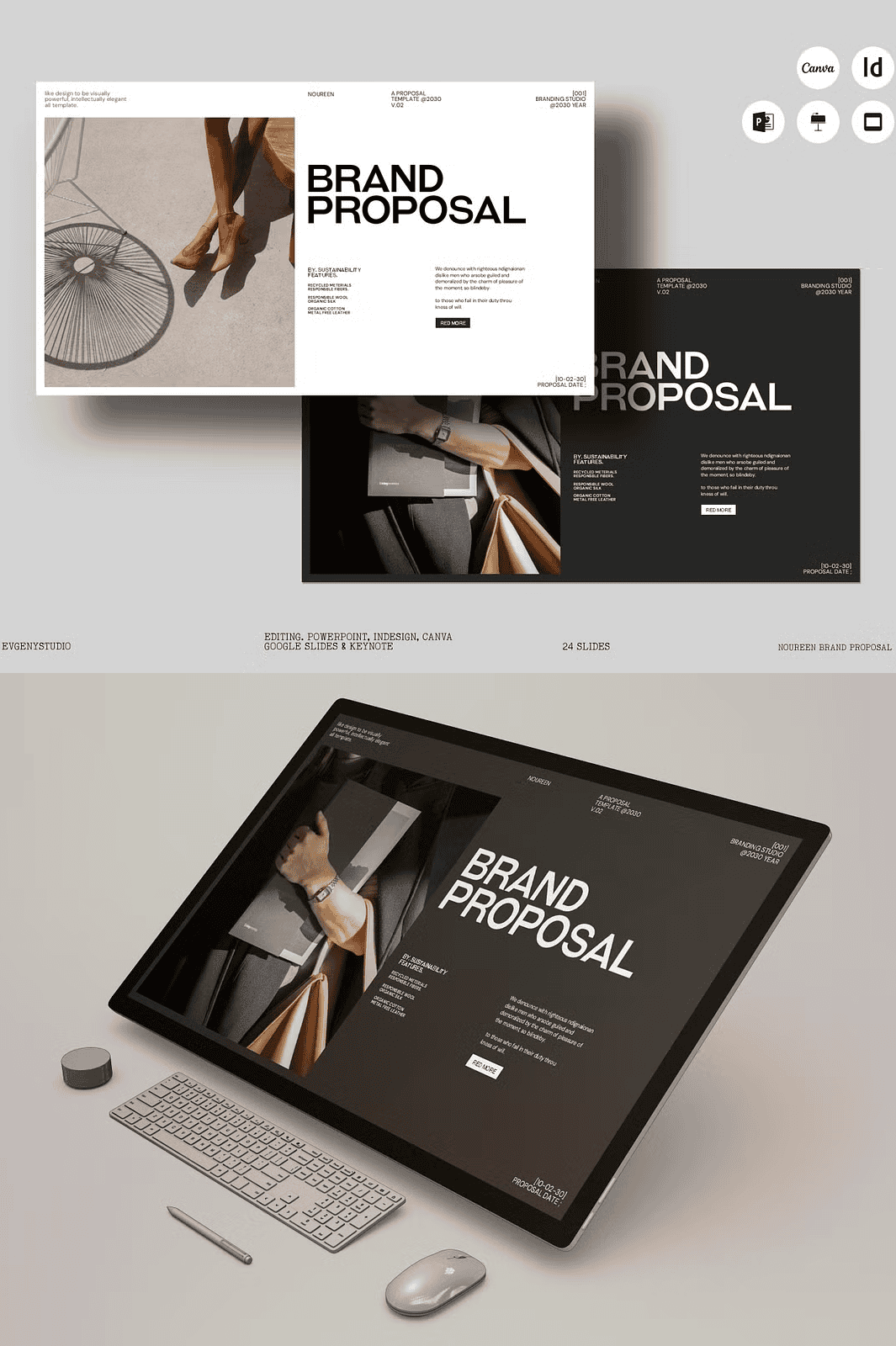 • Multi-Platform Compatibility: Use seamlessly across Microsoft PowerPoint (.pptx), Apple Keynote (.key), Google Slides (web-based edit), InDesign (.indd + .idml), and Canva (editable template). No more format limits—work in the tools you love.