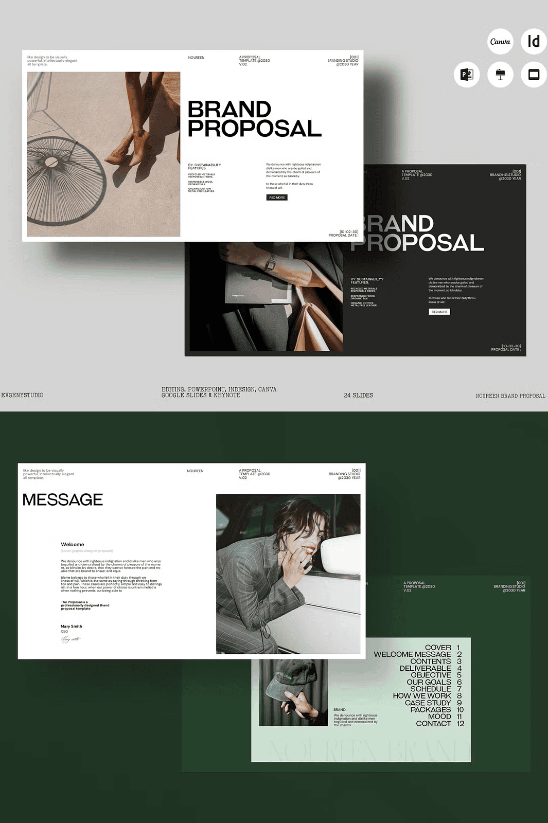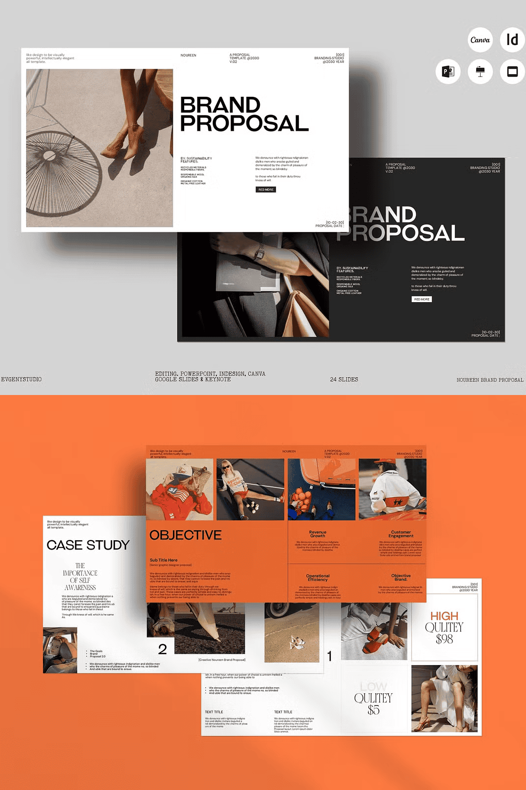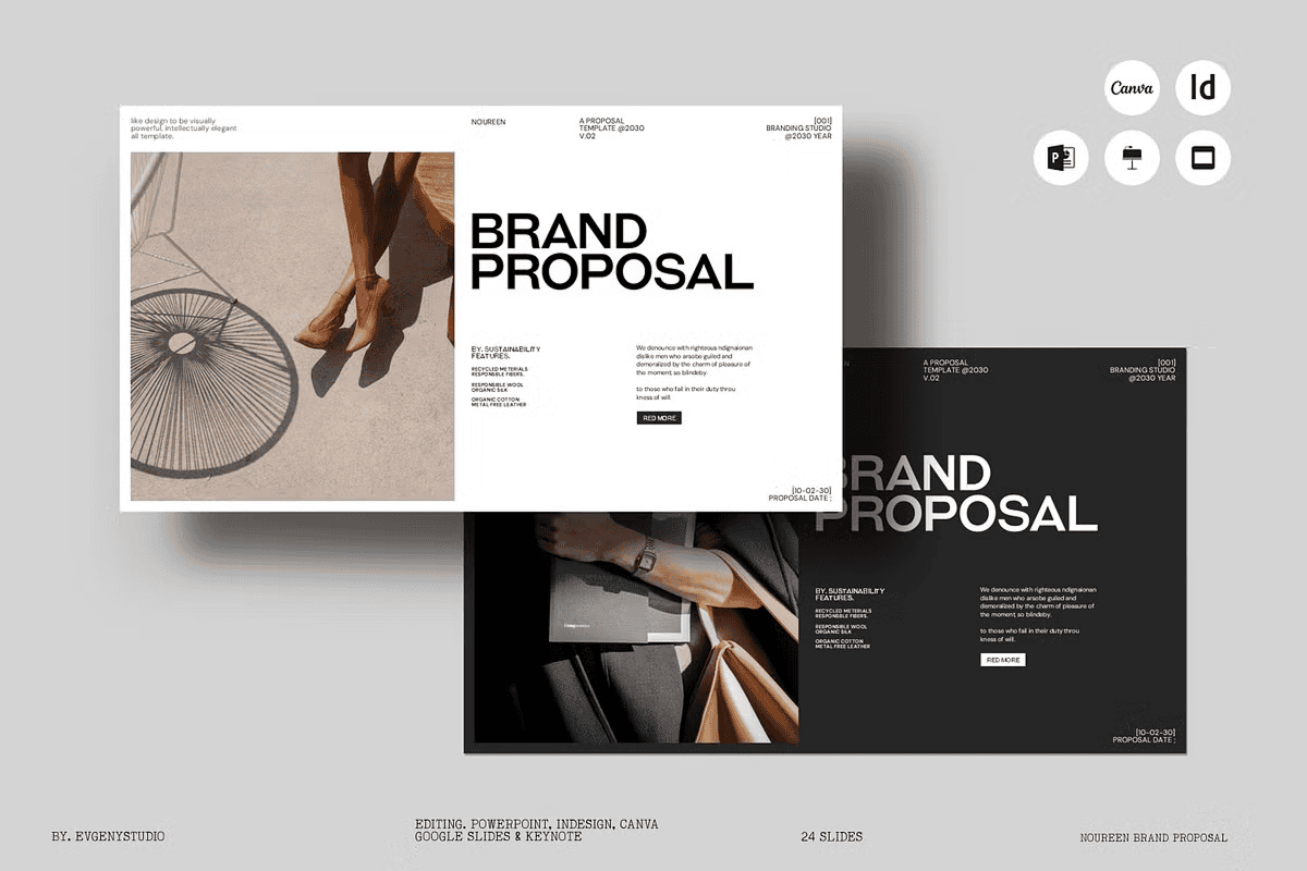 • Multi-Platform Compatibility: Use seamlessly across Microsoft PowerPoint (.pptx), Apple Keynote (.key), Google Slides (web-based edit), InDesign (.indd + .idml), and Canva (editable template). No more format limits—work in the tools you love.