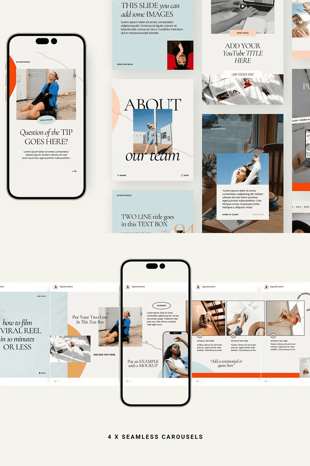 - 4 Seamless Carousels (1080 x 1350 px) – Crafted for smooth scrolling. Each carousel transitions effortlessly, keeping your audience engaged from slide one to the final reveal.