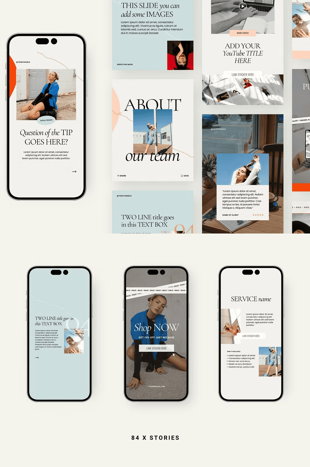 - 84 Instagram & Facebook Story Templates (1080 x 1920 px) – Designed for vertical viewing, these templates enhance visibility, drive engagement, and are perfect for daily updates, polls, and countdowns.