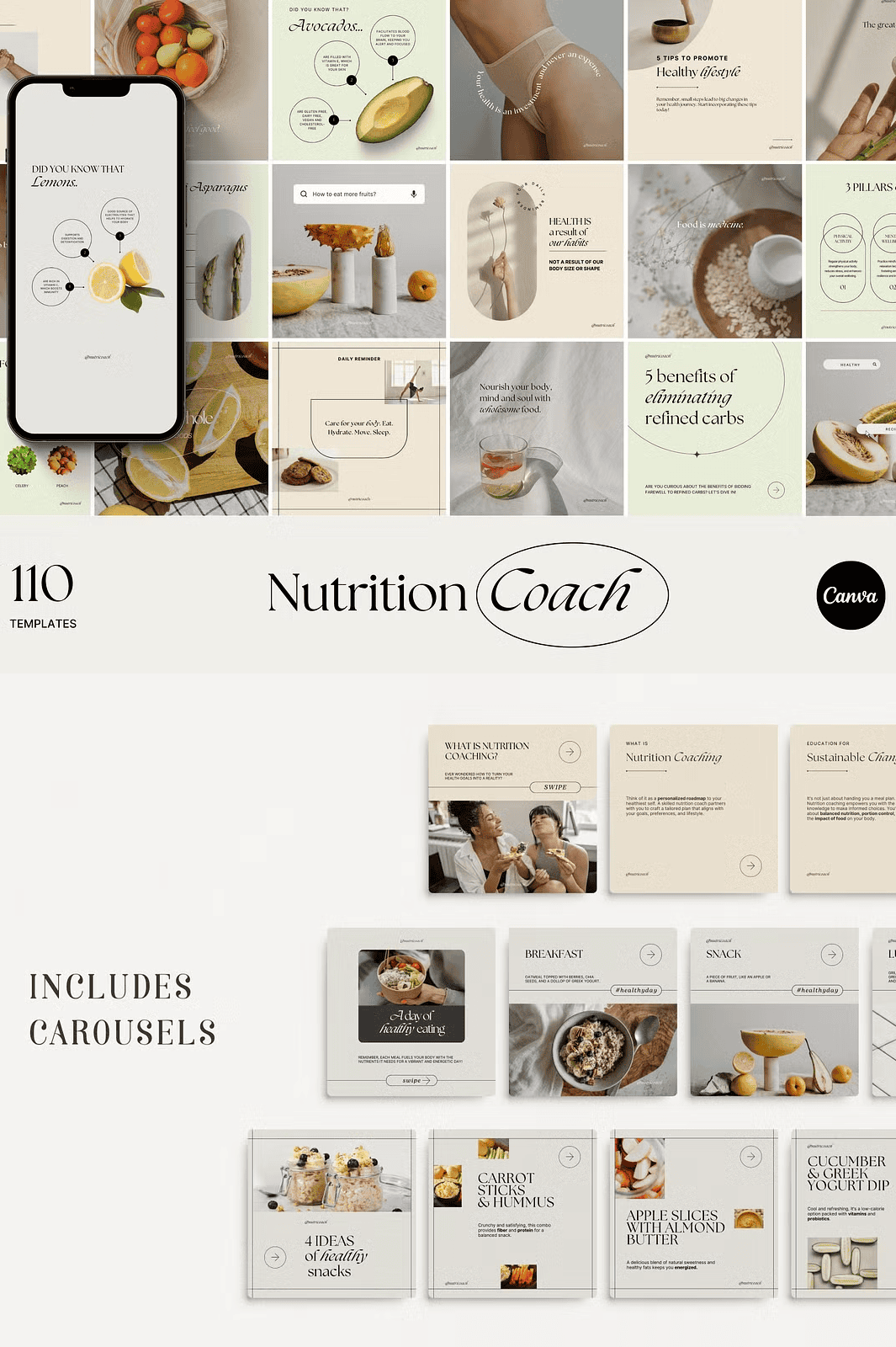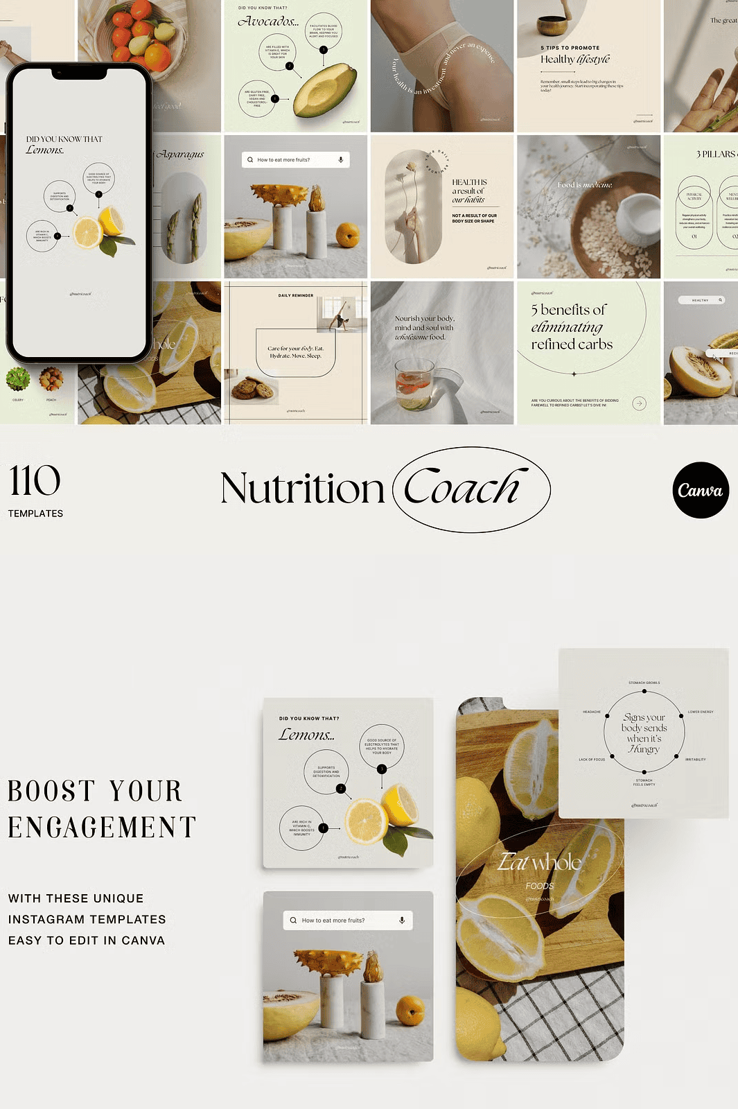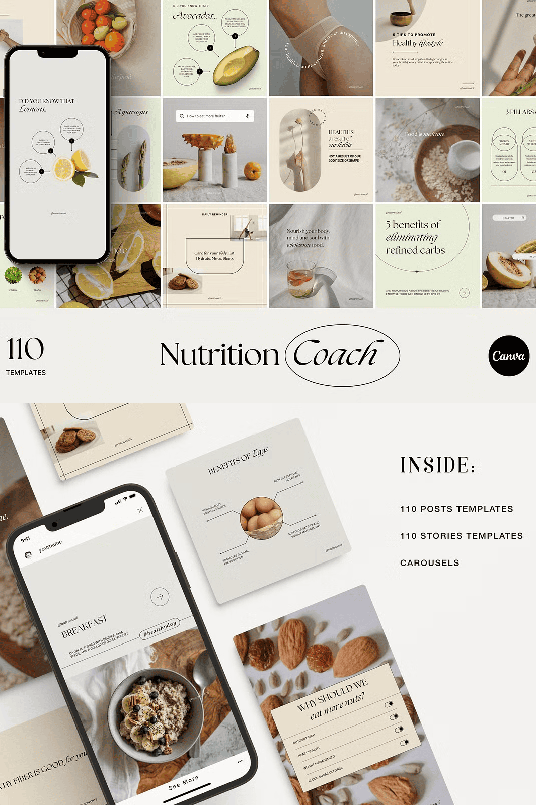 Stop struggling with inconsistent or amateur-looking content. The Nutrition Coach Instagram Templates bundle delivers a complete, professional-grade solution to elevate your digital brand. With 220 fully customizable Canva templates, you can create high-impact content across all Instagram formats—posts, stories, carousels, and reels—without needing design experience. Whether you’re a certified nutrition coach, holistic dietitian, fitness expert, or wellness guide, this toolkit empowers you to build authority, attract clients, and grow your influence with ease.
