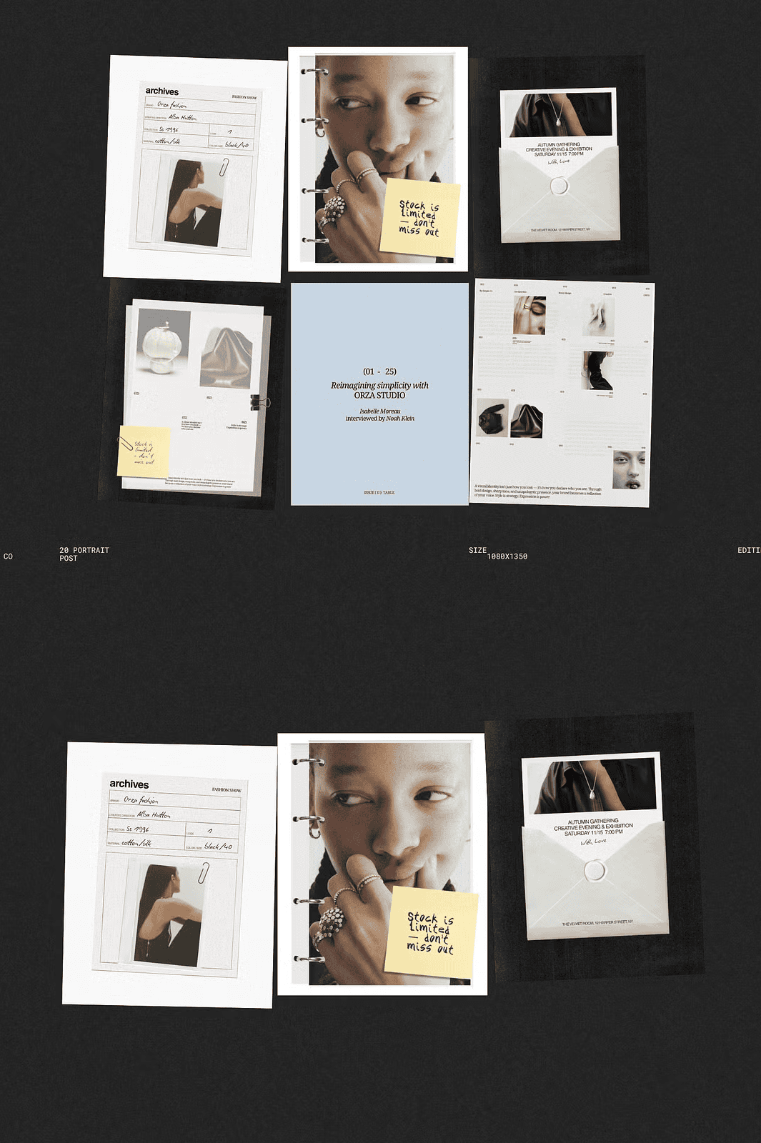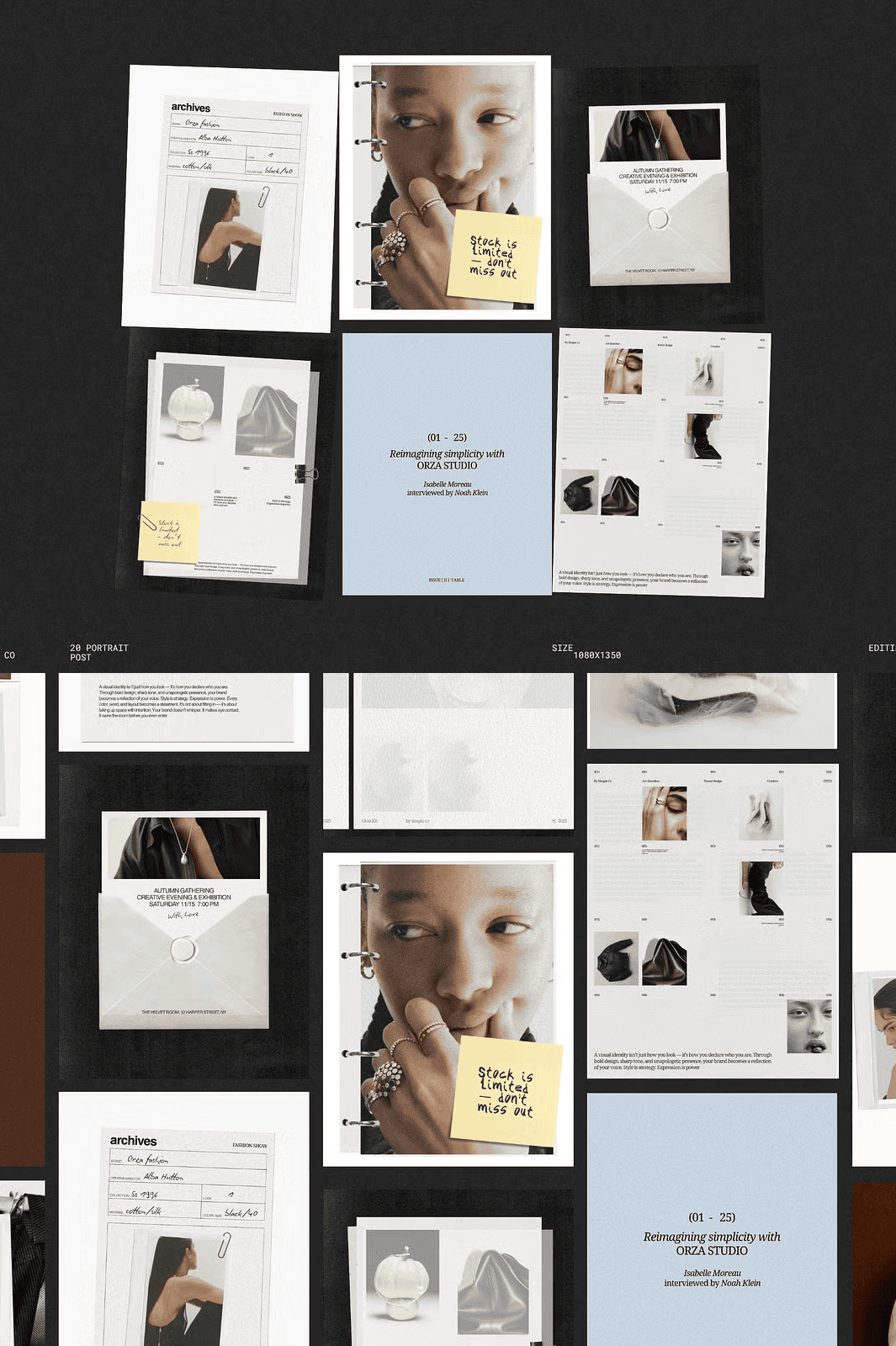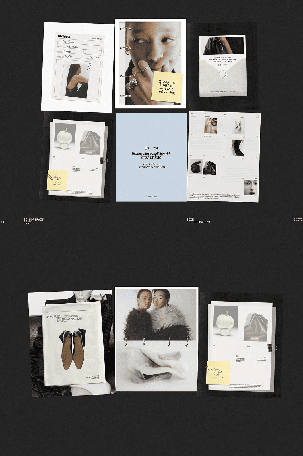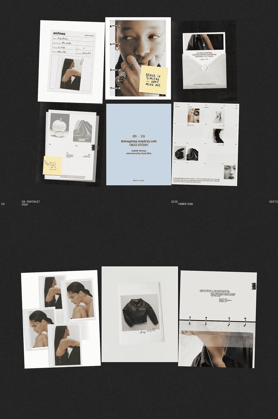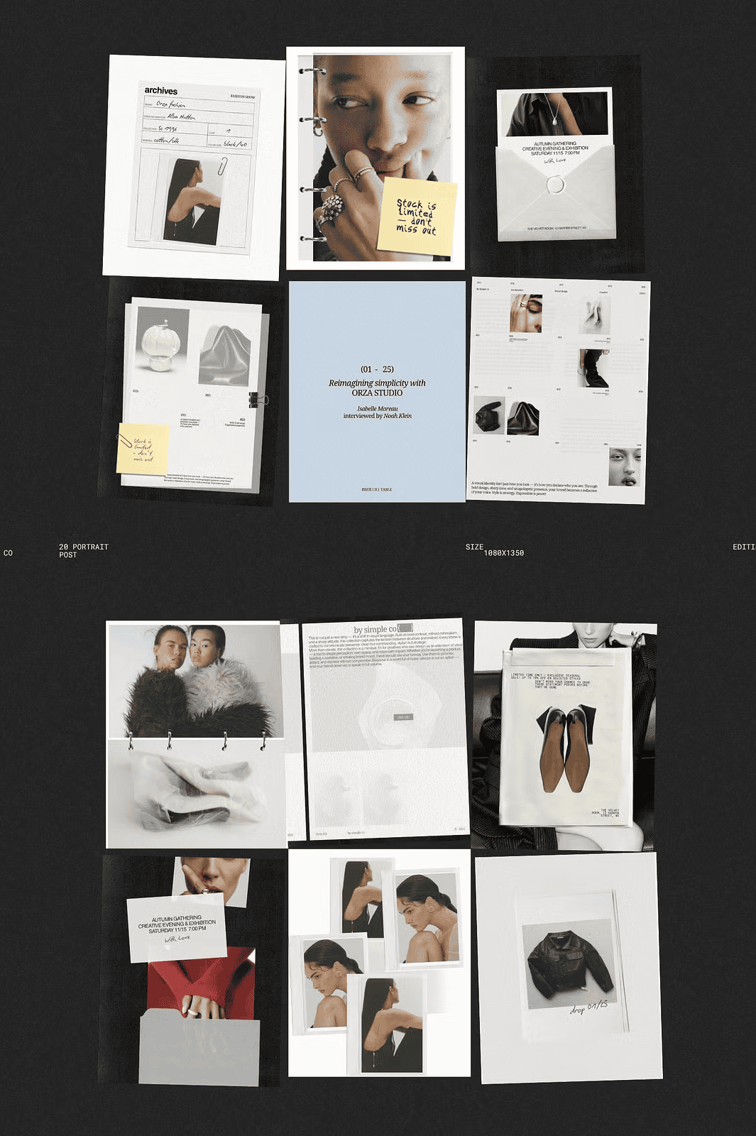 Stop blending in. Start defining the conversation. ORZA Social Media Kit 02 is engineered for brands and creatives who wield visual language as a weapon of distinction. This isn’t just a template pack—it’s a design manifesto. With 20 razor-sharp Instagram post templates (1080x1350px), ORZA delivers a raw, editorial aesthetic that commands attention and projects a fearless, contemporary identity. Whether you’re launching a new fashion line, promoting a lifestyle campaign, or building a brand with personality, ORZA gives you the visual arsenal to speak with power and purpose.