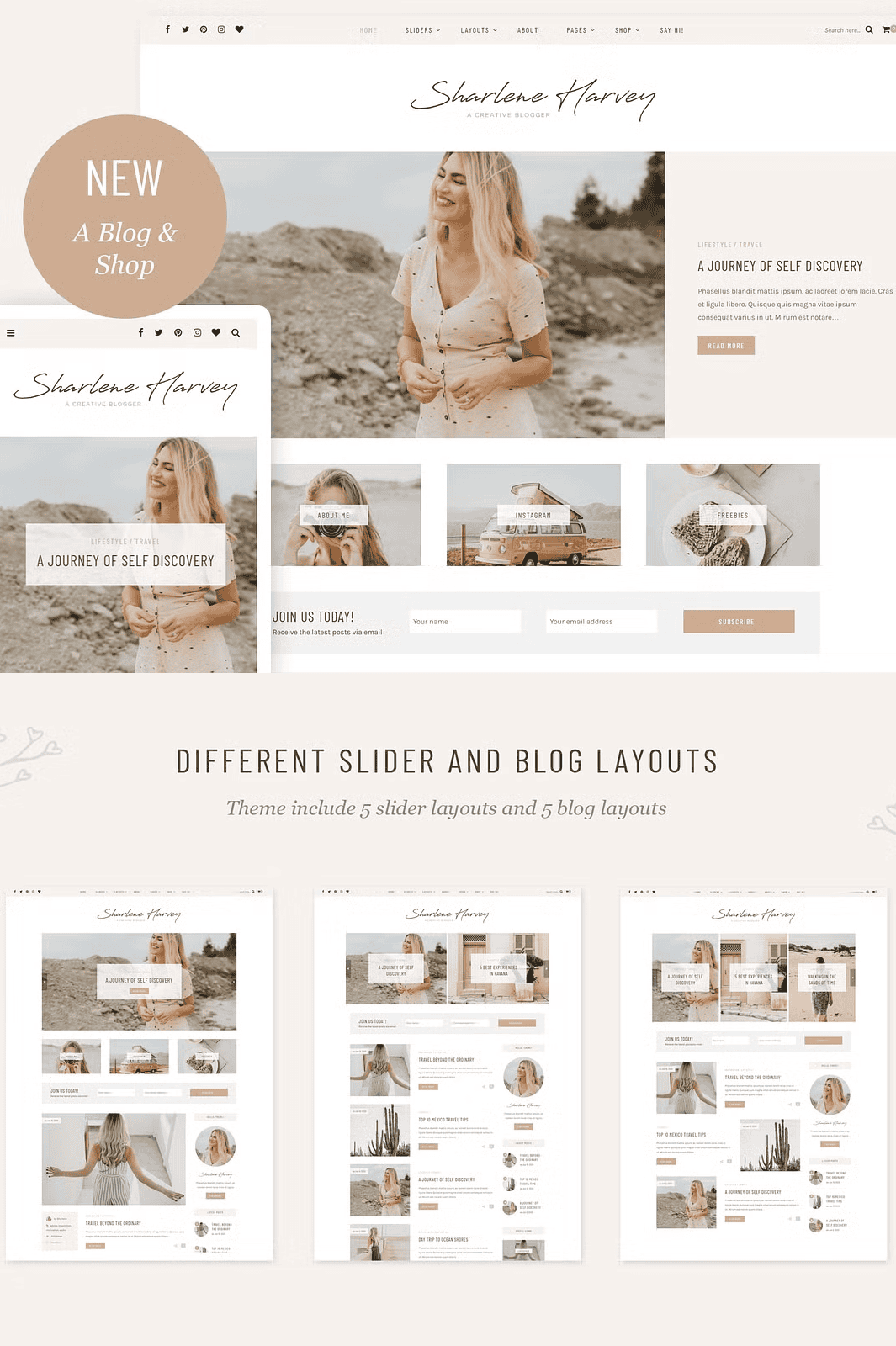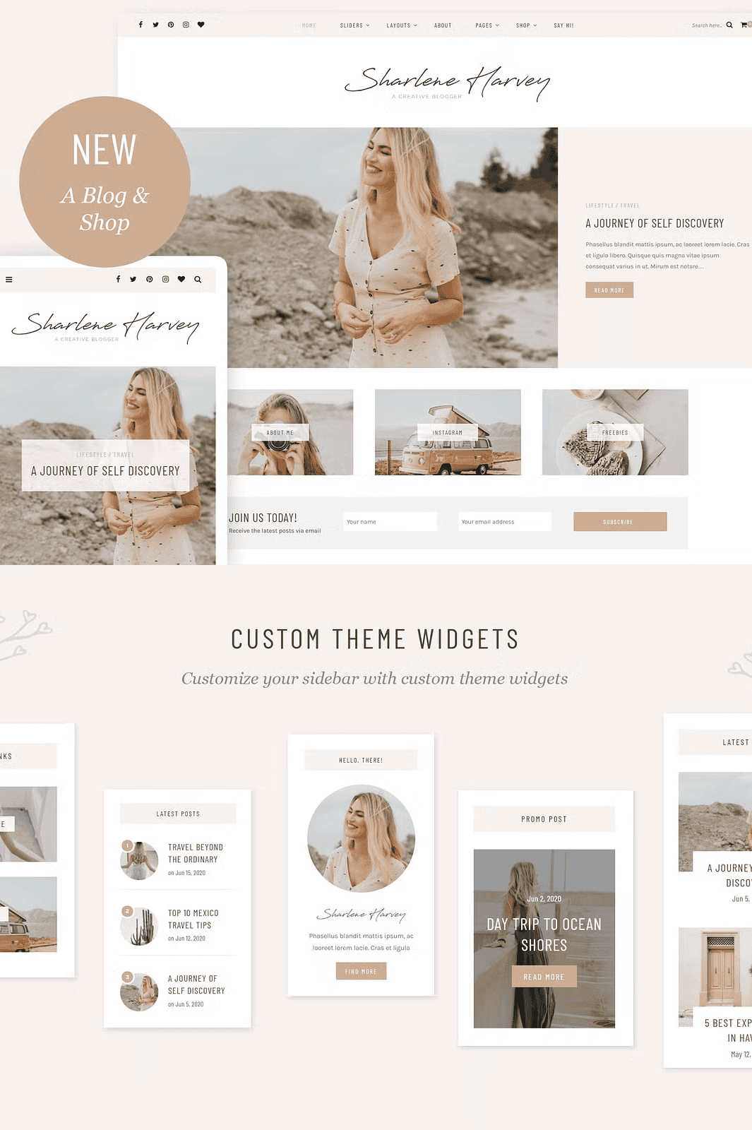 Sharlene gives you total control over how your blog looks and functions, all through an easy-to-use interface. Choose from a wide array of layout options designed for maximum engagement: