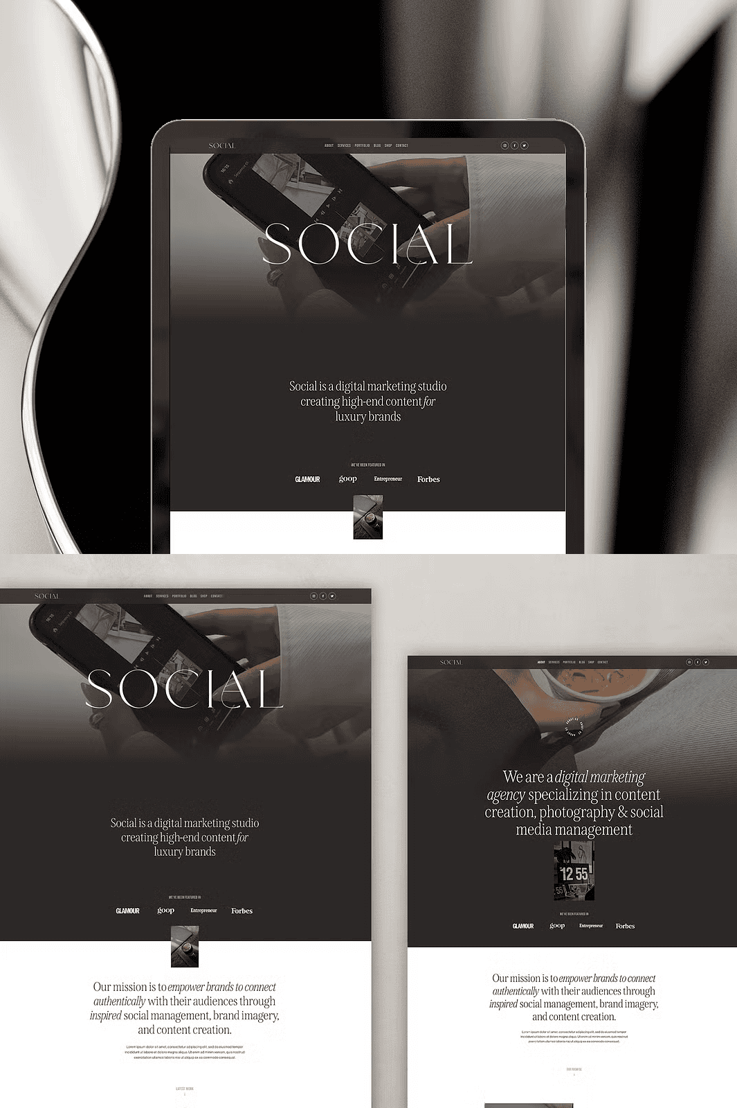 Stop blending in — stand out with Social, a premium Squarespace 7.1 website template built with the advanced Fluid Engine. Crafted for bold entrepreneurs, creative professionals, and service-based businesses, this template merges timeless elegance with cutting-edge design to deliver a stunning digital first impression. Whether you’re a marketing strategist, photographer, designer, or coach, Social empowers you to showcase your expertise with confidence and visual sophistication.