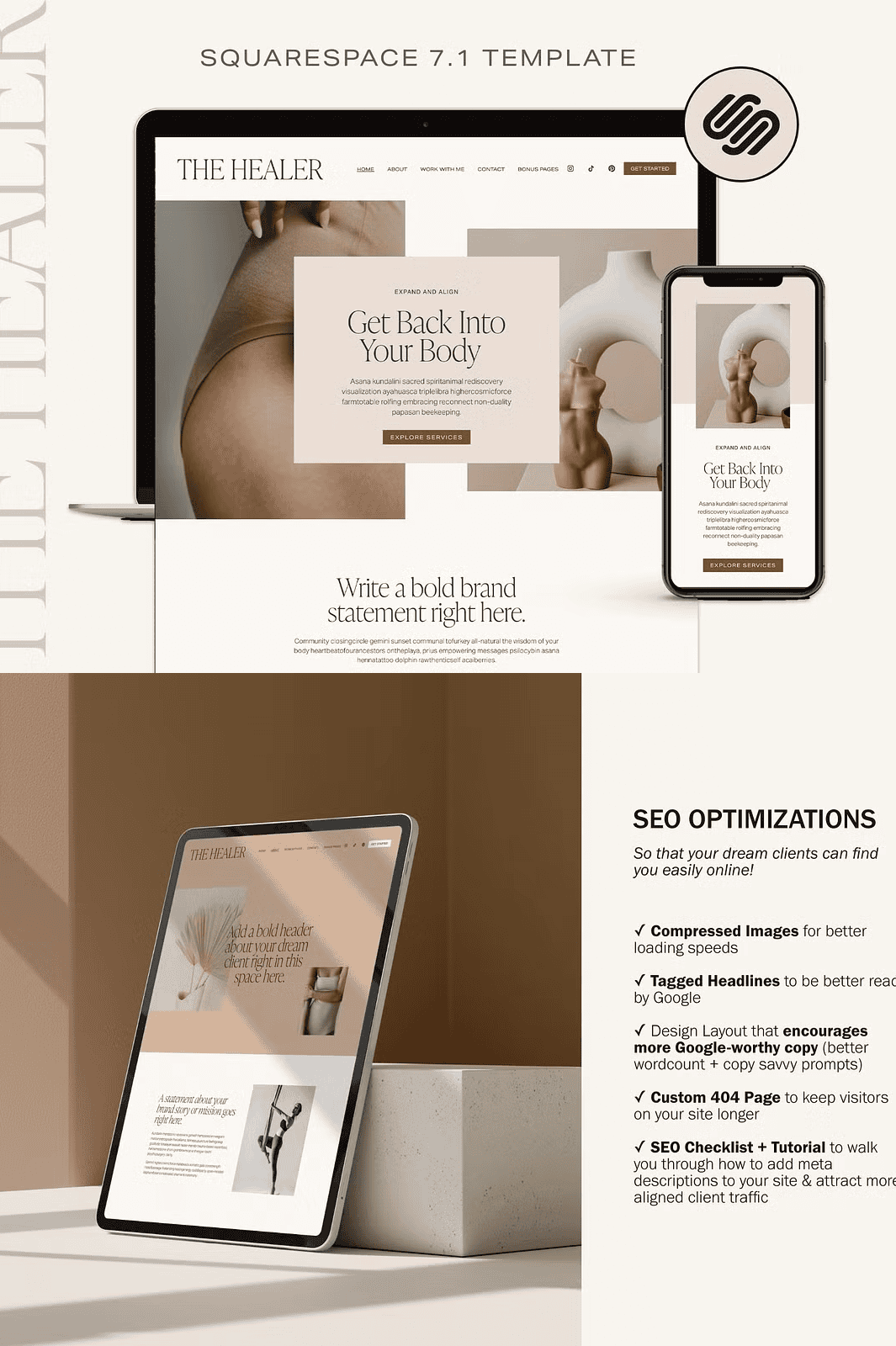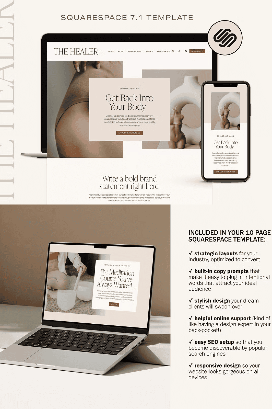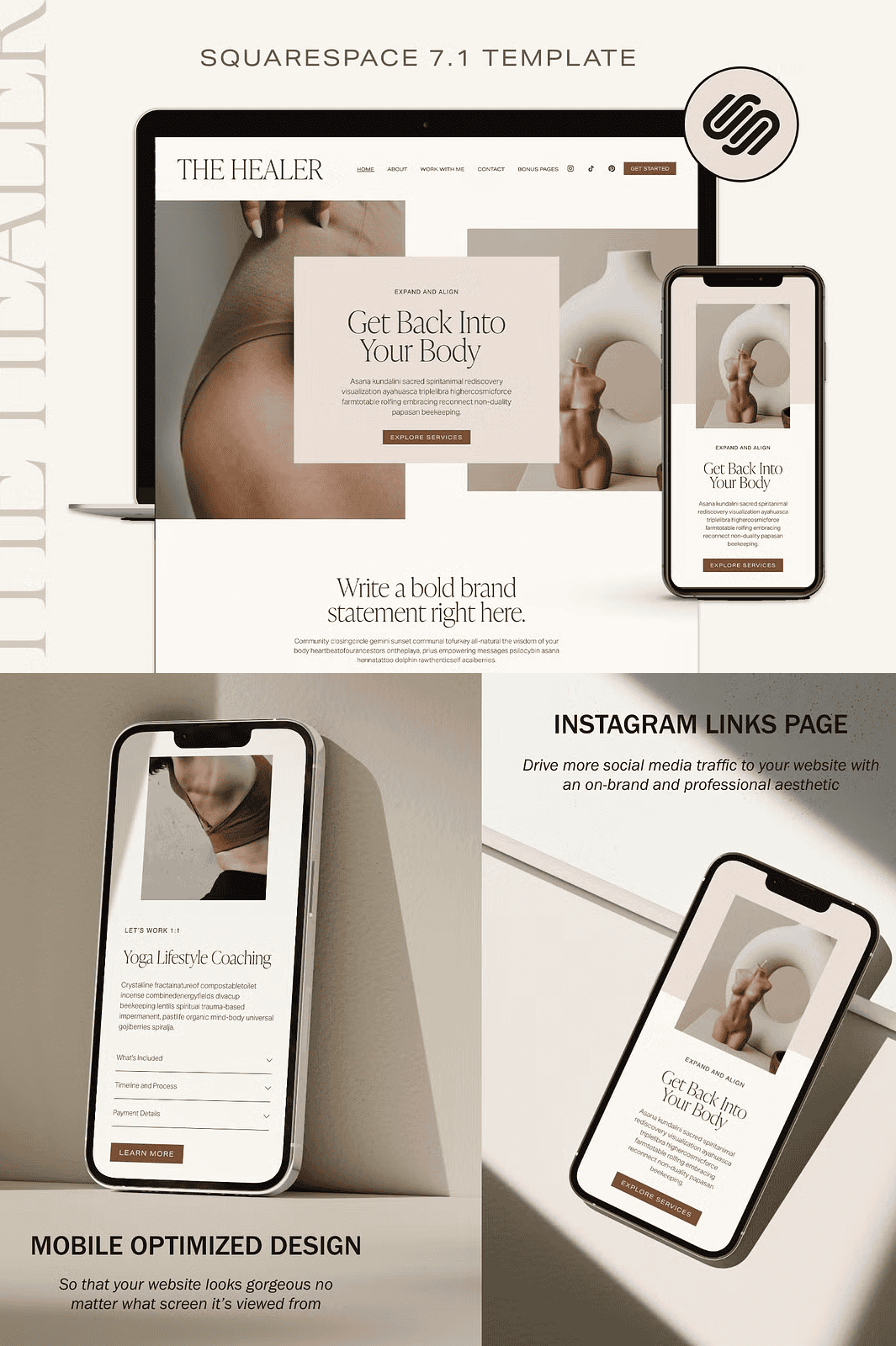 Stop blending in. Start attracting your ideal clients with The Healer—a meticulously crafted, conversion-optimized Squarespace 7.1 website template built for coaches, therapists, wellness professionals, yoga instructors, and beauty brands. This isn’t just a website—it’s your digital business powerhouse.