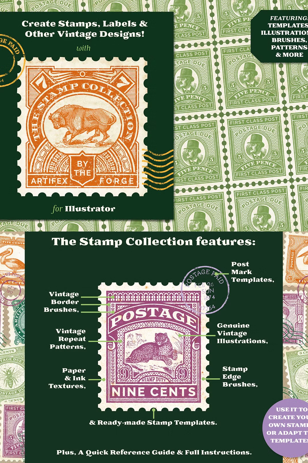 Unleash your creativity and design stunning vintage postage stamps with our all-in-one toolkit for Adobe Illustrator. This comprehensive pack includes templates, illustrations, brushes, textures, and more—everything you need to create authentic, engraved-style stamps with incredible detail.