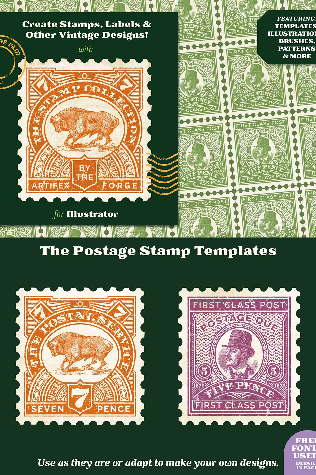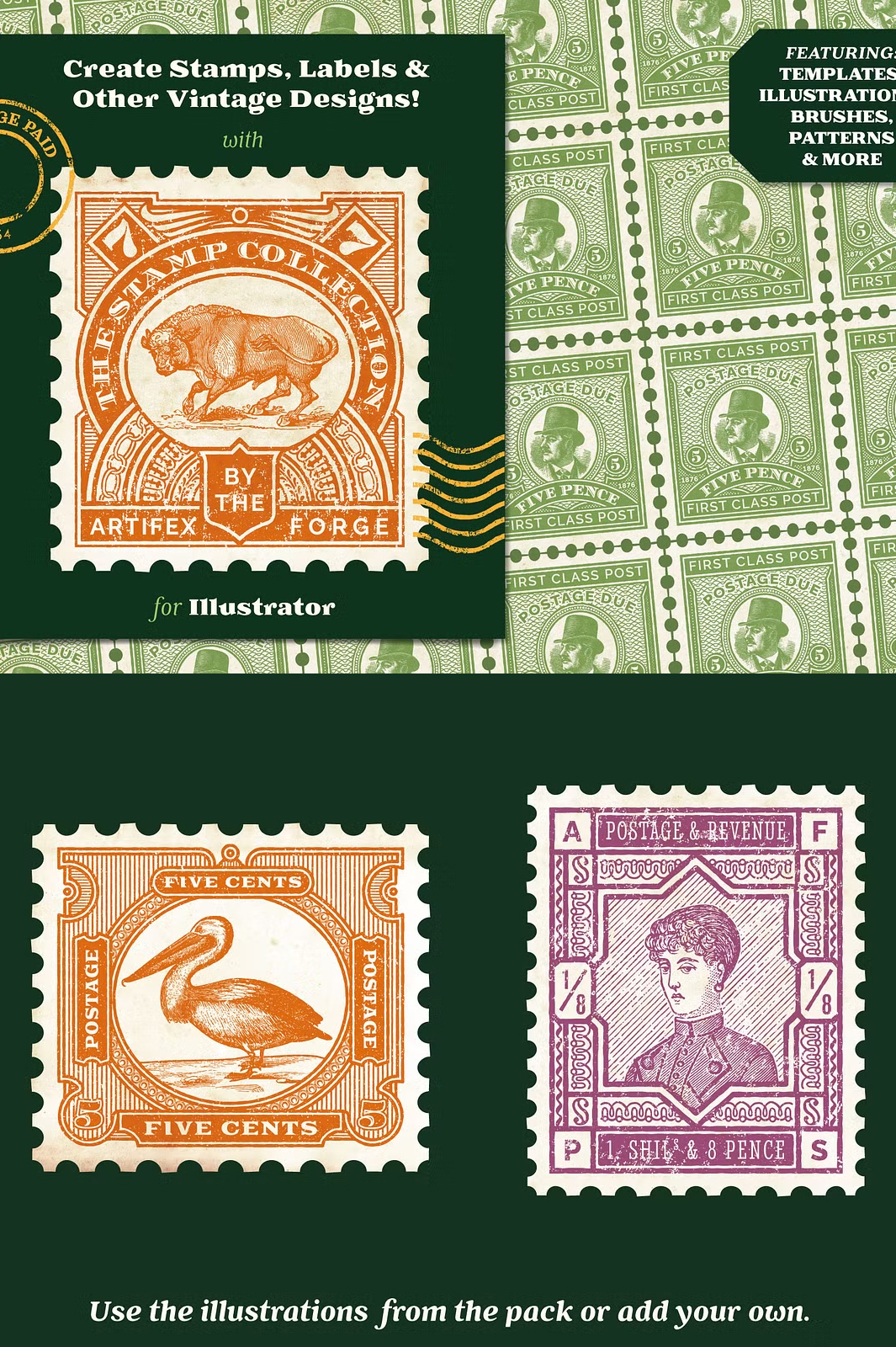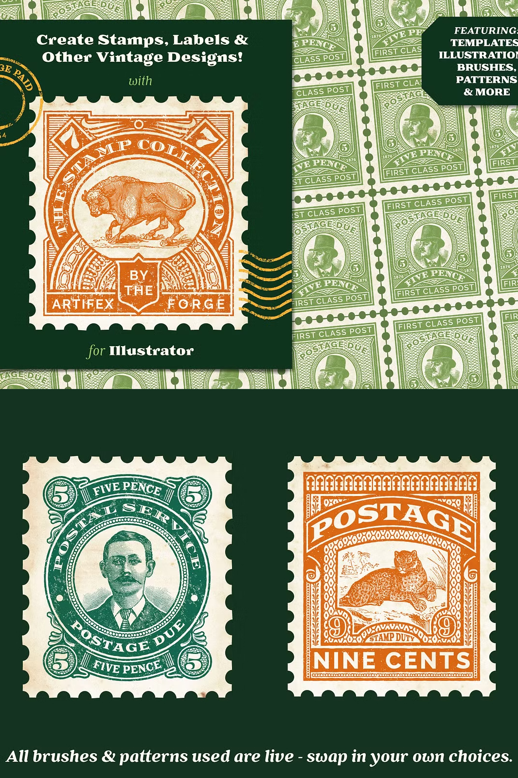 - 10 Vintage Postage Stamp Templates – Fully editable with live Illustrator brushes and textures.