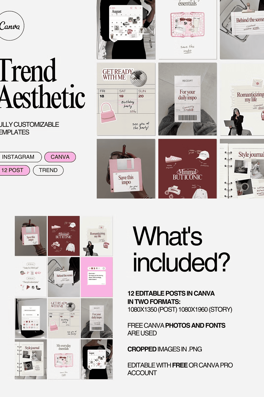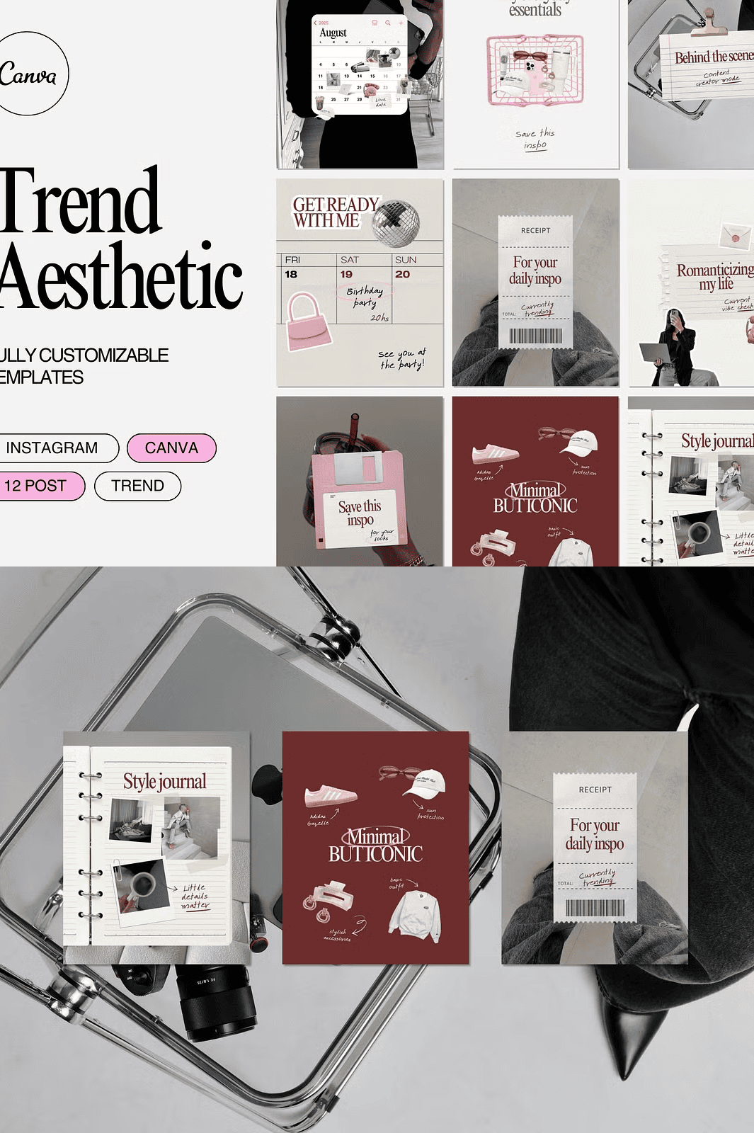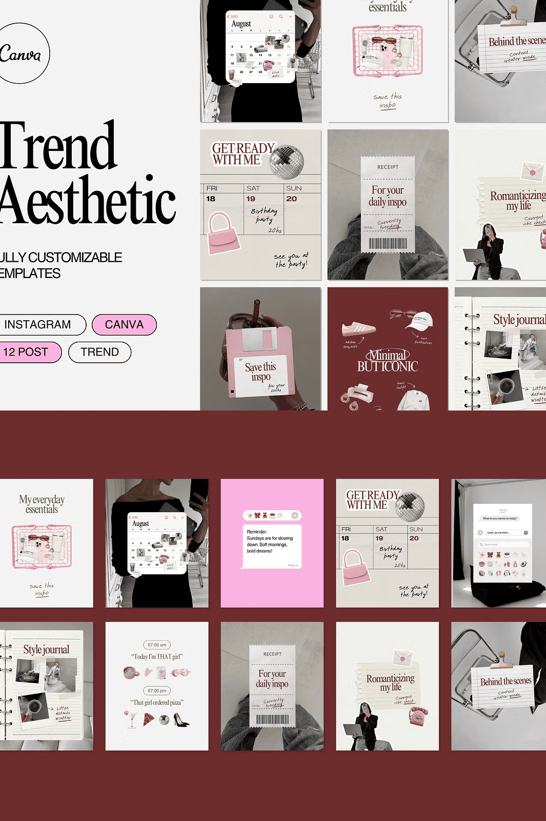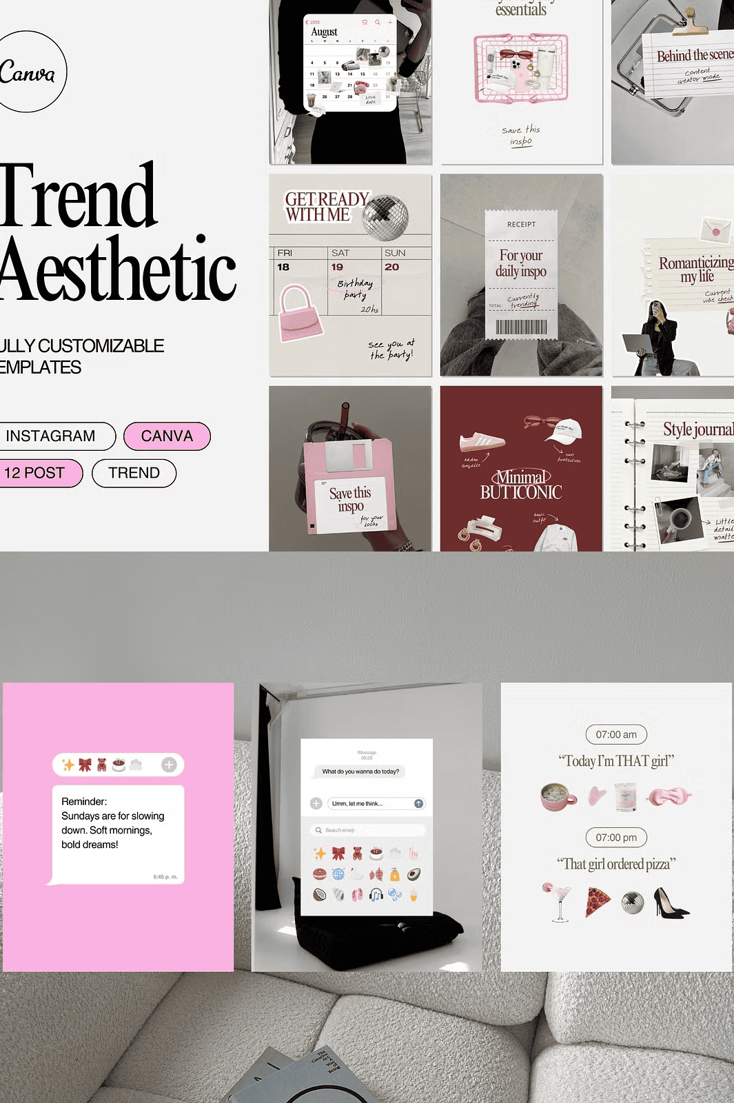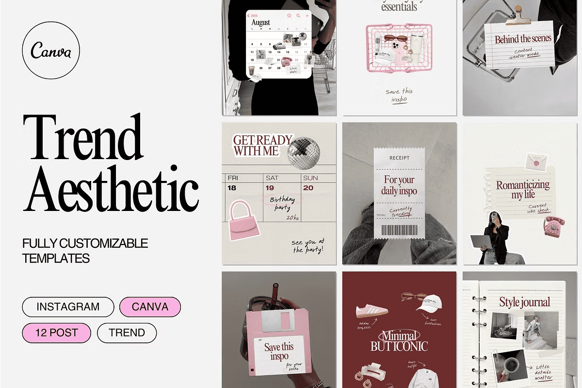 Stop blending in—stand out with **Trend Aesthetic**, a curated collection of 12 sleek, contemporary Canva templates built for Instagram success. Designed for creators, personal brands, and entrepreneurs who demand a clean, high-impact visual identity, this kit transforms your content instantly. With just a few clicks, you can elevate your feed with a cohesive, on-trend look that captures attention and builds brand recognition.