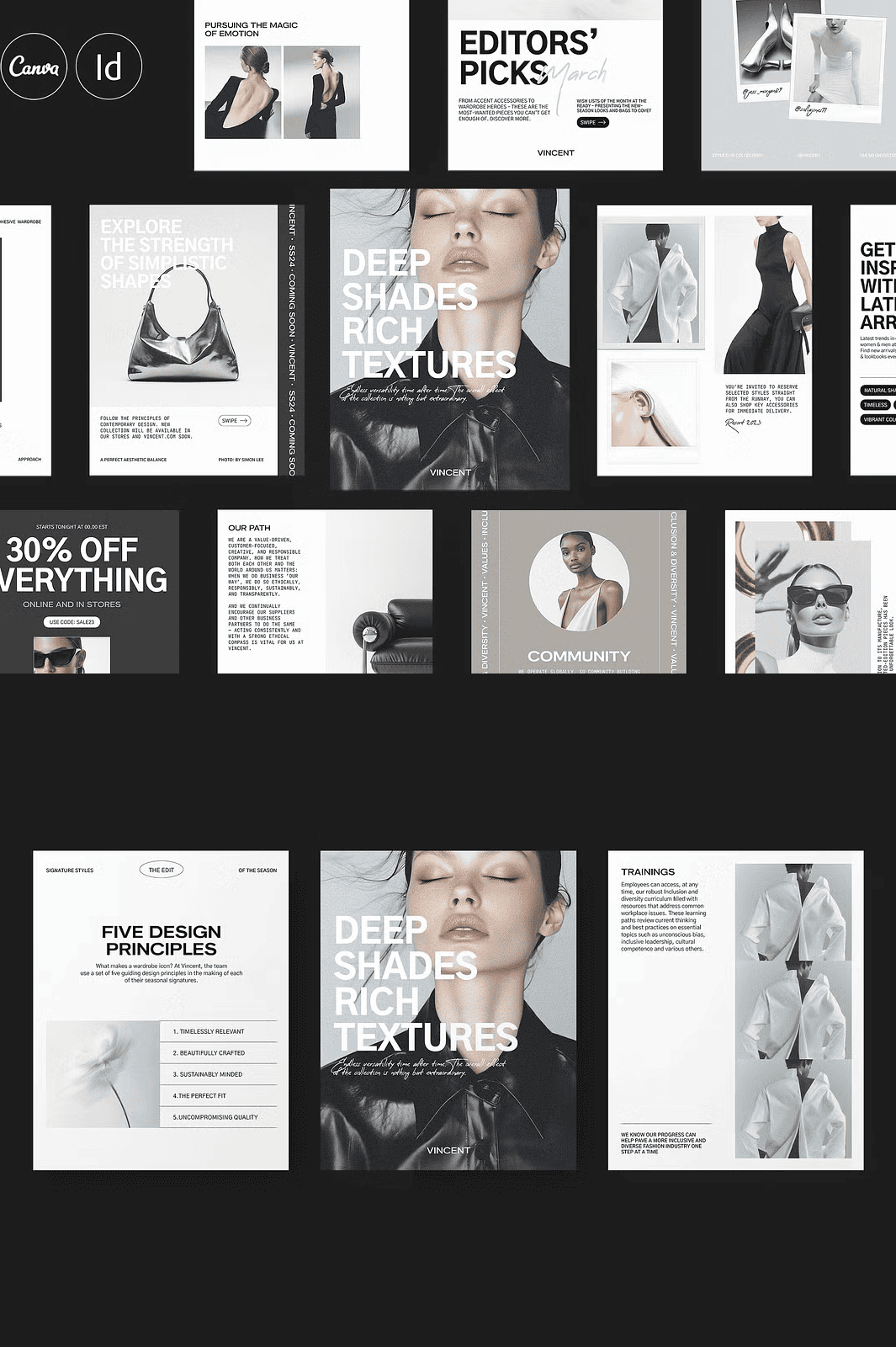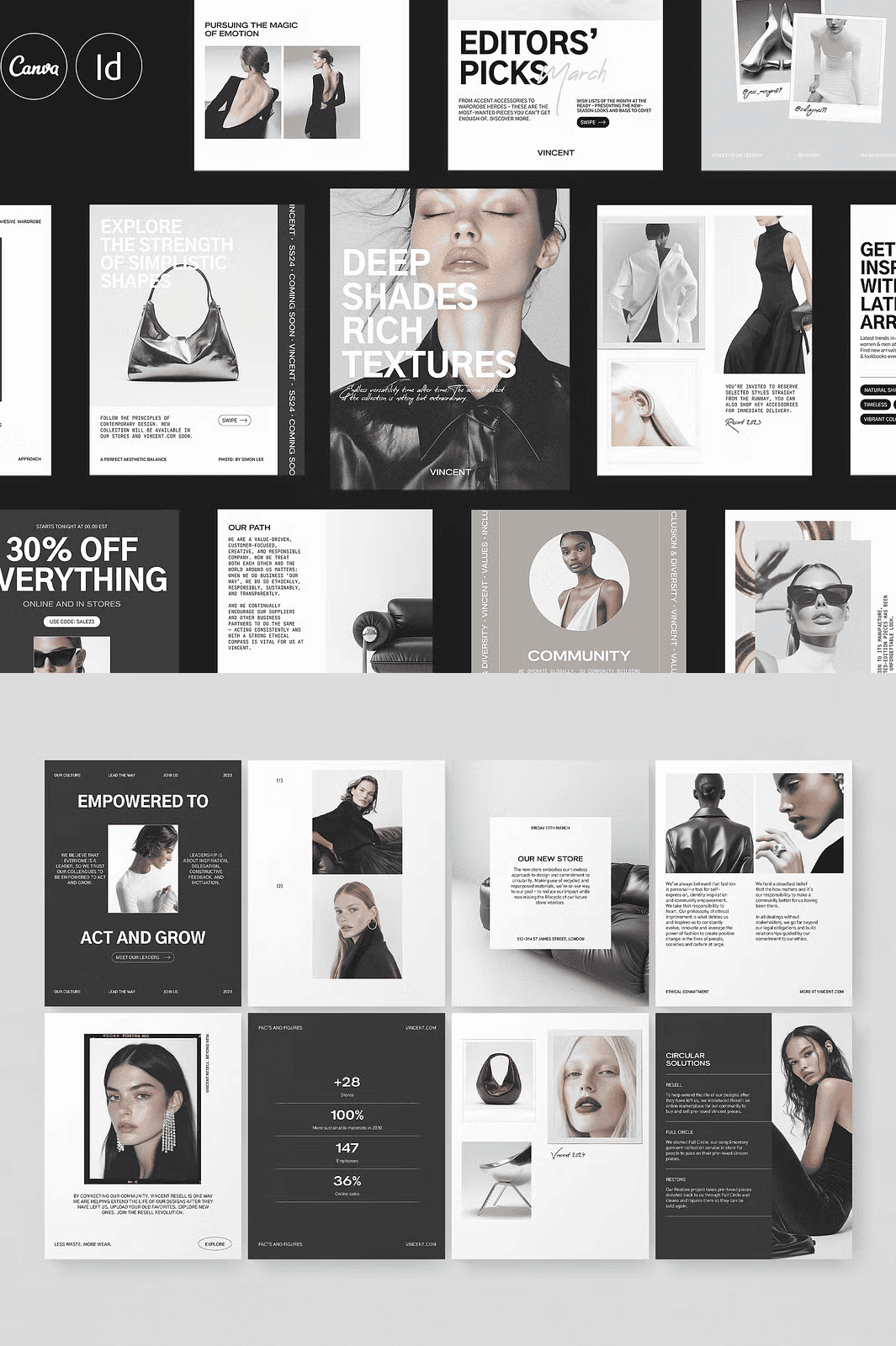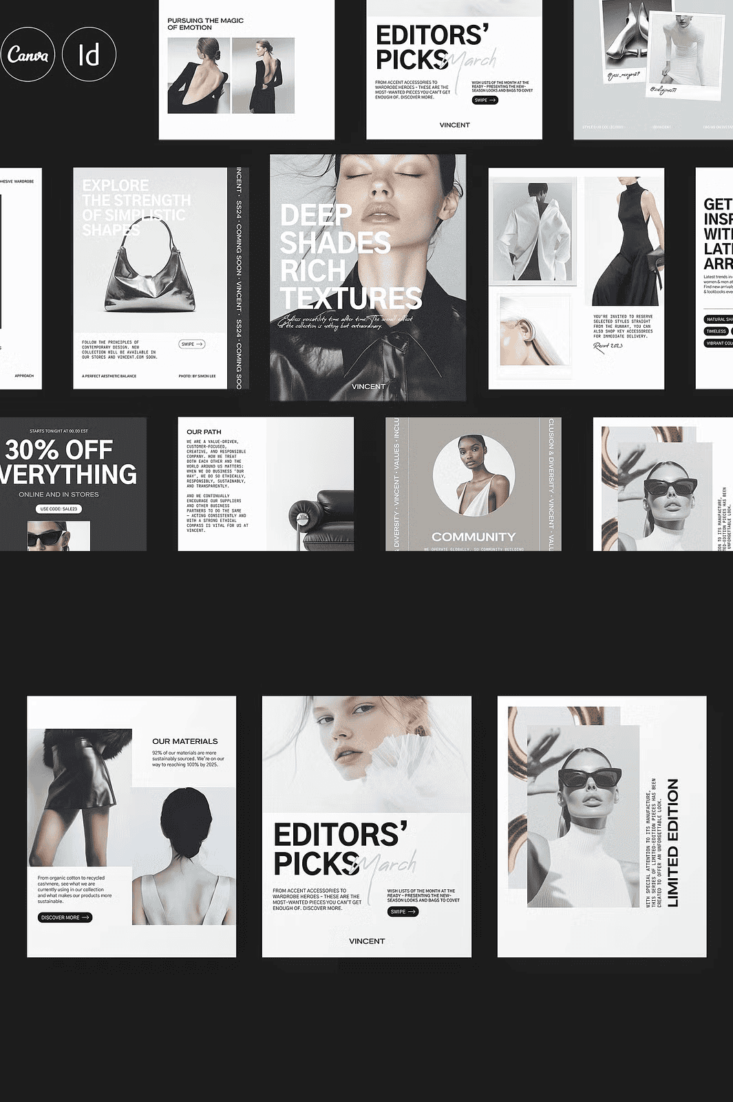 Step into a world of refined digital presence with the VINCENT Social Media Kit — a powerful, professional template suite meticulously crafted for fashion brands, social media managers, design studios, and creative agencies. With 40 striking, portrait-format templates (1080×1350 px), this kit equips you to create consistent, high-impact content that captures attention and reflects your brand’s premium aesthetic. From product highlights to seasonal promotions, quote posts to exclusive announcements, every template is optimized for Instagram’s fast-paced visual landscape.