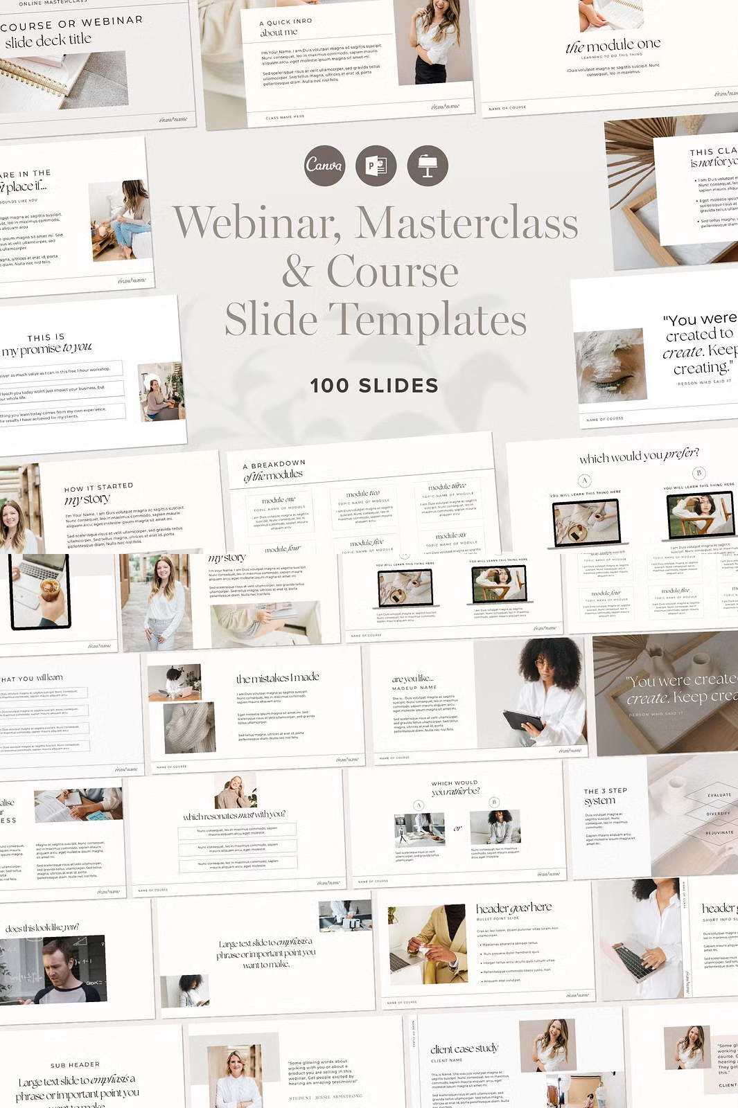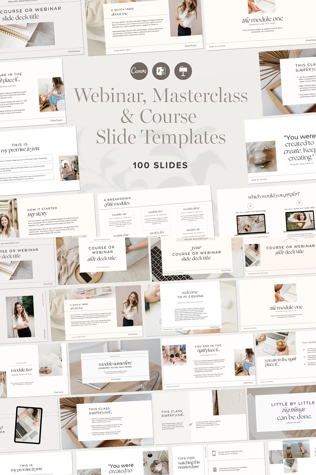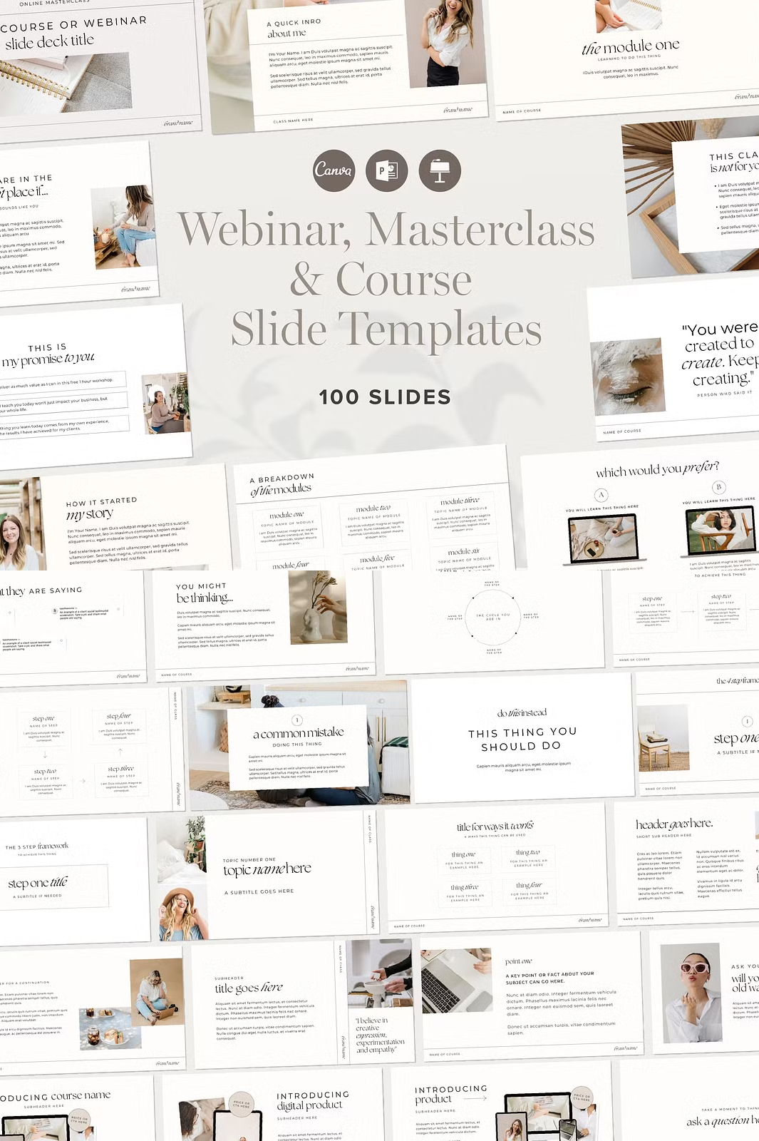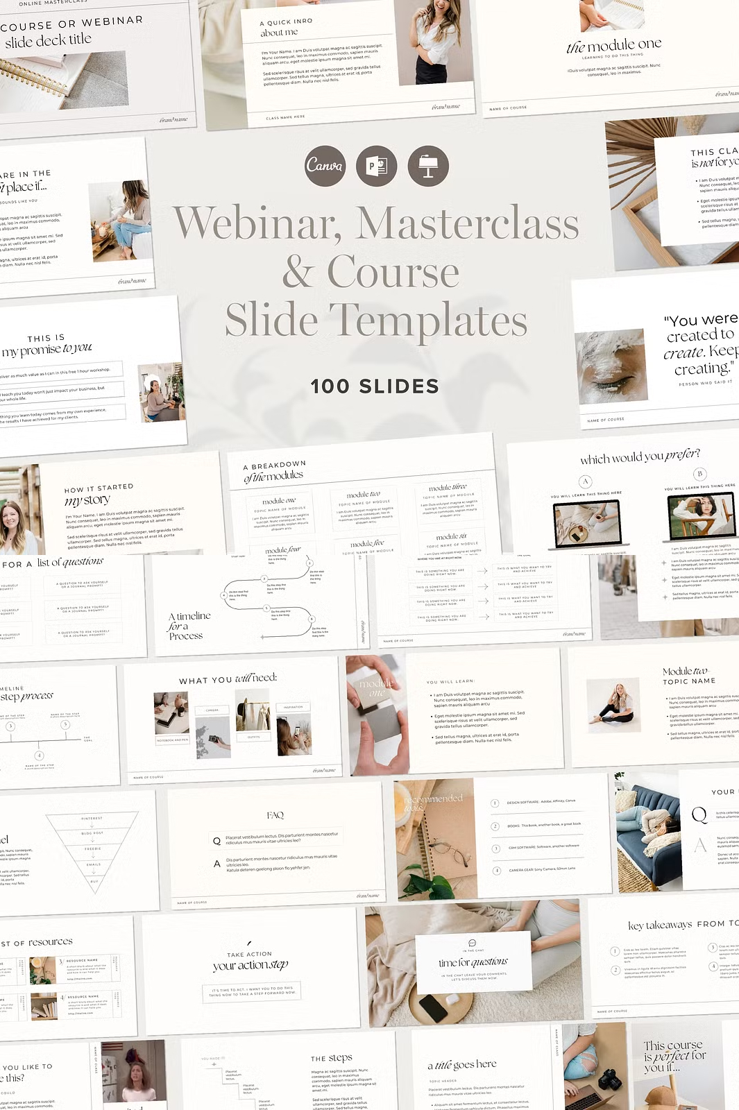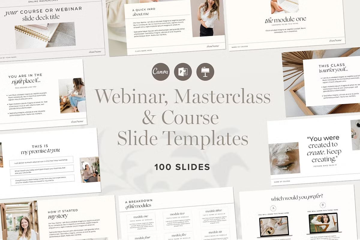 Take your online courses, masterclasses, and webinars to the next level with this professionally designed Webinar & Course Slide Deck Presentation Template. Created specifically for course creators, educators, and online coaches, this template provides 100 fully customizable slides to enhance your training sessions, workshops, and presentations.