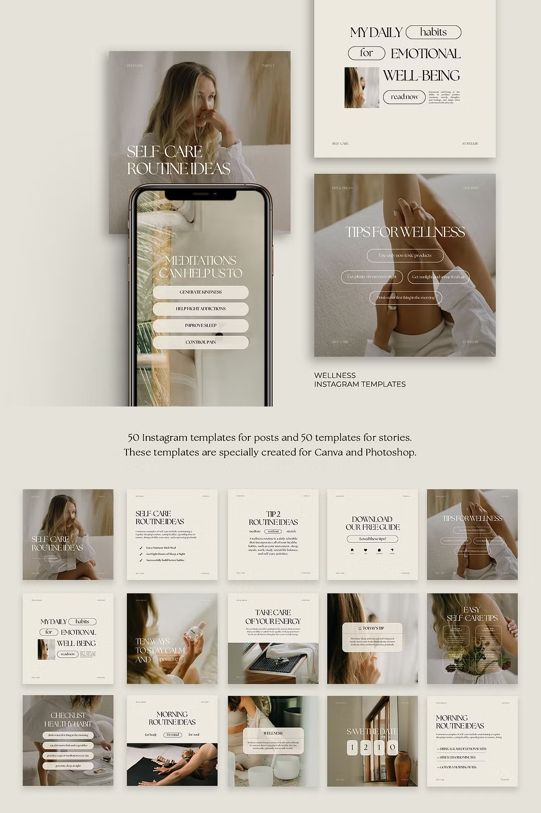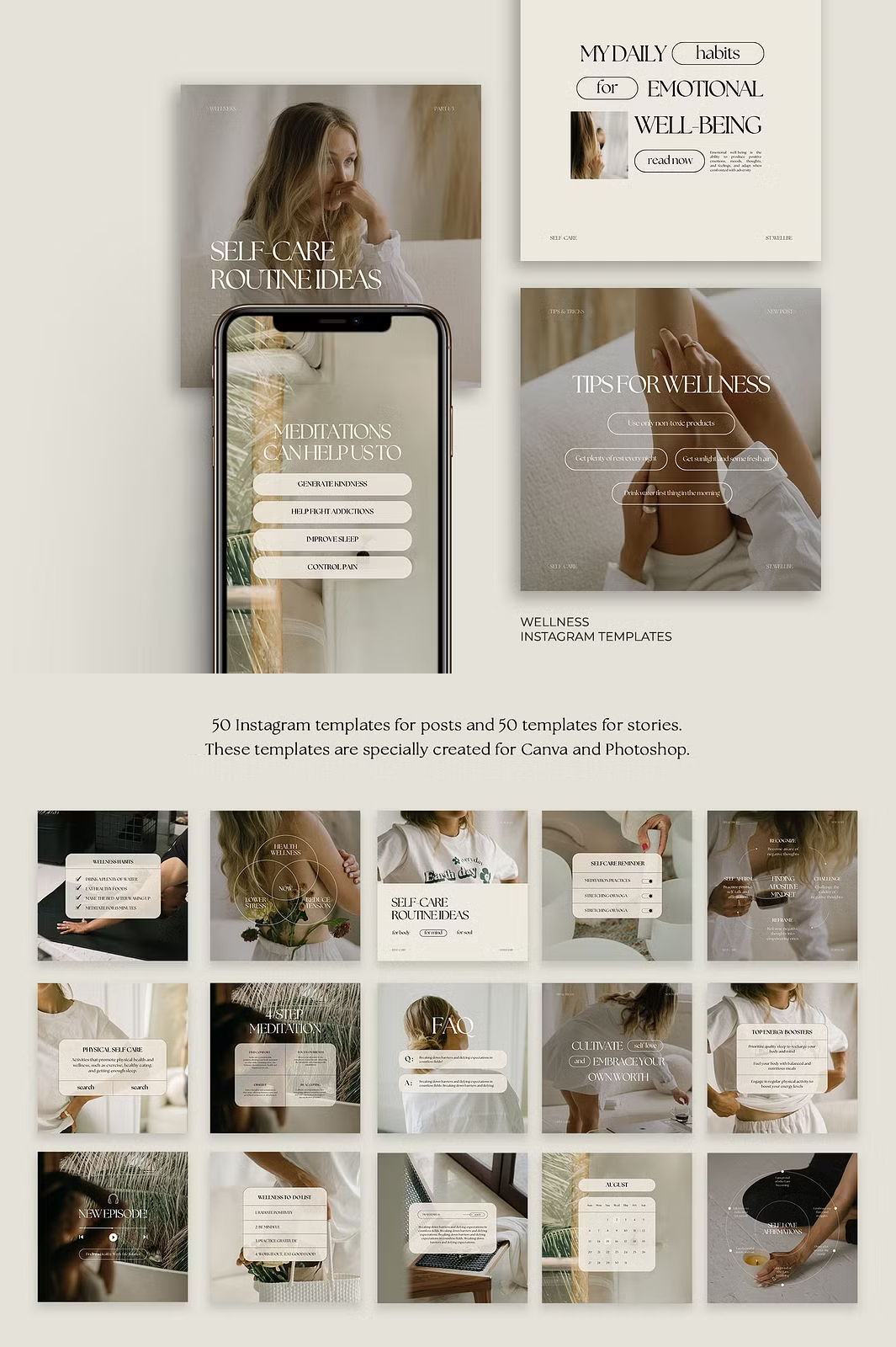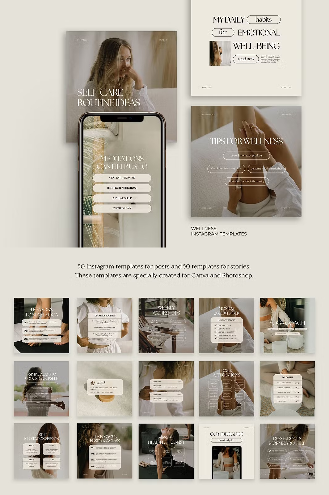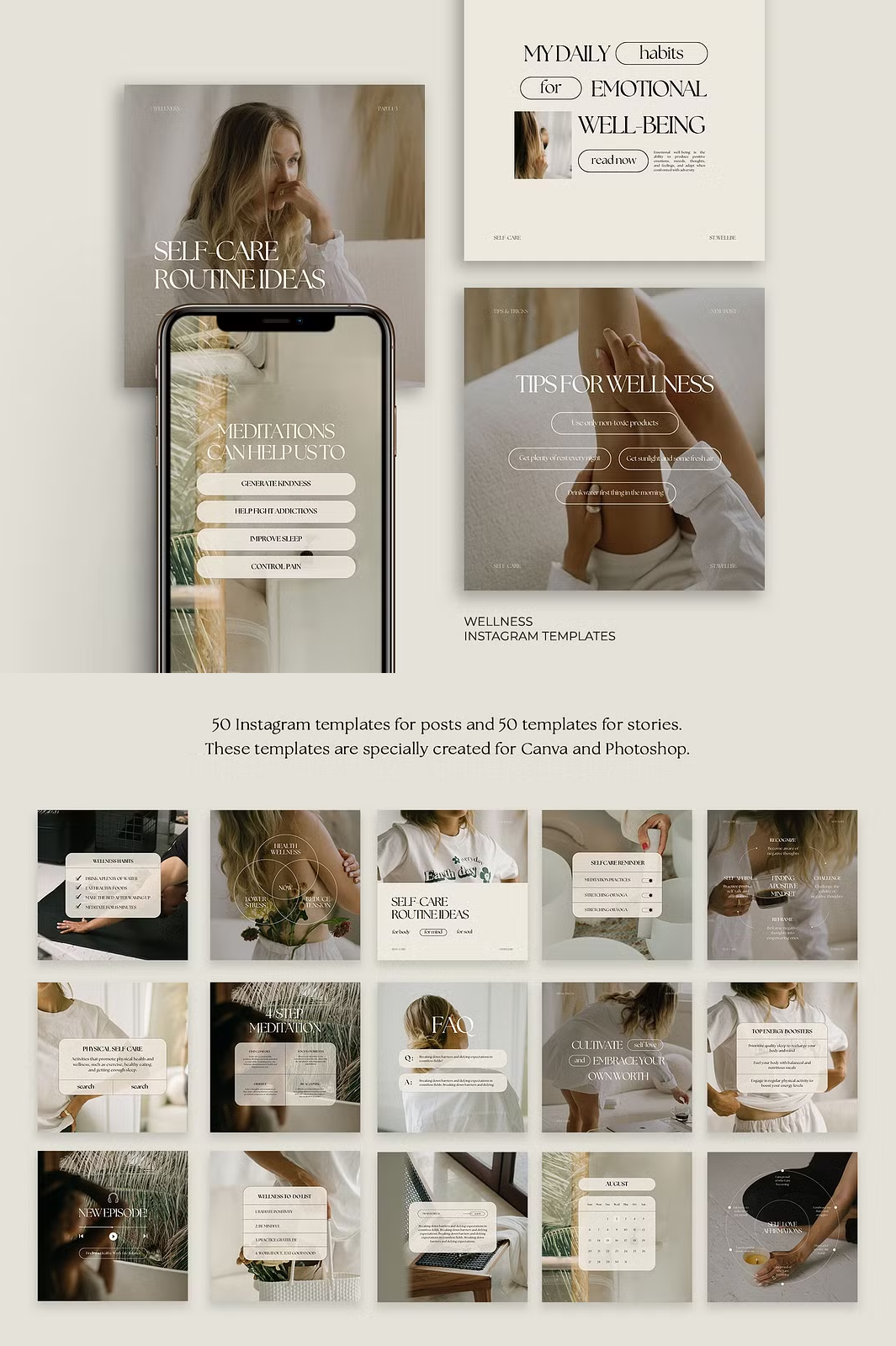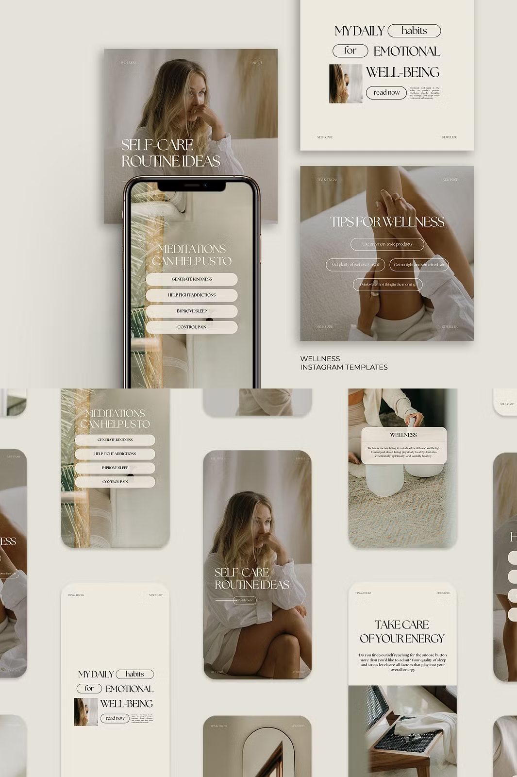 Consistency is key when it comes to building a strong Instagram presence. These wellness templates are crafted to ensure your content looks professional, stylish, and visually appealing. With a perfect blend of aesthetics and functionality, this pack will help you maintain a cohesive brand identity while saving you hours of design time.