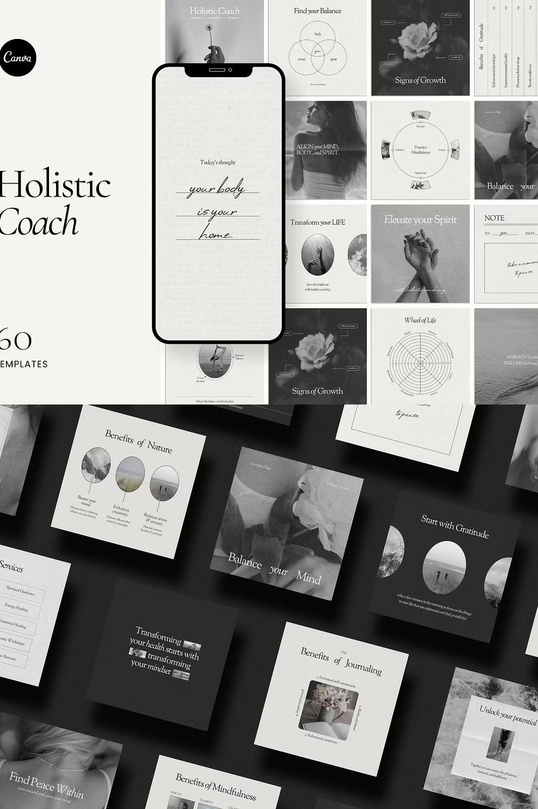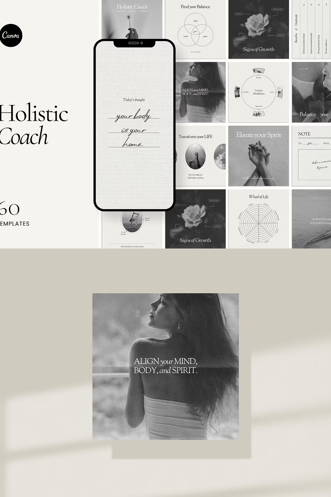 Transform your social media presence with the Holistic Coach Social Media Pack, a beautifully designed set of 60 Instagram templates. Whether you’re a holistic, health, wellness, or spiritual coach, these templates will help you create engaging content with ease.